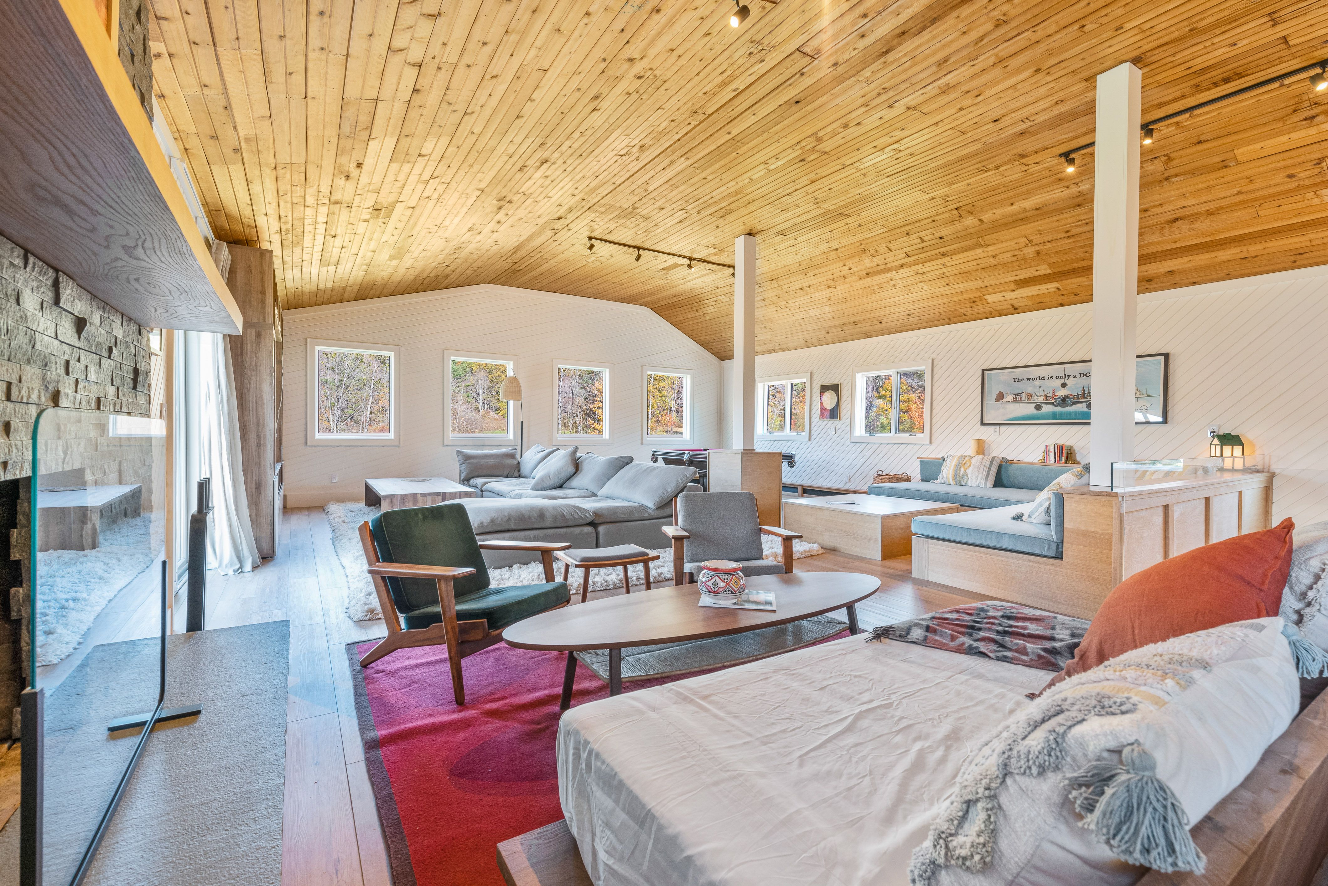 Nestled within 3 acres of peaceful grounds, this home opens its doors to the serene beauty of the Catskills. There’s a private terrace with a barbecue and a fire pit for magical evenings under the stars. Inside, you’ll find everything you could need for entertaining with two large living rooms, a bar, a pool table, board games and a fireplace. And when it comes to adventures outdoors, you’ll be spoiled for choice. From here, it’s a short drive to the nearest slopes for skiing and snowboarding, while hiking and cycle trails can all be found within easy reach.