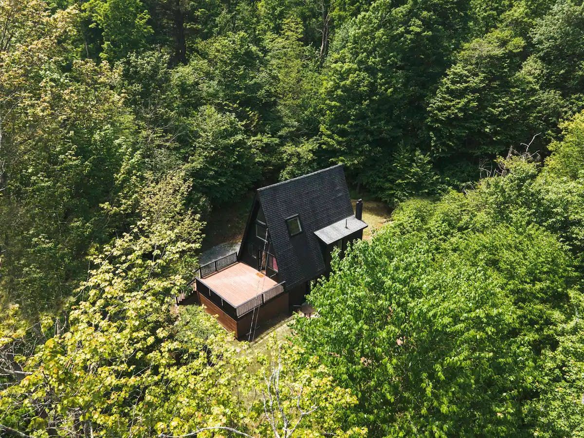 Escape to the Western Catskills for a break surrounded by the rustling of leaves and the calls of birds. This architecturally significant A-frame cabin sits on a secluded plot among the tall trees – a clearing just for you. With nothing to distract you, here you'll be free to hike, spot wildlife, spend time together as a family or even write the novel you've been planning for years.