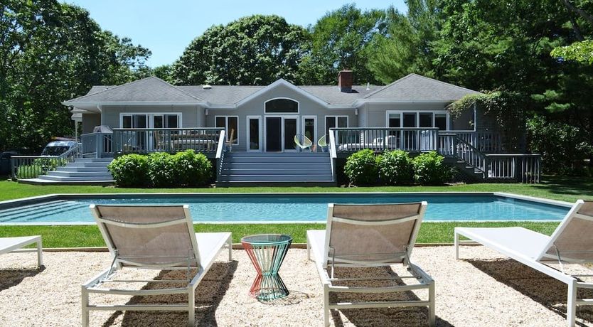 Pack your bags and gather your favourite friends or family members, it's high time for a trip to the Hamptons. Just A Minute is a comfortable and modern home with easy access to Southhampton, where you can find everything you need from retail therapy to white sandy beaches. The home has a lived-in, comfortable feel, meaning you can settle right in without having to worry about a thing. The kitchen is fully equipped and the saltwater pool is ready for you to dive into. There's a fabulous social space at the heart of the home, with a cosy corner sofa, fireplace and bold artworks on the wall, and sets of sliding doors open it and the dining area out to the large deck – perfect for evening drinks in warm weather. Whether you want to spend the entirety of your trip at the house or explore the beautiful surrounding area, there is plenty to do on this small strip of Long Island.