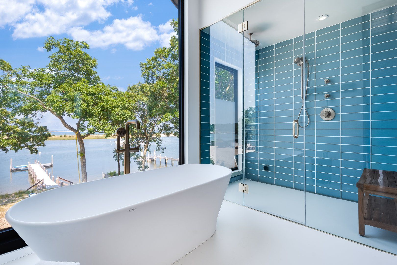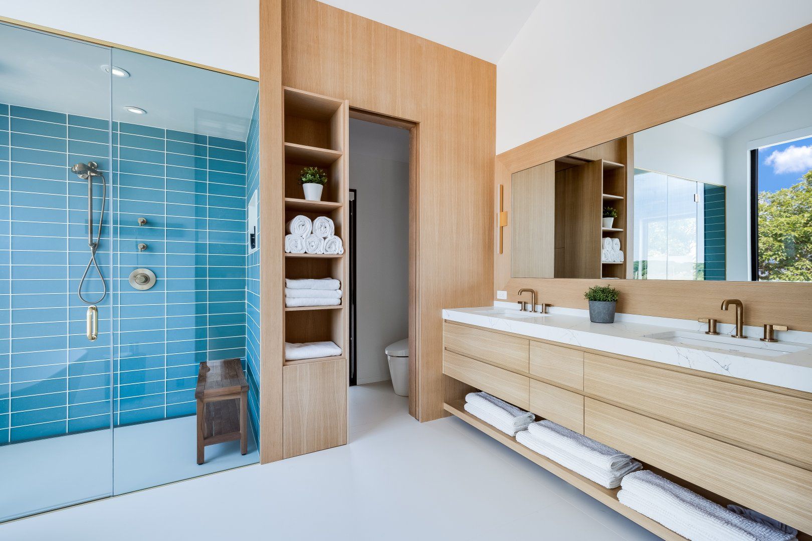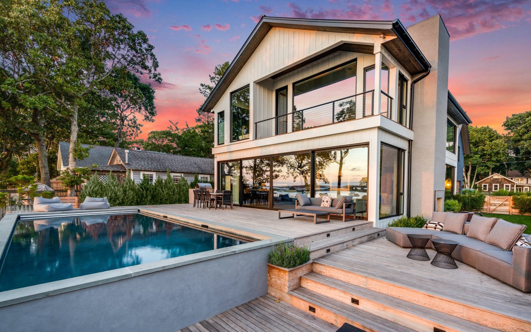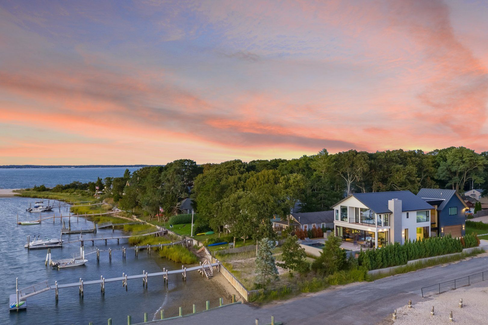 A luxurious harbour-front villa overlooking the serene Noyack Bay, this home's stylish interior boasts elegance and sophistication. Huge, panoramic windows display the beautiful surroundings while flooding the space with light. An exquisite kitchen seamlessly blends the modern fixtures and fittings with a rustic style, pairing sleek marble-top counters with traditional brick and log walls. The large bedrooms have plush beds and window-walls, creating rejuvenating spaces, only furthered by the luxurious en-suite bathrooms featuring ocean-tiled walk-in showers. There is a serene, heated outdoor pool surrounded by lazing lounge areas, perfect for soaking up the summer’s sun. Located at the harbour's edge, the villa is moments away from delicious restaurants and quaint shops to explore. On more exciting days, you can take a short walk to the Northampton Colony Yacht Club for a day of sailing.