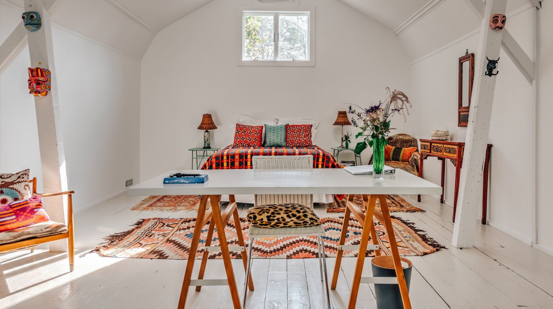 Look out for artists, poets and musicians in the area around this home – it’s located in Springs, arguably the coolest town in the Hamptons. In the past, it’s played host to visionaries like Jackson Pollock and Lee Krasner, Willem de Kooning, Kurt Vonnegut, Nora Ephron and John Steinbeck. Luckily, the home’s bright, colourful design lives up to its surroundings, with patterned throws and bedspreads, quirky artwork and unique furniture. There are 1.5 acres of land to explore, with plenty of options for dining outside, whether you choose to relax with a barbecue under the wisteria or socialise on the patio. There’s also a separate barn in the garden, which can hold a further three people. On hot summer days, go for a swim in the pool, or lie back with a book on a sun lounger nearby. As if this weren’t enough, it’s also perfectly located for making the most of Springs, with the sea just a five-minute cycle away, and coastal walks and surf beaches within easy reach. On Saturdays, amble over to the Farmer’s Market to purchase fresh produce to whip up a feast.