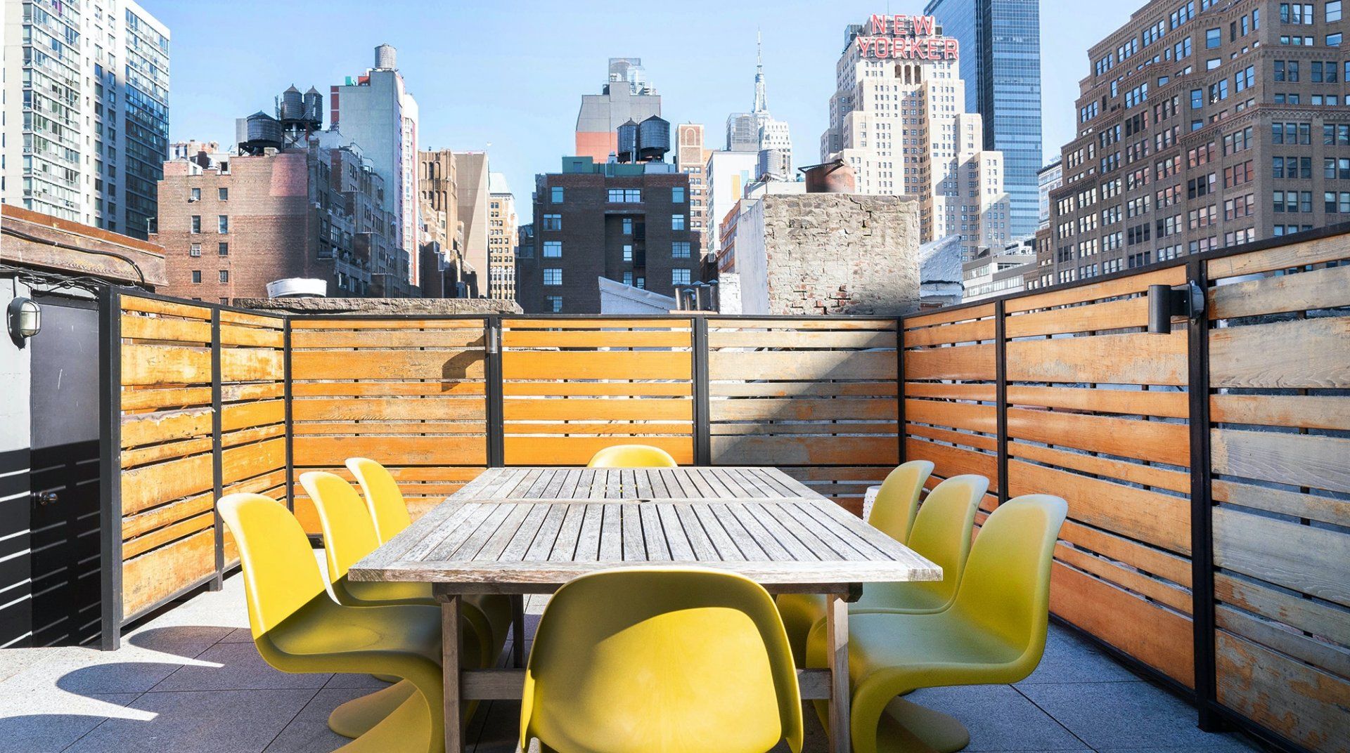 Situated within a ten-minute walk of the Hudson Yards (a bustling part of Midtown with dozens of restaurants and attractions), a mere sixteen-minute wander from the Empire State Building with neon-lit Times Square beckoning close by, you're in a fabulous location to delve into the core of the Big Apple. After an afternoon spent sightseeing, shopping or finding the best pizza slice in the city, return to a comfortable NYC-loft style apartment, boasting bare brick walls and tasteful artwork. The bedrooms are thoughtfully decorated and the glass dining table serves as a charming spot for morning coffee before setting off. Elsewhere in the building, take to the top floor for a communal rooftop terrace surrounded by the skyscraper metropolis of New York City. We can think of no better place to tap away on your laptop, play games or sip sundown drinks while socialising with other neighbouring guests.
