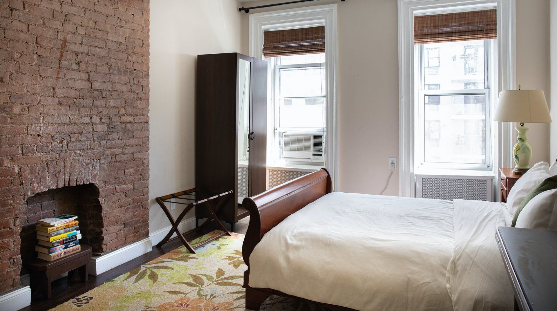 Experience NYC living at its utmost authentic at this rustically charming townhouse in Hell's Kitchen. Sitting right in the core of the Big Apple, walk nine minutes and be amongst the neon-lit excitement of Times Square, grab a pizza slice at a surplus of traditional Italian-New York diners, and ensure you take to the Top of the Rock – a thirteen-minute stroll through the concrete jungle – for skyline views over the city. And after a day wandering Manhattan, tread back to your old-school brown house and sink into the soft suede sofa in a calming living space that benefits from plenty of sunlight, pops of colour and dark wooden flooring. Enjoy a nightcap together in the elegant dining area, before heading upstairs to hit the hay. The city that never sleeps? We'll see about that. The cosy bedrooms will soon have you feeling all homely and settled, with exposed brick walls, tasteful artwork, ornamental fireplaces and an array of books to gently drift you off to the land of nod.