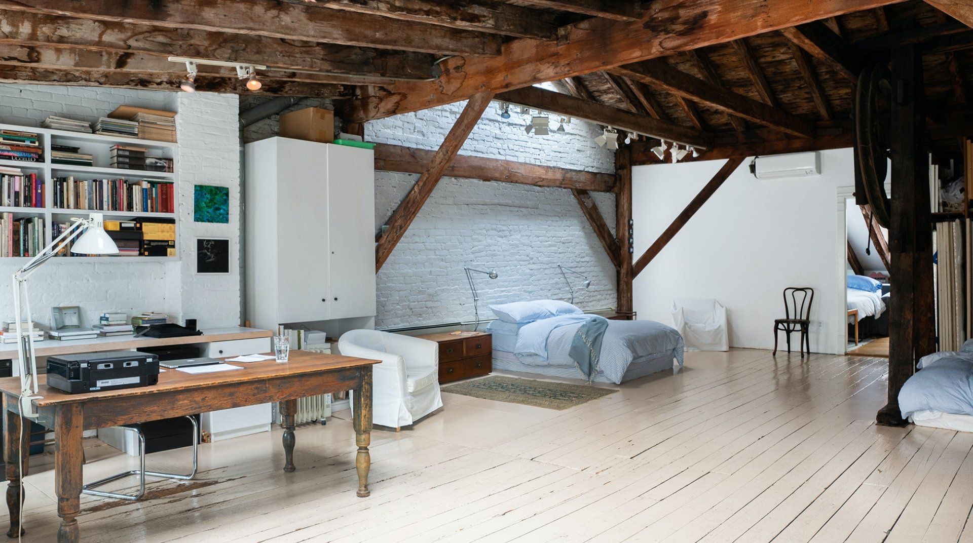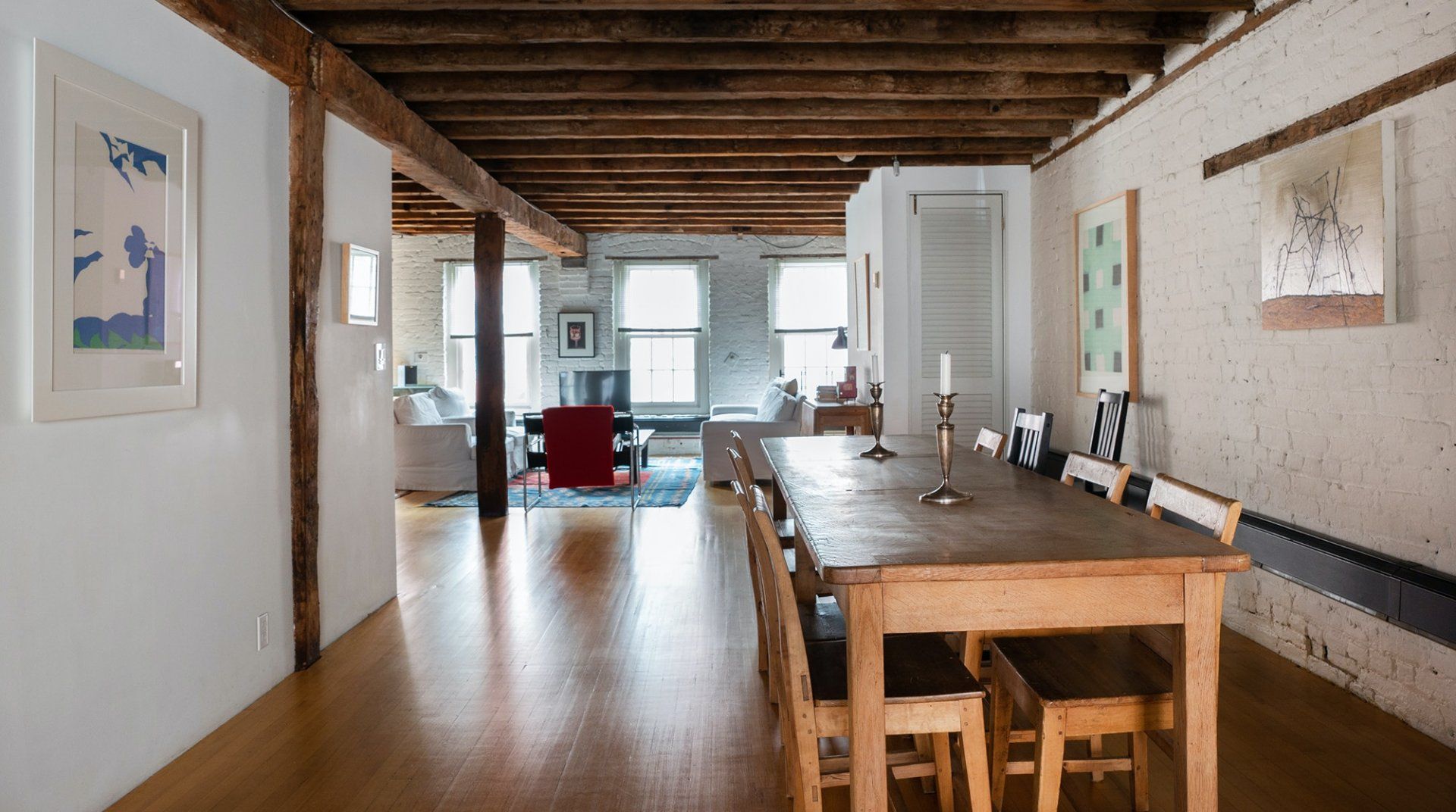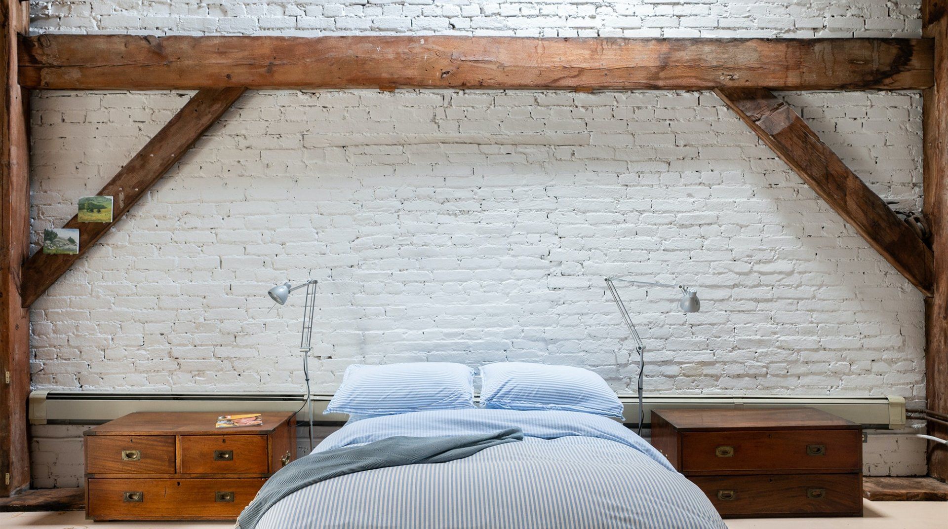 Located on a charming cobblestone street in the South Street Seaport and built in 1793, this lovely, European-inspired loft was once an ice house. Sparely furnished and set across two floors with an intentional open-plan living space, the easy flow between rooms is freeing. Both levels boast wood-beamed ceilings and original artwork created by the host himself. While this isn't the most luxurious home on our books, it's cosy and bright, a fluid mix of rustic and modern.