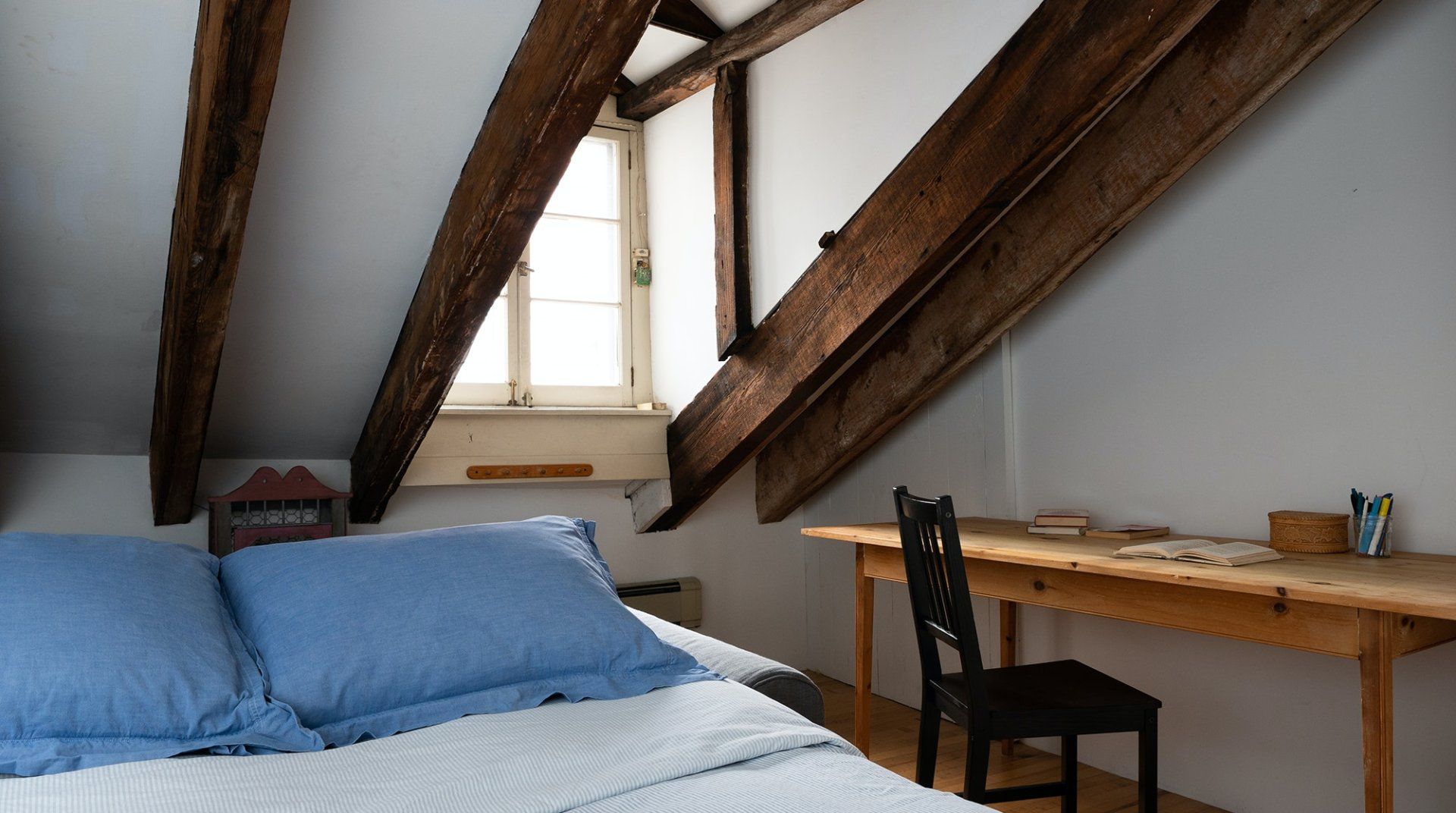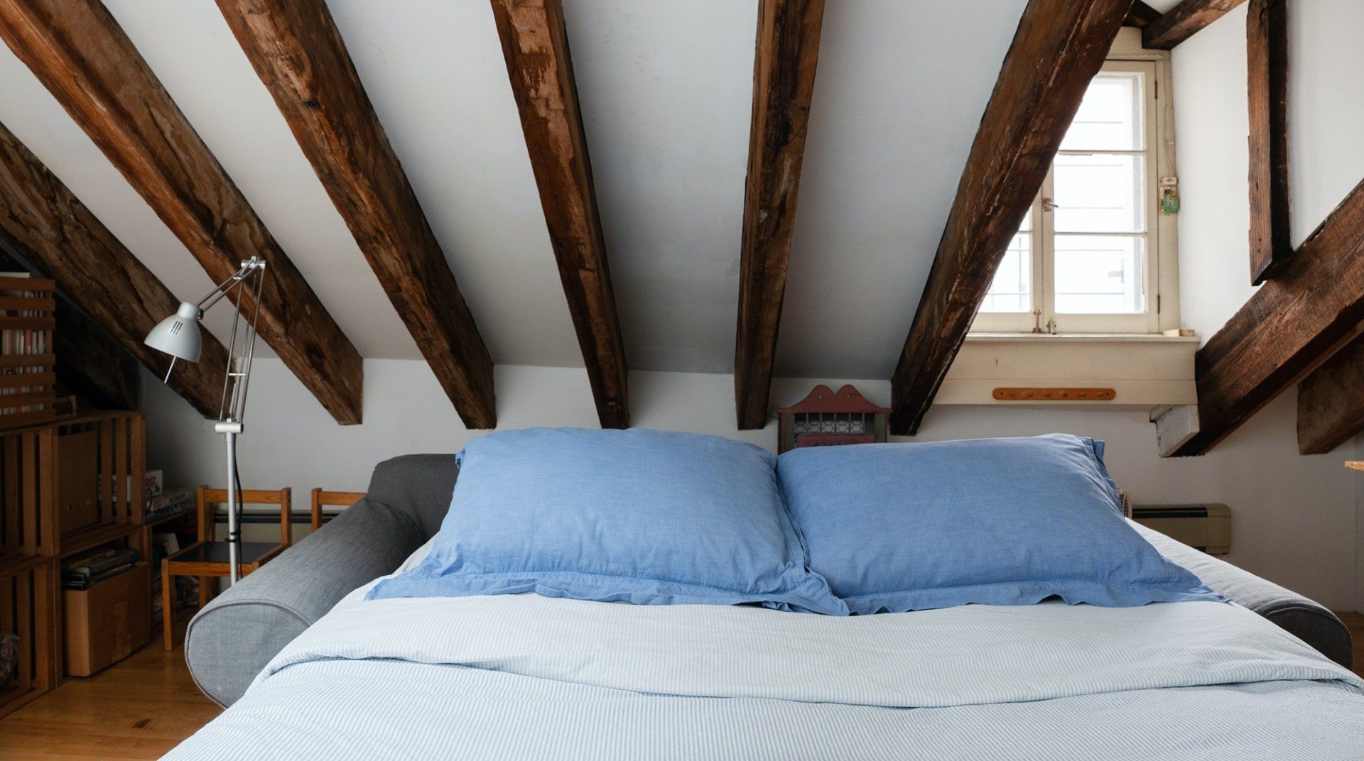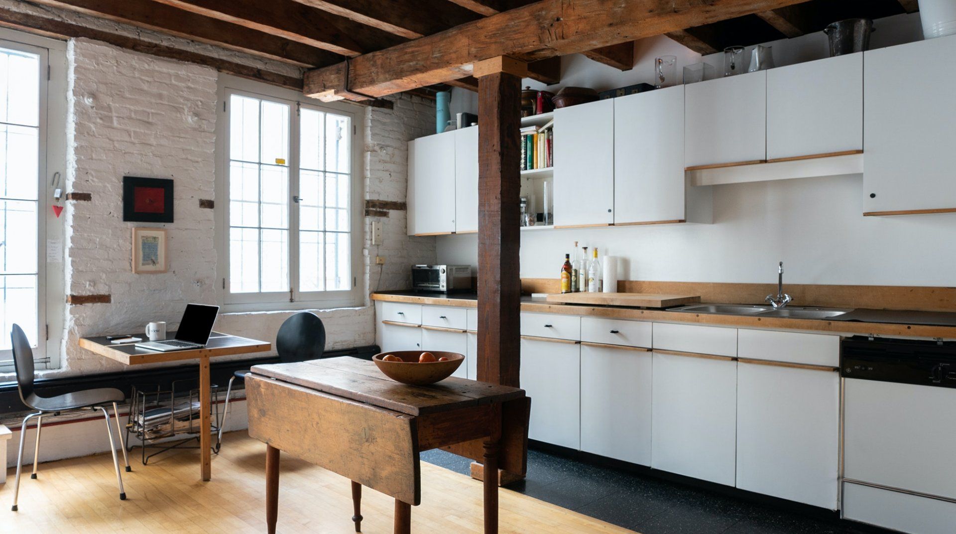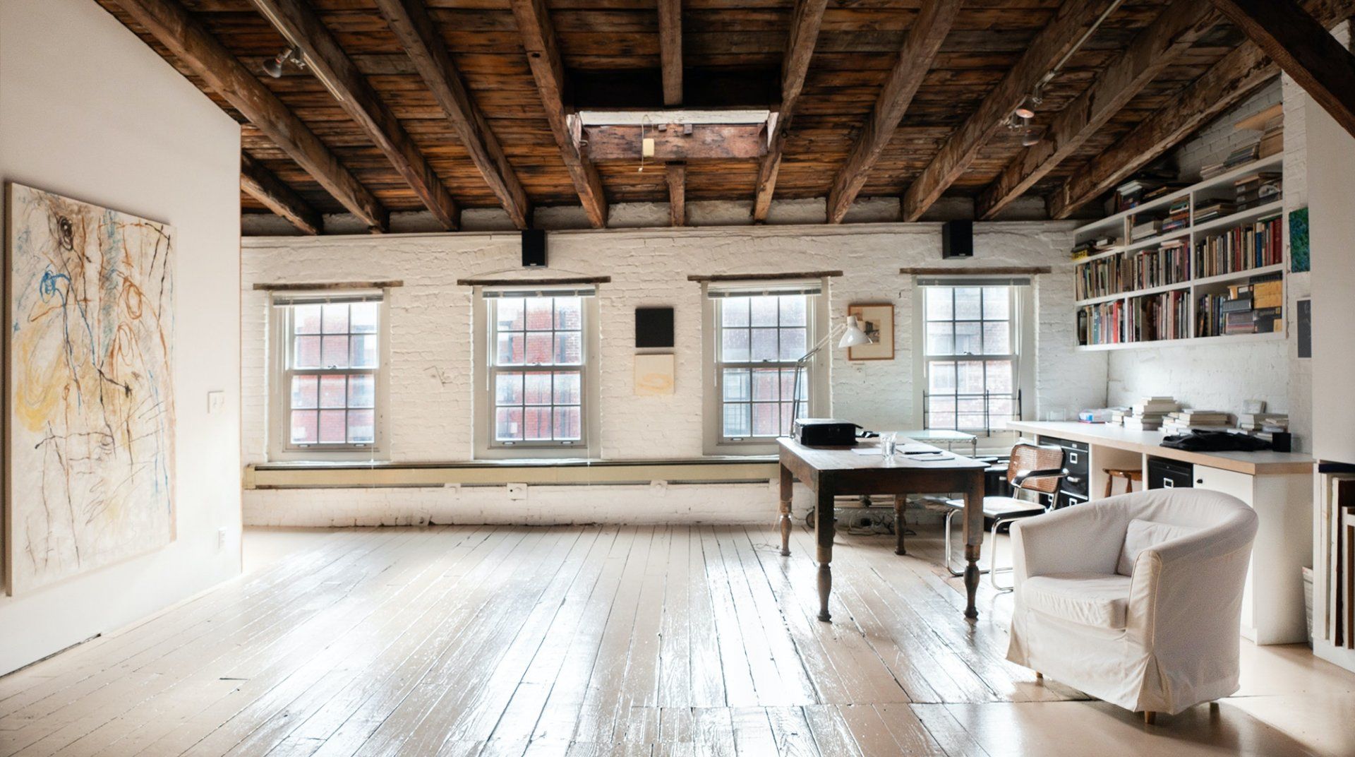 Located on a charming cobblestone street in the South Street Seaport and built in 1793, this lovely, European-inspired loft was once an ice house. Sparely furnished and set across two floors with an intentional open-plan living space, the easy flow between rooms is freeing. Both levels boast wood-beamed ceilings and original artwork created by the host himself. While this isn't the most luxurious home on our books, it's cosy and bright, a fluid mix of rustic and modern.