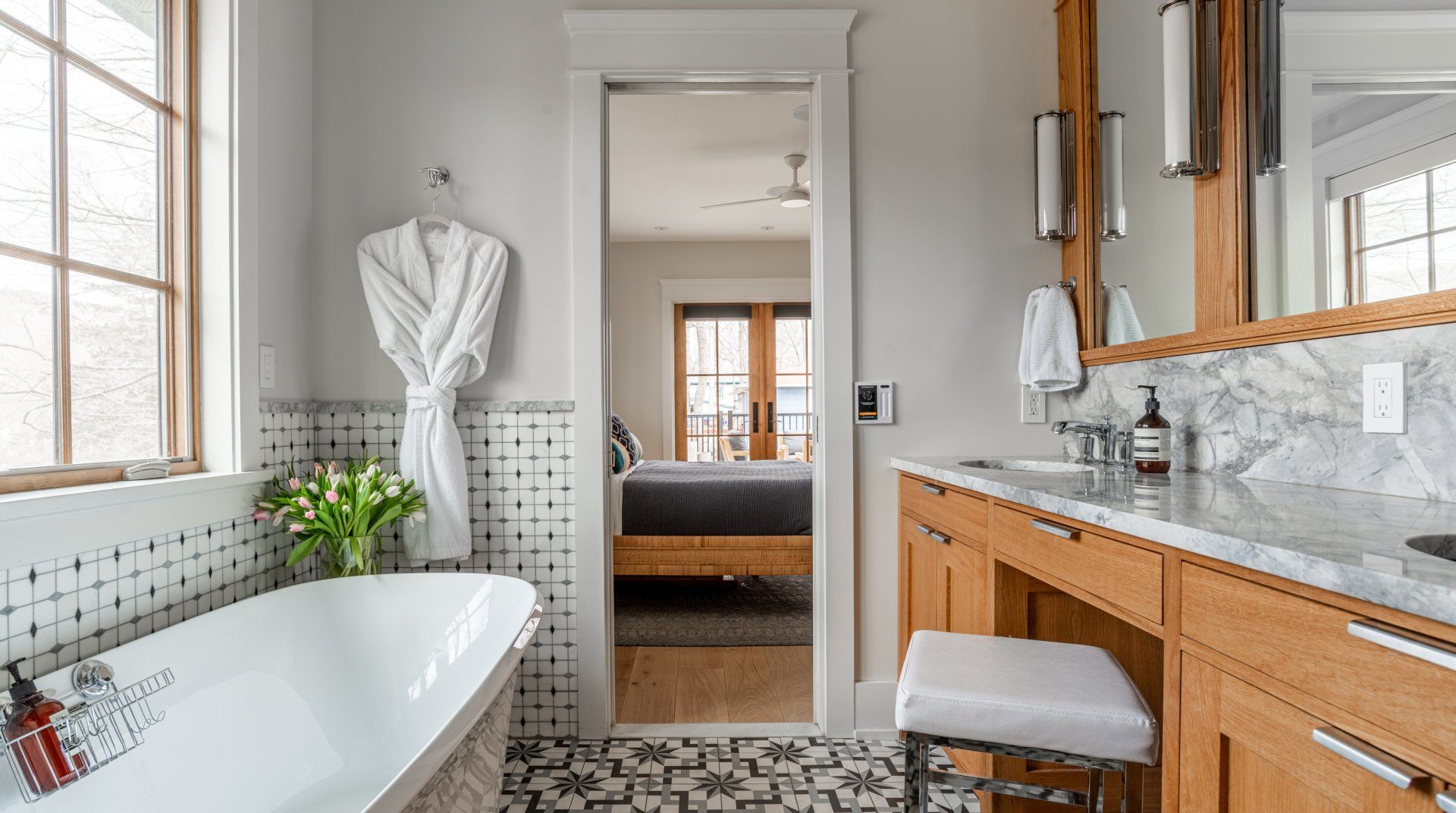Although a modern build, this home was designed with the craftsman style in mind. It has a twenty-first century edge that gives it just enough luxury to make it both homely and wonderfully opulent for that perfect vacation. Located less than an hour and a half from Manhattan, you’ll be staying in the charming village of Greenwood Lake at the northern end of the Lake and just a short way from Warwick. Warwick has plenty of restaurants and bars, but more importantly, it’s known for its wineries, orchards and harvest festivals. Depending on the season, you can visit nearby Waterfront Park for a day of fun in the sand, or drive just ten minutes to Mount Peter, where small ski slopes are sure to please the whole family. But, of course, it was A Timeless Tale itself that blew us away. Double height ceilings, a focal point fireplace and mid-century modern-inspired interiors make this the ultimate holiday home. With such meticulous design, we wouldn’t blame you if you spent the entirety of your trip at A Timeless Tale itself.
