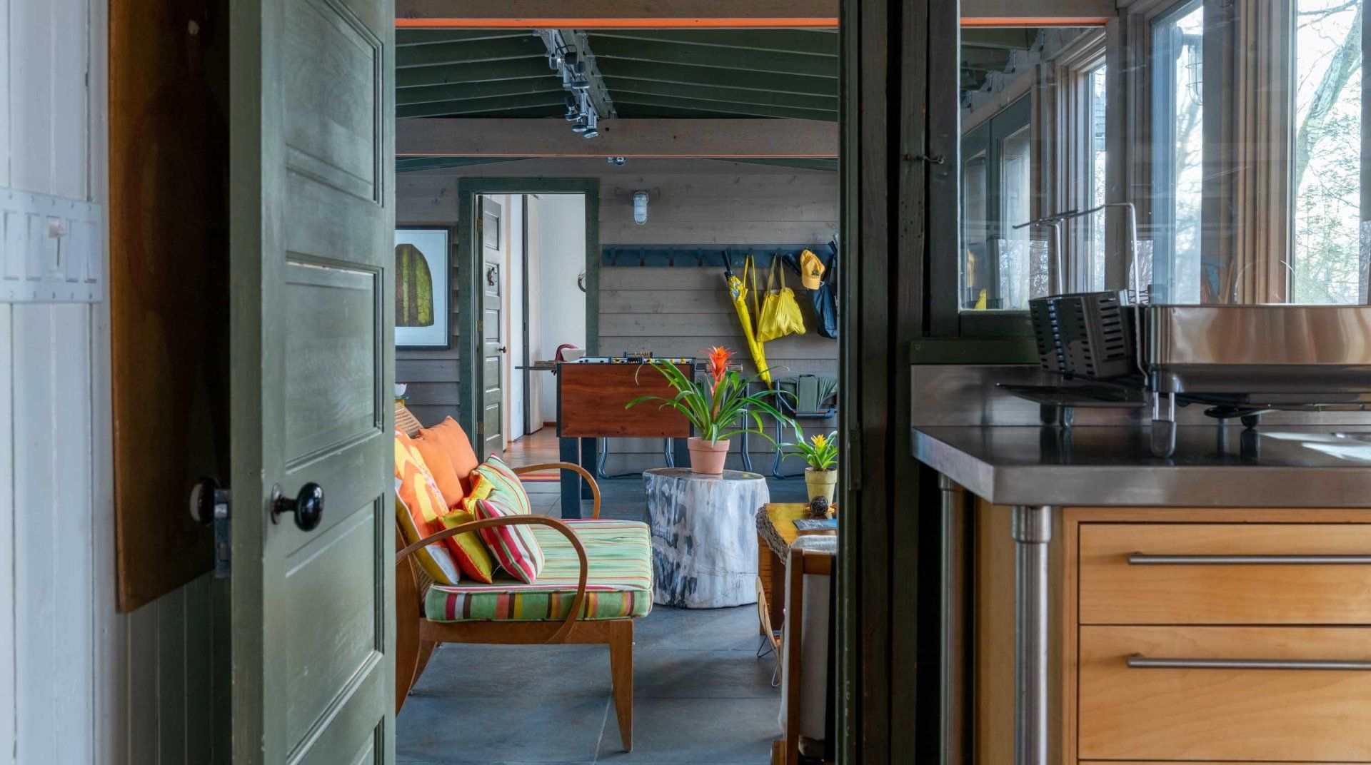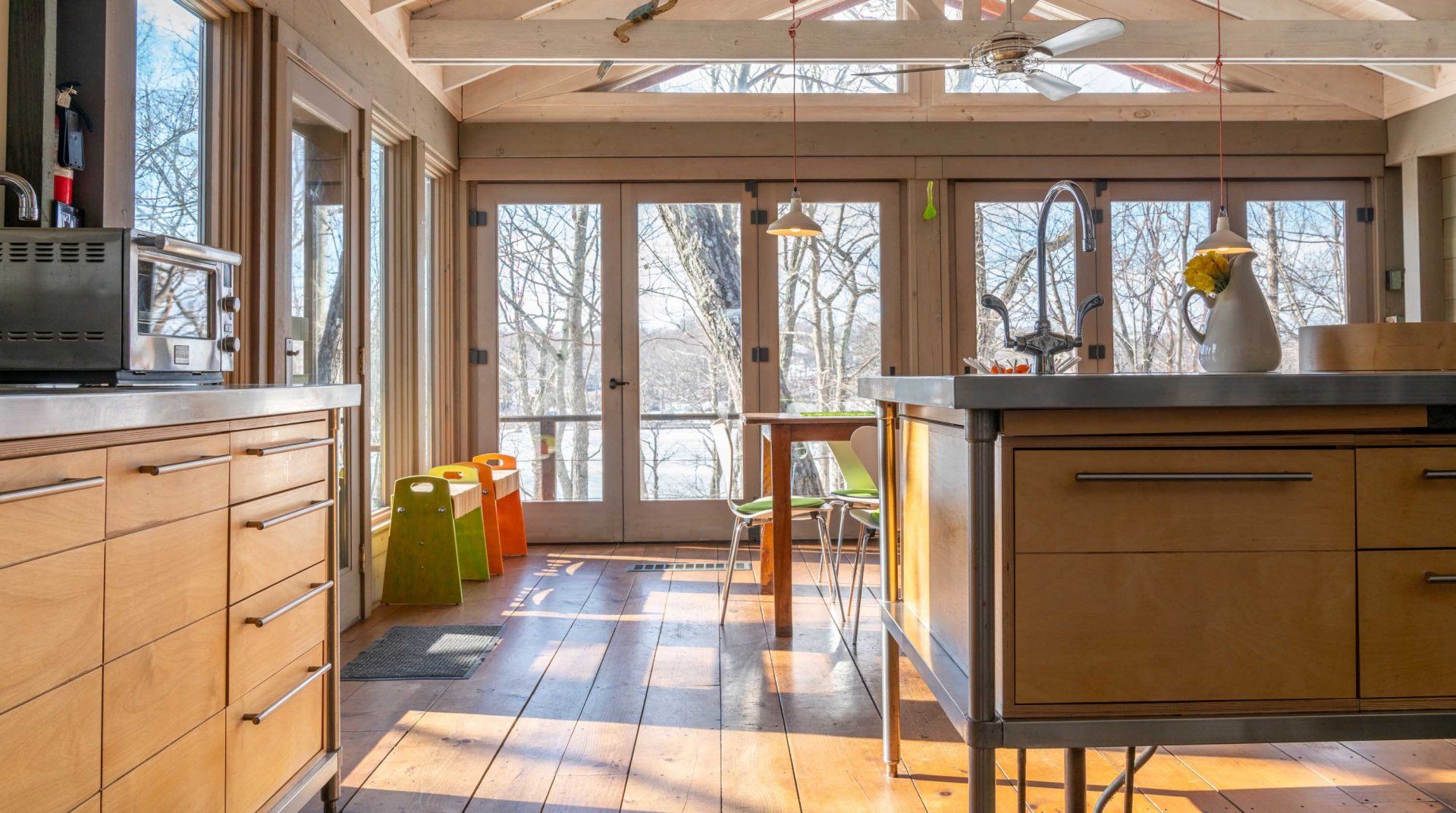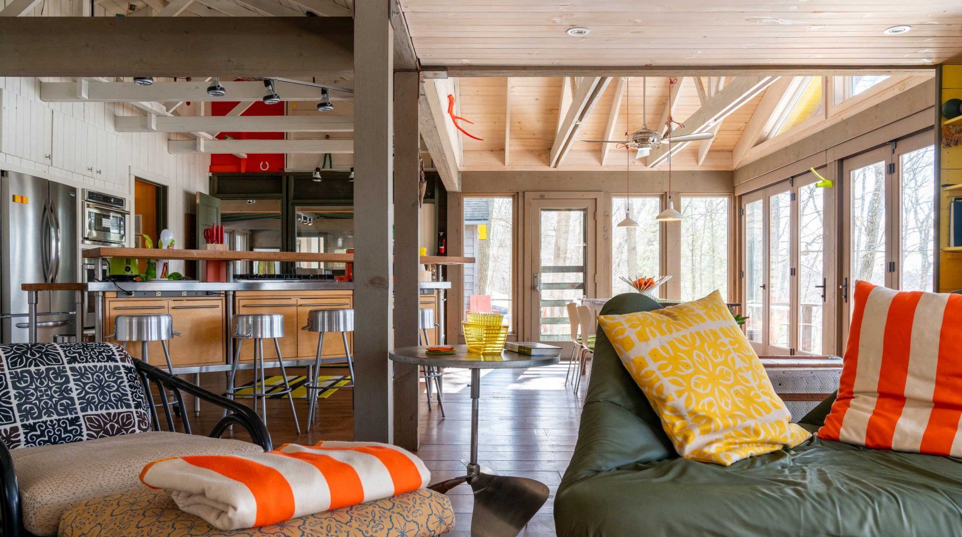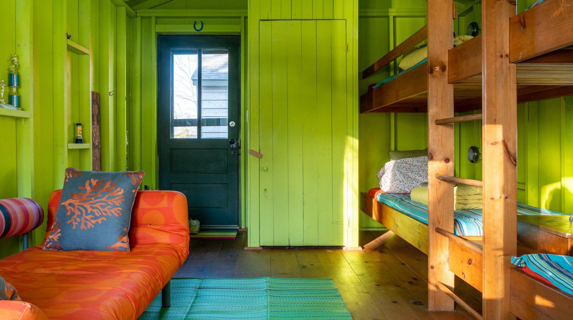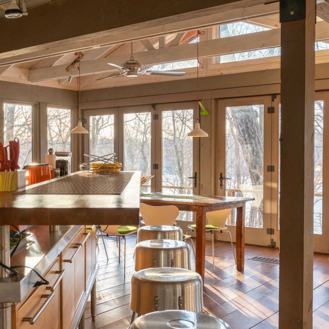 It's back to camp at this lakeside home, which has been designed to make the most of its beautiful surroundings. Wooden floorboards, adjoining cabins, folding doors, and outdoor walkways give the sense of being in a giant – and rather quirky – treehouse. First up on your camp agenda will be running wild in the gorgeous grounds. We love the array of activities the spot has on offer, with a barbecue, fire pit, ping pong and foosball tables, kayaks, and a deck to jump straight into the freshwater lake. When you're not exploring the surrounding state parks, the home is full of nooks and crannies to explore. Lounge in the Japanese soaking tub, lie back in an indoor hammock, or watch the sunset from the deck before planning another day of action at this peaceful hideaway.
