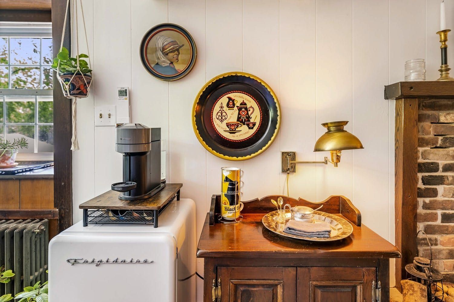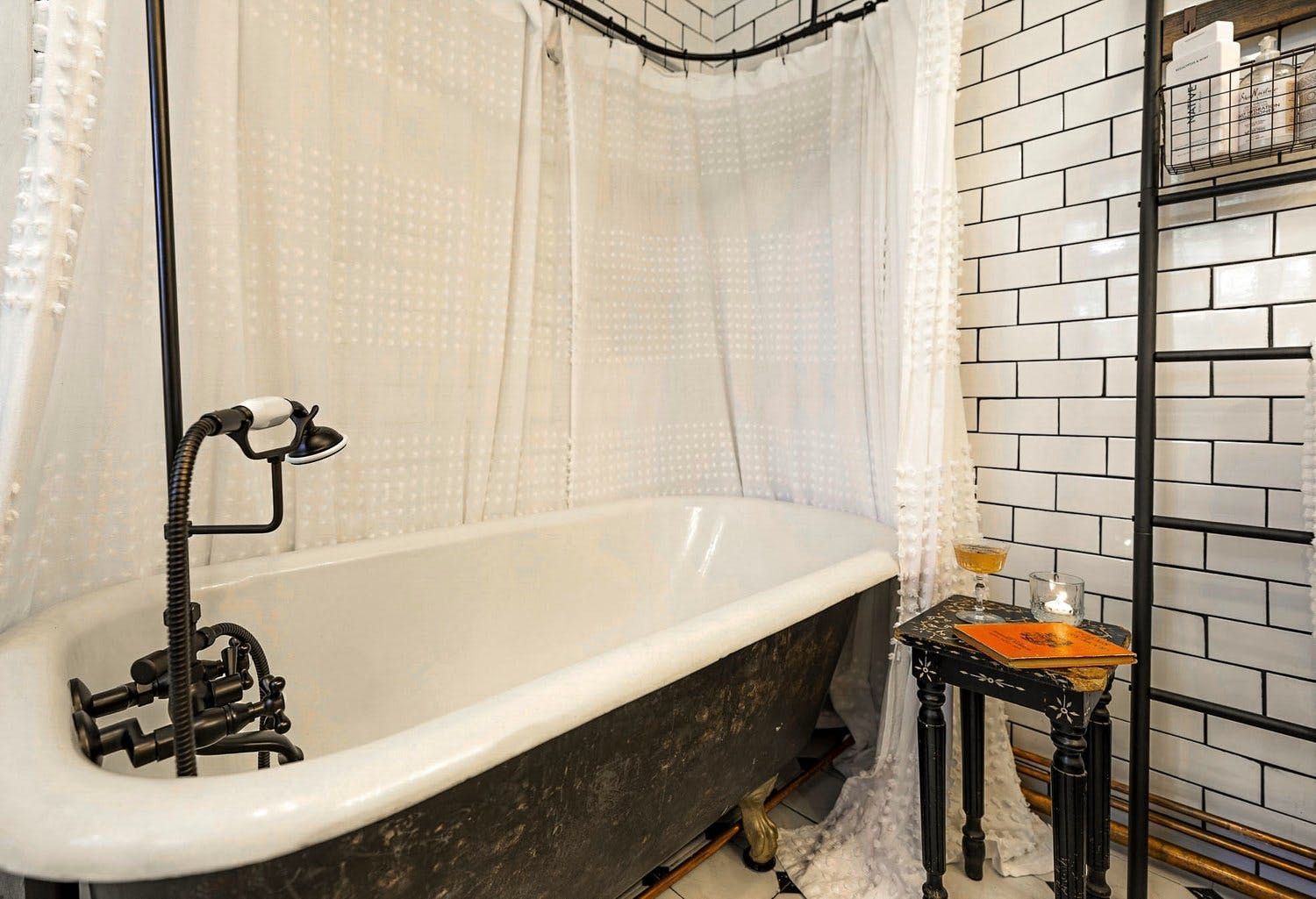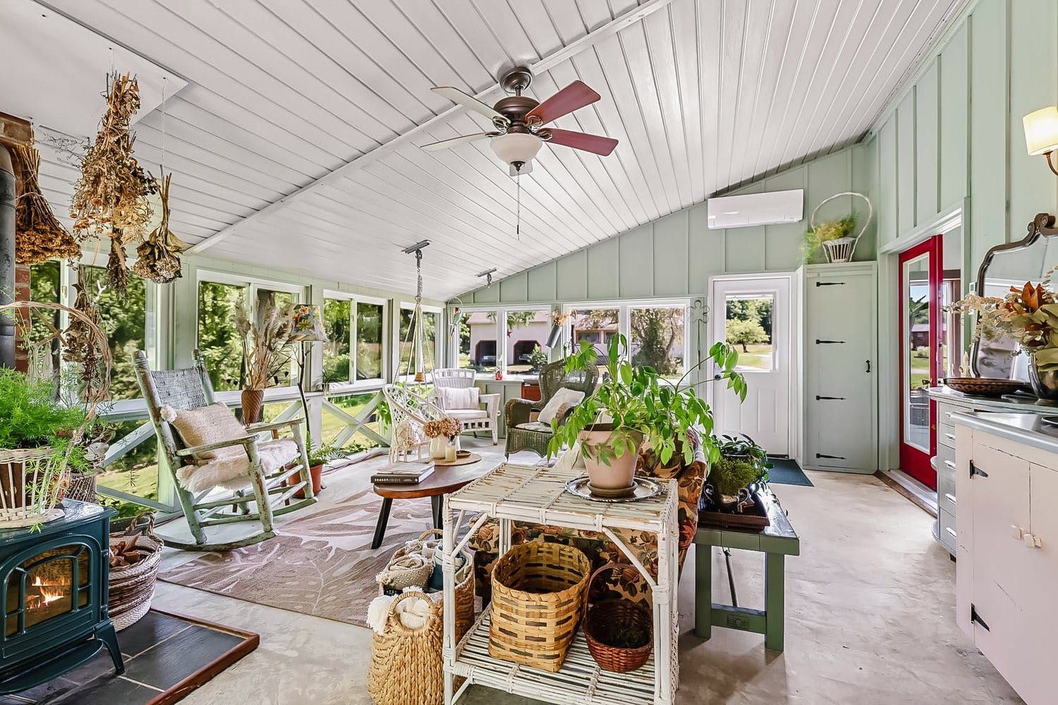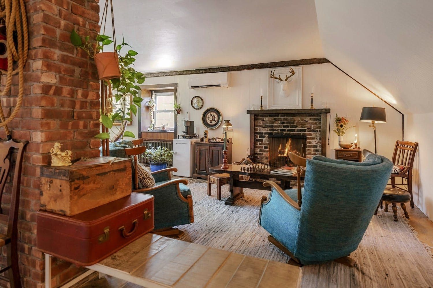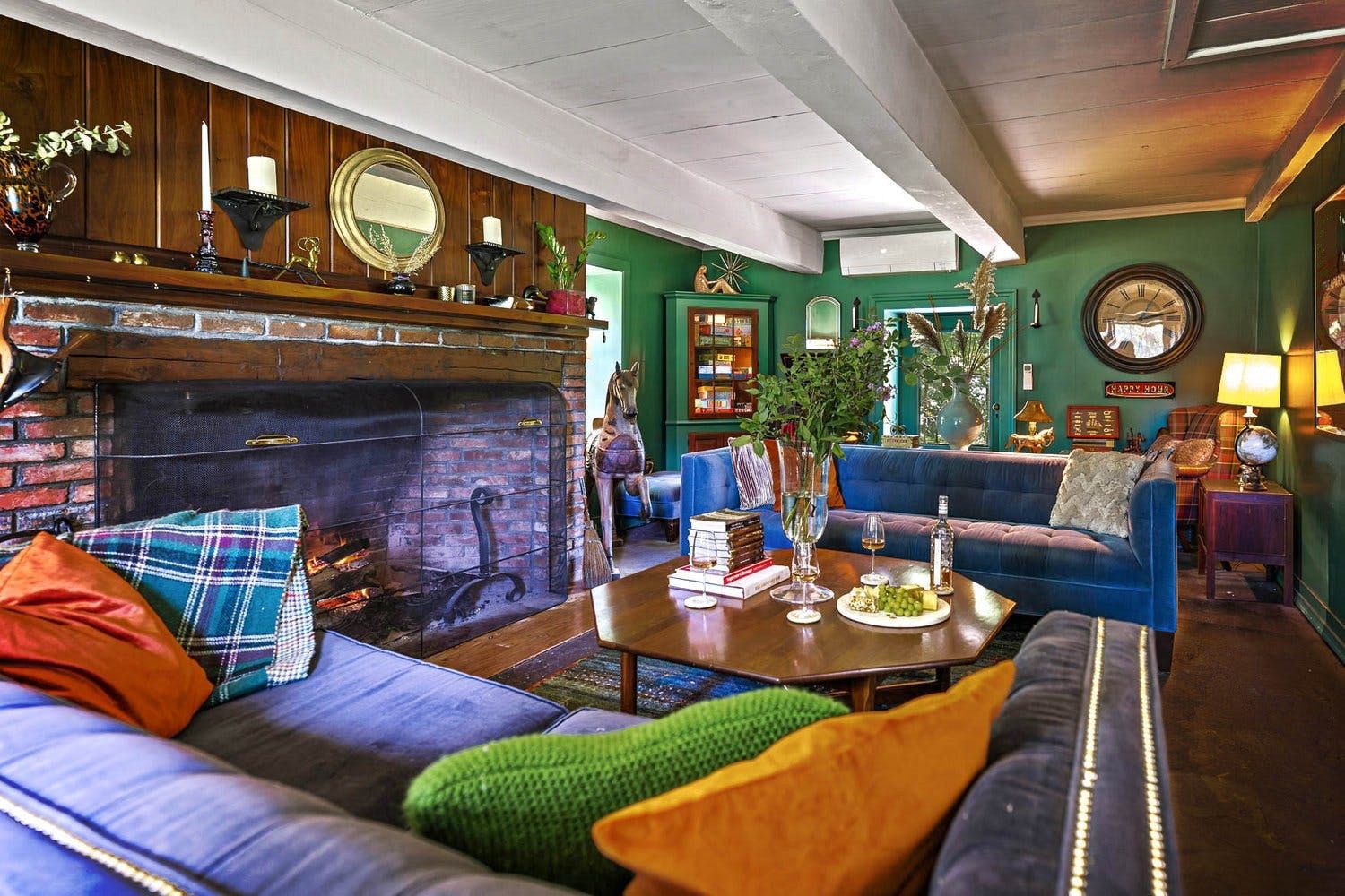 The distinctive living room has a large wood burning fireplace and plenty of games for the kids. There is also a sun room which is perfect for relaxing in with a book. The farmhouse kitchen is well equipped with a range of appliances and cooking essentials. Upstairs, the palatial main suite comes with an office for remote working, a living area with its own fireplace and coffee station, and a claw-footed bathtub in the bathroom. The second and third bedroom have their own unique charm, and there is also a junior bedroom with plenty of toys and books for the little ones.