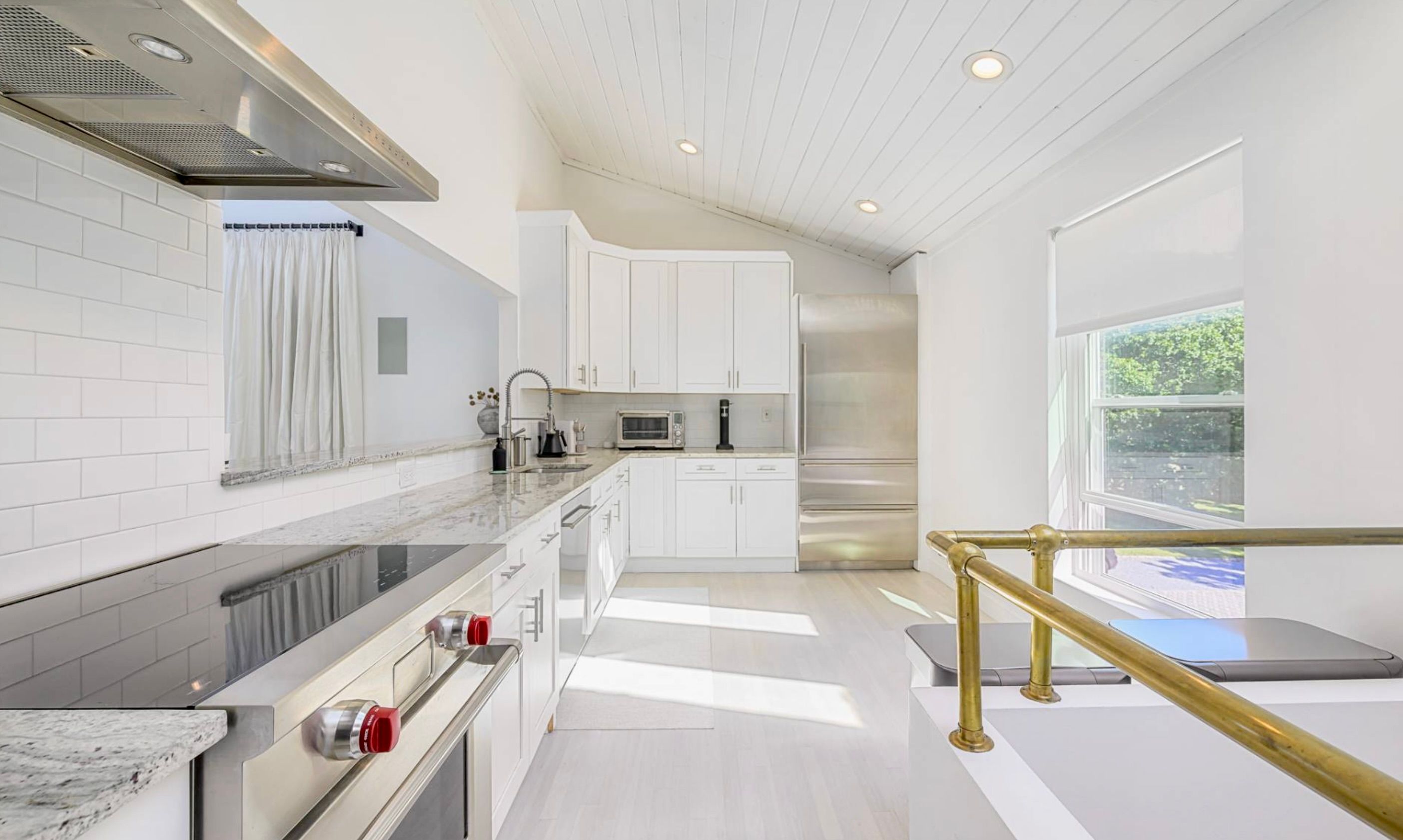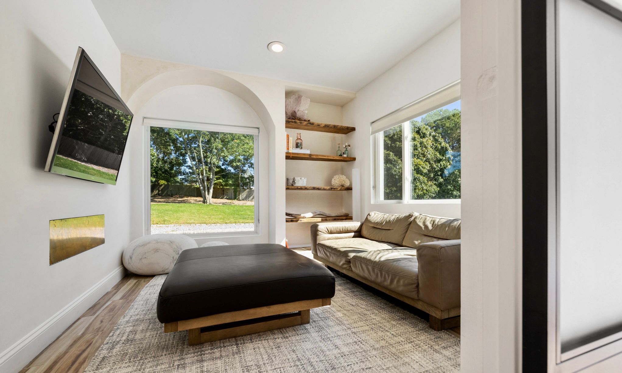 Radiating coastal luxury, this towering home with its streamlined kitchen, natural lighting and picture-perfect minimalist rooms stands on an acre of land in the affluent Hamptons. Location-wise, you're surrounded by art museums and trendy mom-and-pop shops, with the historic Shinnecock Hills Golf Club under five minutes away by car and Meschutt Beach not much further. Not only is it well positioned with good looks, but the sleek terrace is also where you'll find a swimming pool and seating area overlooking the treeline and garden below.