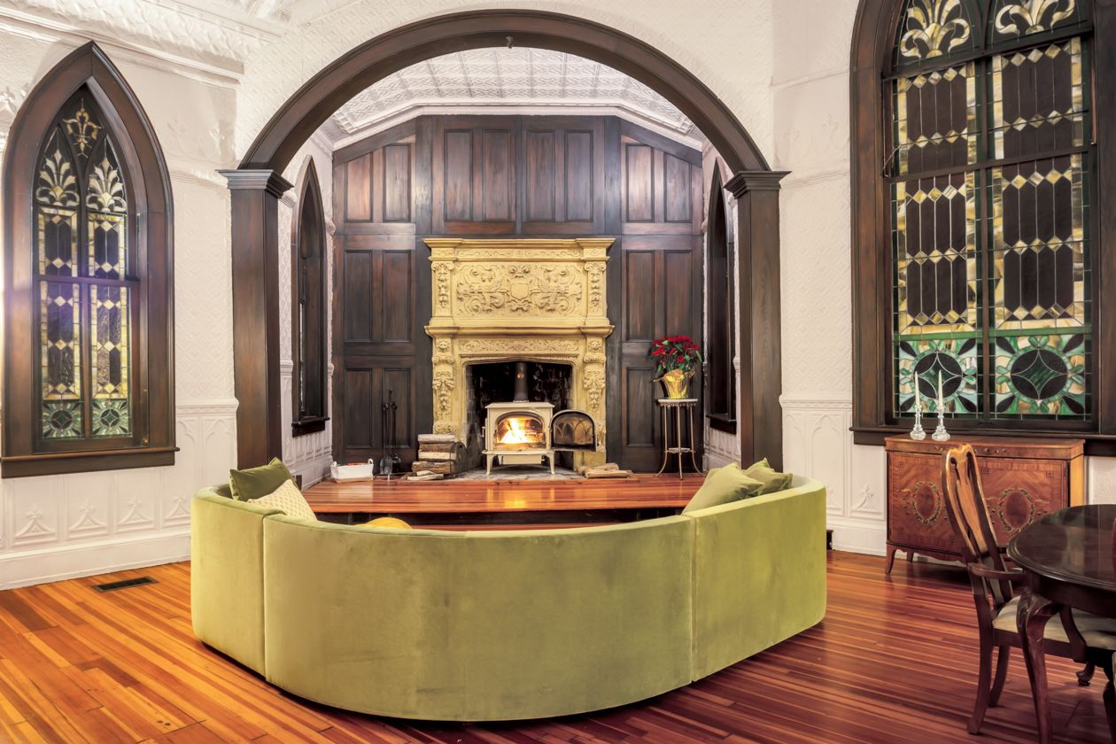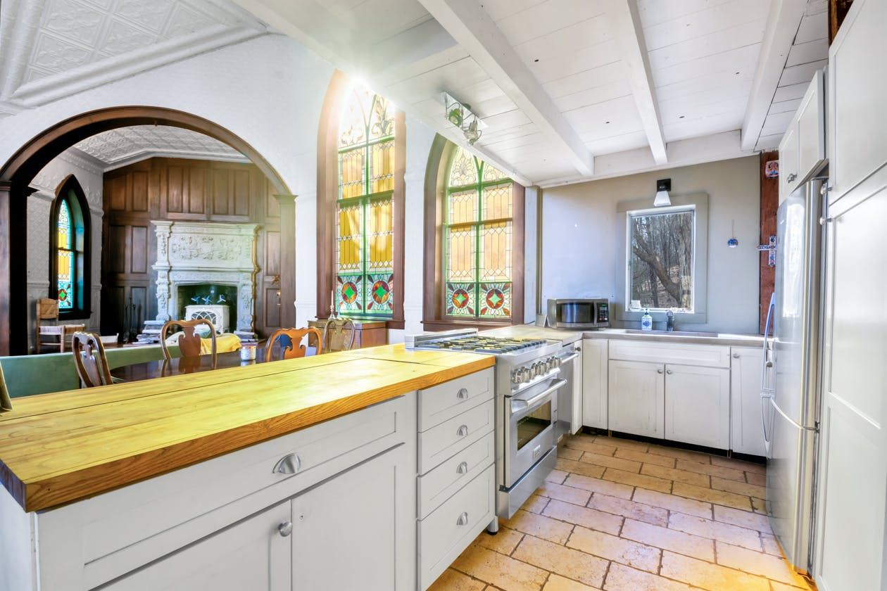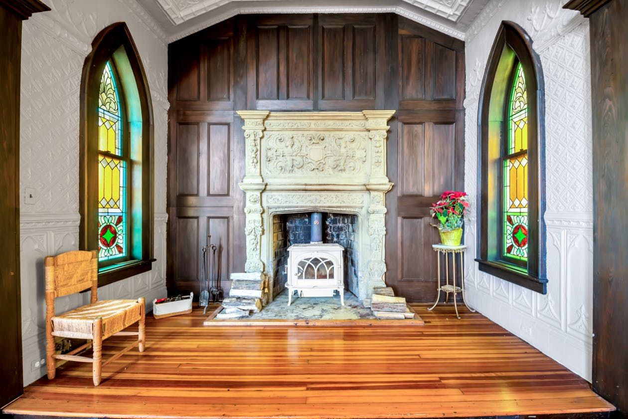 Arched, stained-glass windows throw rainbows of light into the living room and what was once the altar is now a cosy nook for a wood-burning stove, framed by the wooden mantel from a famous Broadway theatre. The kitchen is fully-equipped with spices, ingredients, utensils and everything you'll need to prepare a hearty home-cooked meal. What was once the Sunday School room is now a lavish bedroom and just beneath the belltower, you’ll find a reading nook for lazy days, plus a range of games to keep everyone entertained. Outside, you’ll find a barbecue grill and seating on the patio, and a hammock to enjoy the sounds of the forest with a gentle sway. This is one home that really needs to be seen to be believed.