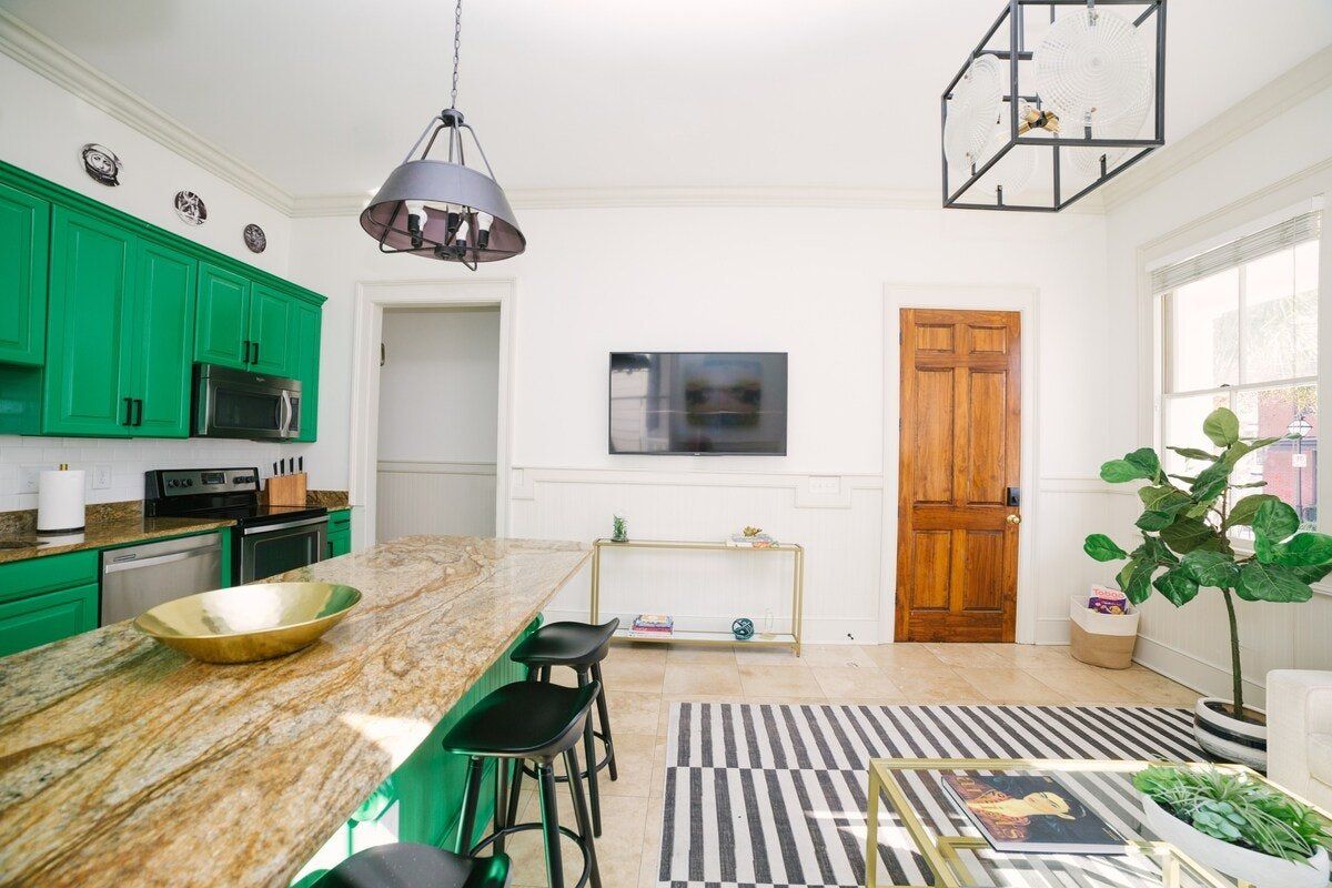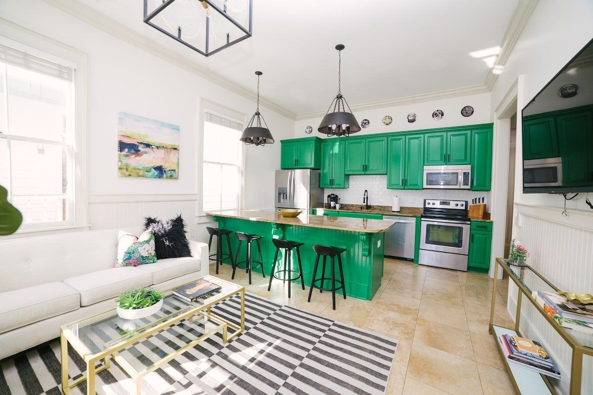 Located just outside of Charleston's historic downtown area and close to the shops, restaurants and bars of King Street, this home is in an enviable position within the city. And just like its surroundings, the building itself is steeped in history. Built in 1885, it boasts picturesque porches, hardwood floors and a crisp colour scheme. The kitchen is eye-catching with its bright green cabinets, and offers a bold contrast to the elegant Art Deco-inspired living area. Our favourite element, however, is the veranda. No trip to the southern states is complete without at least some of the relaxation taking place on a traditional covered porch, and this home offers a charming one where you can sit and while away the hours with a cool drink.