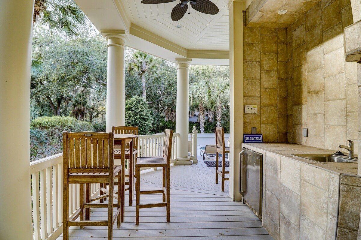 A sweet summer’s day comes easy in this elegant, Georgian-style home. After a rejuvenating sleep in one of the lavish bedrooms, all you’ll want is to get out into the sun. We know that some people prefer sandy beaches while others like swimming pools, and we love that this home has both – a private, glassy pool out back and the beach just a stone’s throw away. The home also has an entertainment room and well-equipped bar to ensure that everyone gets their share of fun. Though with a golf course nearby and rest of the island playground, perhaps we didn’t even need to worry about that.