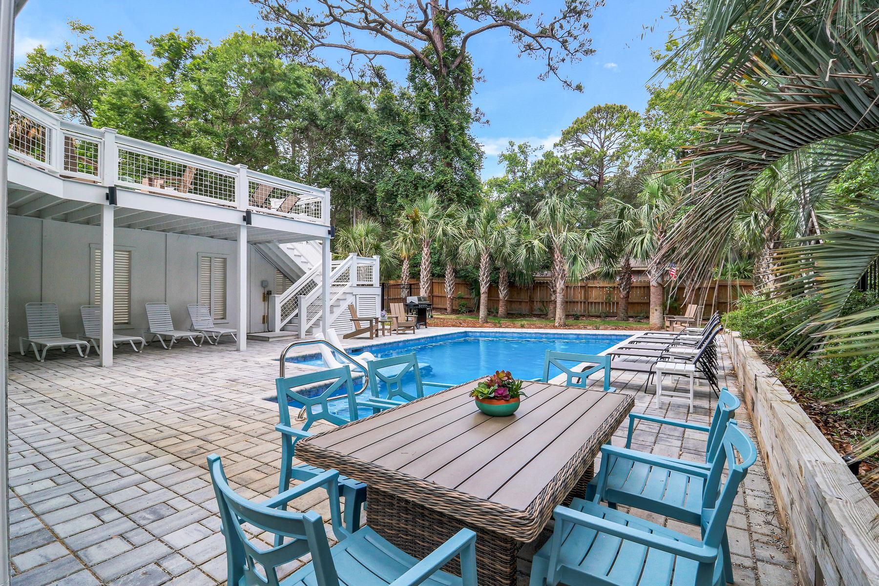 If you’re dreaming of a coastal getaway, this home offers a welcoming solution. Just a five-minute stroll from Forest Beach, days can be spent soaking up the fresh ocean air. You can walk or cycle to restaurants and shops in Coligny Circle, while golf courses and tennis courts are close by. And while the location is a highlight, this home has a lot to offer too. From the private pool to the games room, every detail has been designed for family fun and relaxation. You’ll have plenty of space to stretch out with a screened porch, two living rooms and seven bedrooms – all with en-suite bathrooms.
