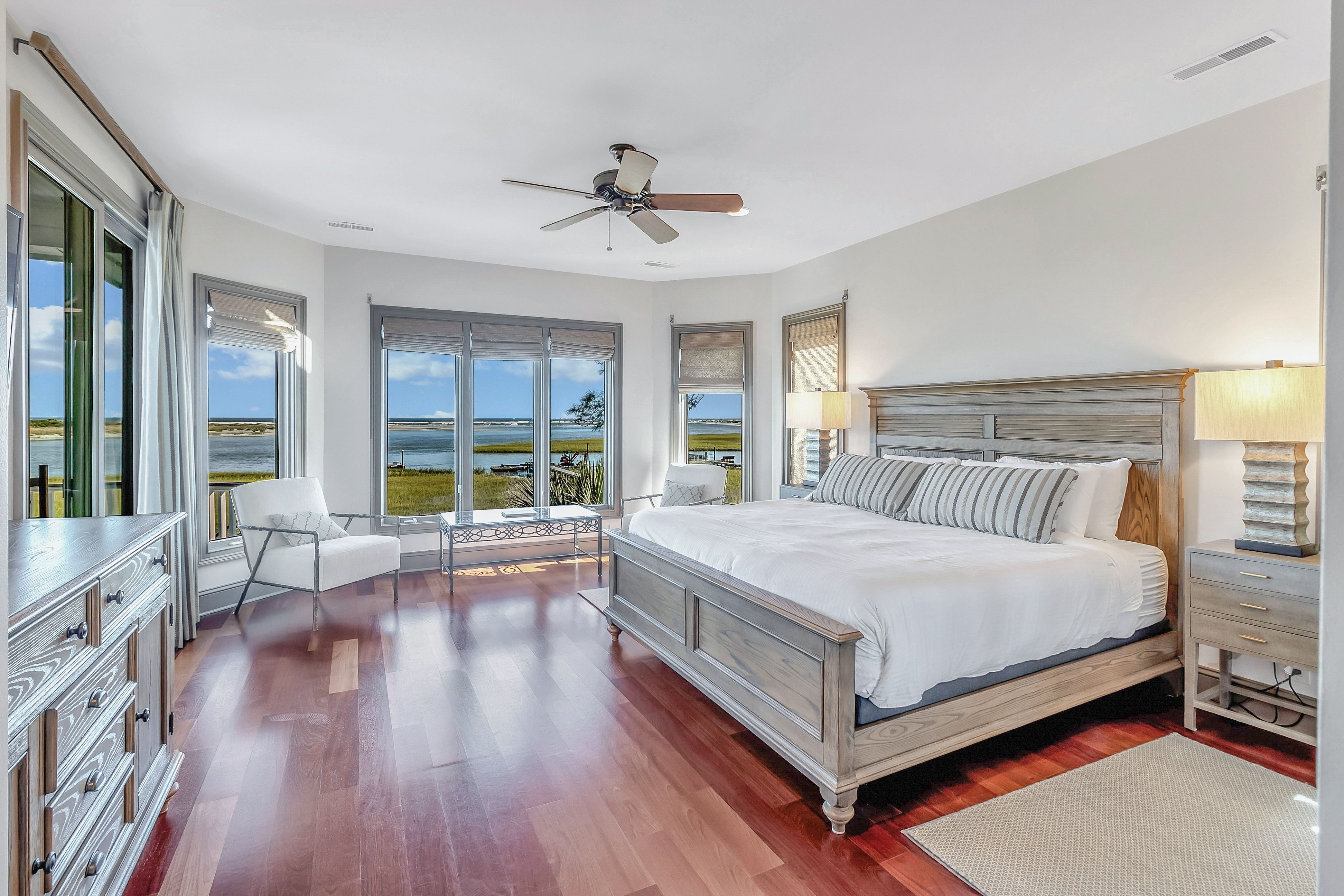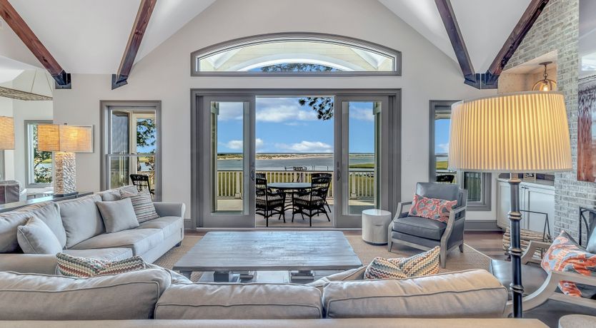 Just 2 miles from the beach and set between the tidal marshes and the Kiawah River, this home has incredible views from its private terrace. You may even spot dolphins from the private dock here or spend some time at the resort’s communal outdoor and indoor pools or fitness centre. You’ll also have access to golf courses, an equestrian centre, dining options and more. Inside this elegant upside-down home, you can enjoy more vistas from the top-floor living room, while another floor has a bar area and additional living space. One thing to note – one of the rooms has a daybed and a trundle bed for guests nine and ten. All in all, this home is in a fantastic setting.