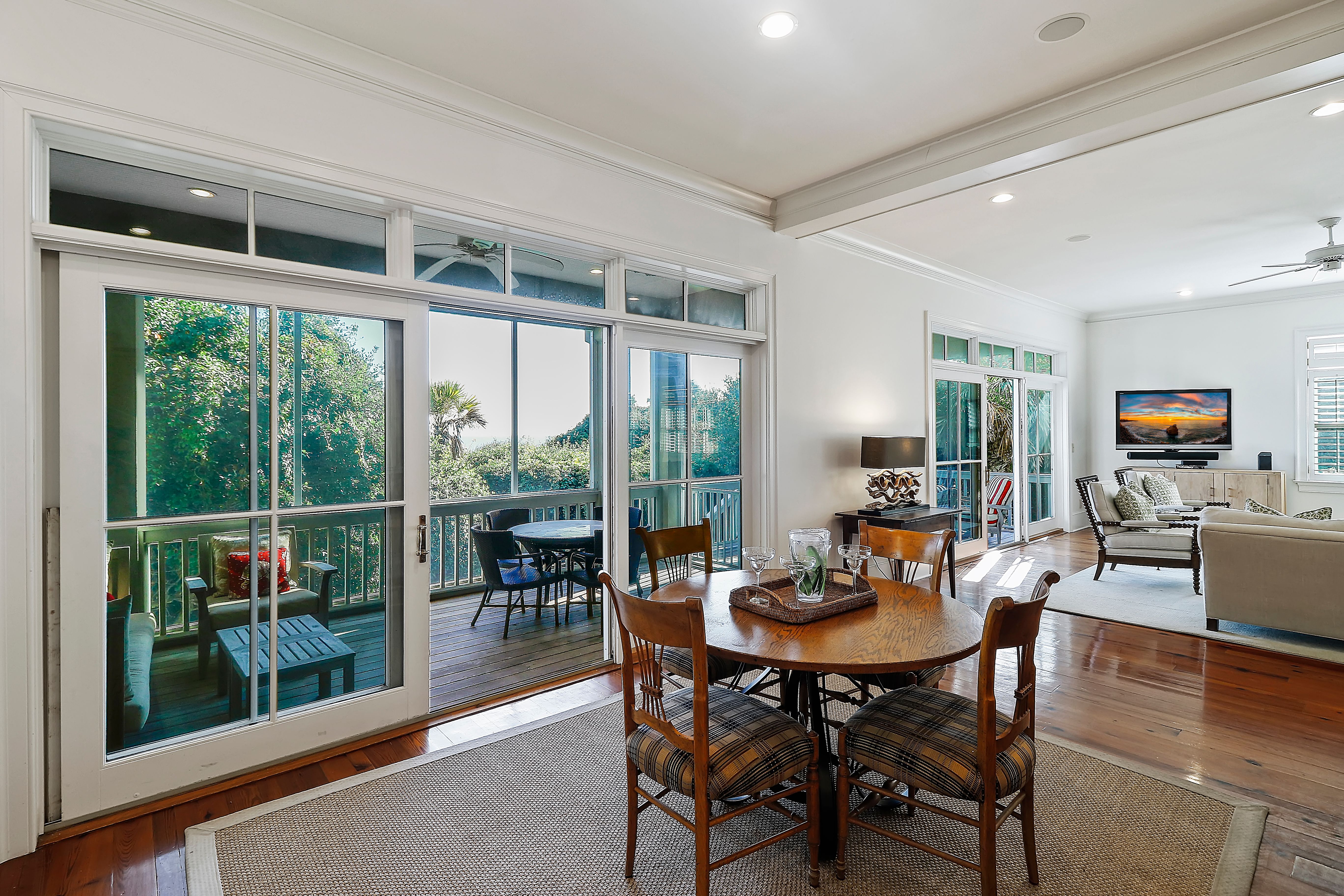 Set in an oceanfront resort on Kiawah Island, this home is the perfect coastal retreat. You’ll be just over 20 metres from the pristine beach, and there’s also a communal tennis court nearby. The ocean views from this home’s balcony are stunning – listen to the sound of the waves as the sun sets. And the porch with its seating and barbecue is ideal for alfresco meals and making the most of the outdoors. Inside, an open-plan living space with its vaulted ceilings and amazing vistas benefits from plenty of natural light – it’s a great place to relax. There’s a den area too, which offers a quiet space for remote working or reading a book. It’s easy to unwind at this luxurious home.