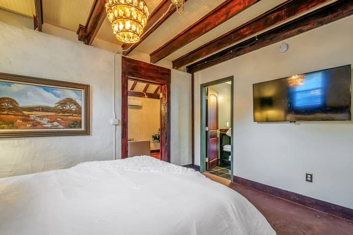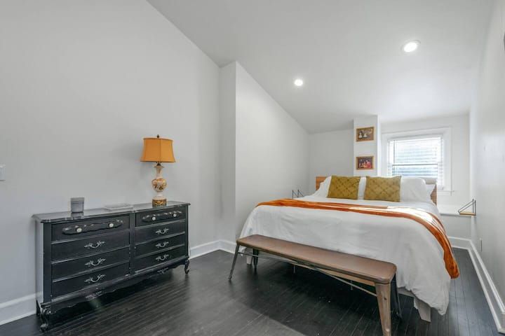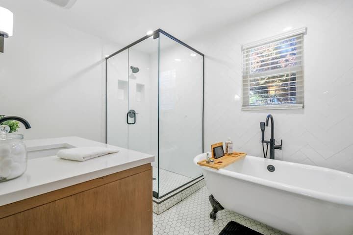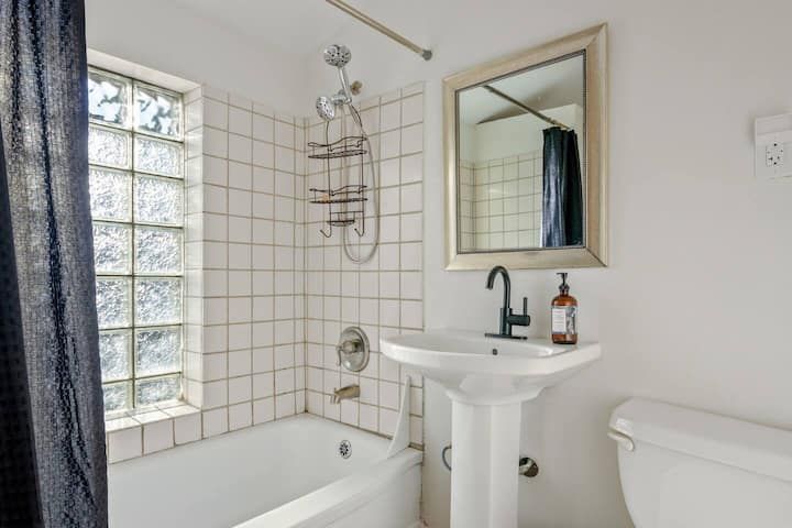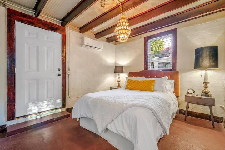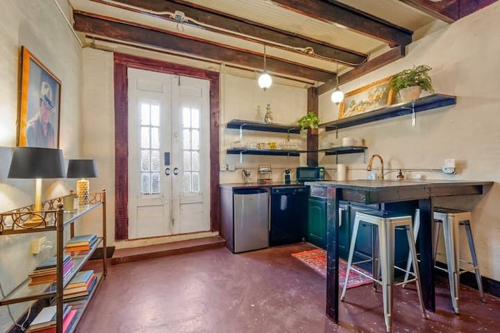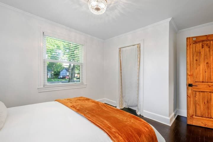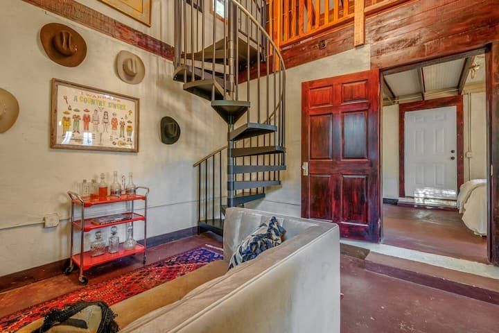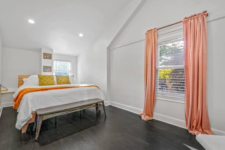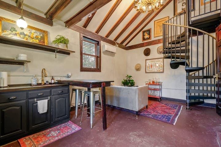 In the southern suburbs of Nashville, this charming home dates back to the 1940s and retains the feel of an early 20th-century mansion. You’re a twelve-minute drive from the sights and sounds of Broadway and can return to a quiet spot after a night in honky tonk music venues.