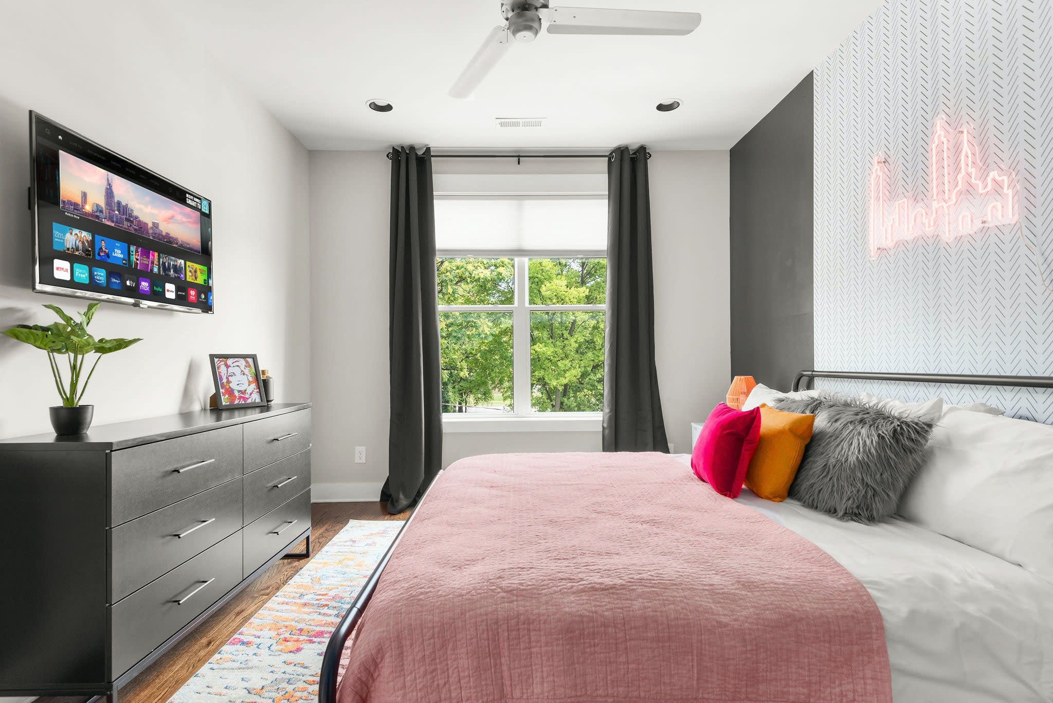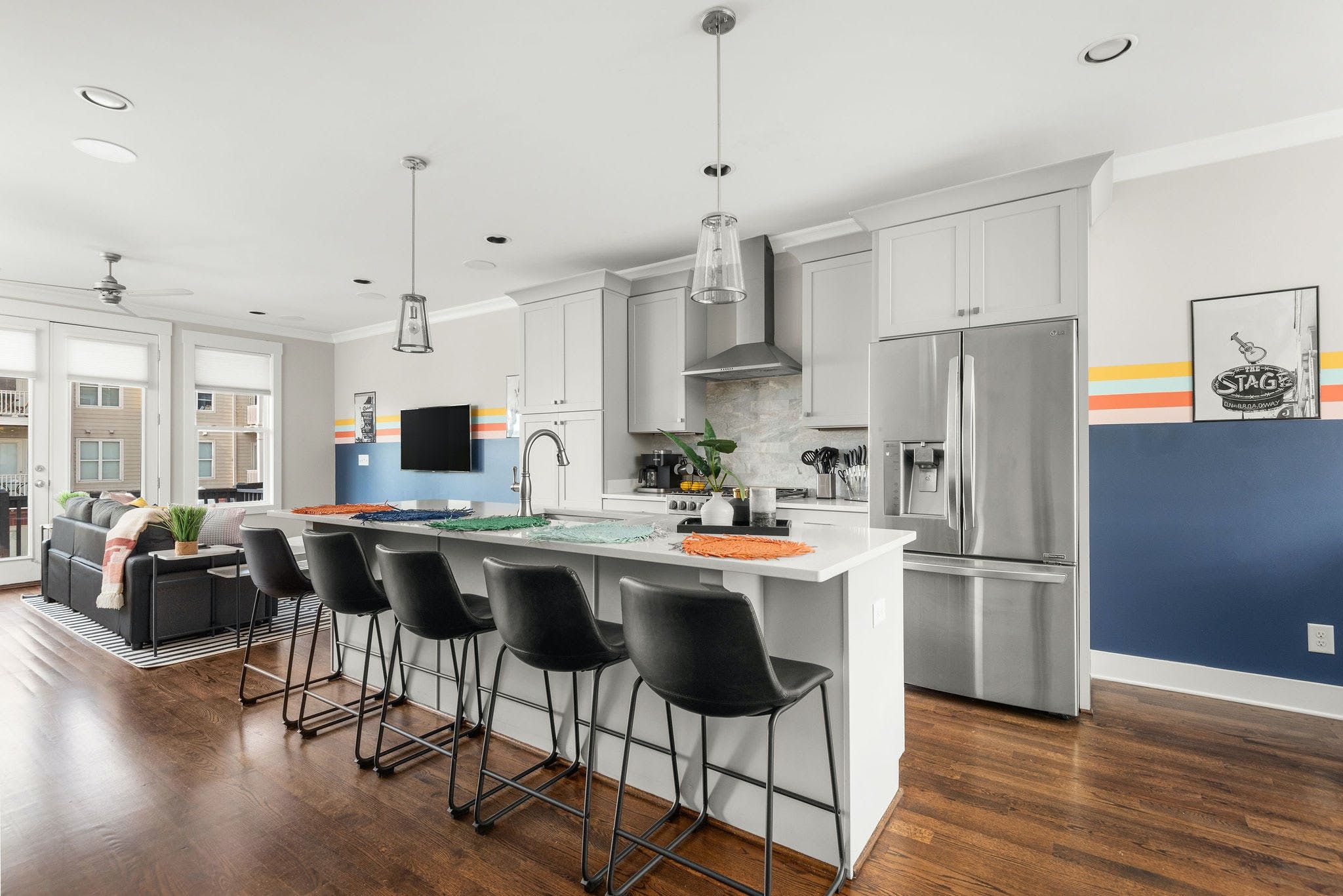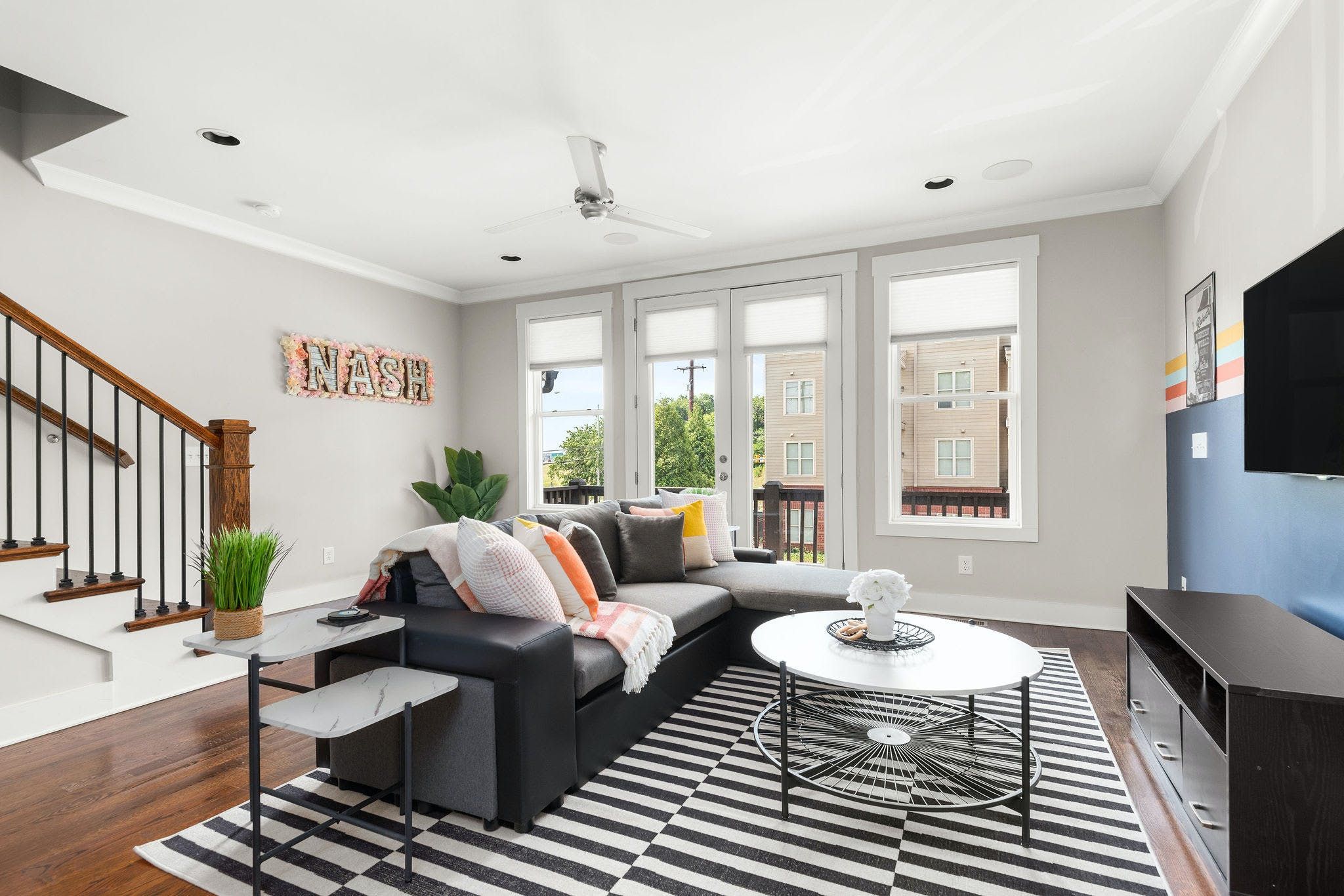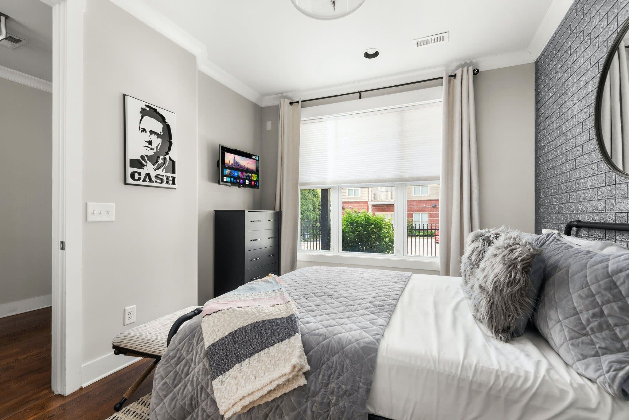 Experience lavish living at our Chic Downtown Retreat, your gateway to Nashville's vibrant soul. Nestled just minutes from the hip neighborhoods of the Gulch and 12 South, this luxurious townhouse offers unparalleled access to renowned music venues, restaurants, and boutiques. Immerse yourself in the rhythm and charm of Music City as you relax in the urban serenity of this hidden oasis. Feel the vibrant soul of Nashville come alive as you step into a Southern comfort descent like no other. With its stylish design and harmonious ambiance, this luxury hideaway offers a taste of the groove townhouse experience that is sure to delight. Embark on a journey where city lights meet refuge, where melody becomes an escape, and where every moment is a fusion of music and style. Welcome to your unforgettable stay at this unique Nashvillian haven.