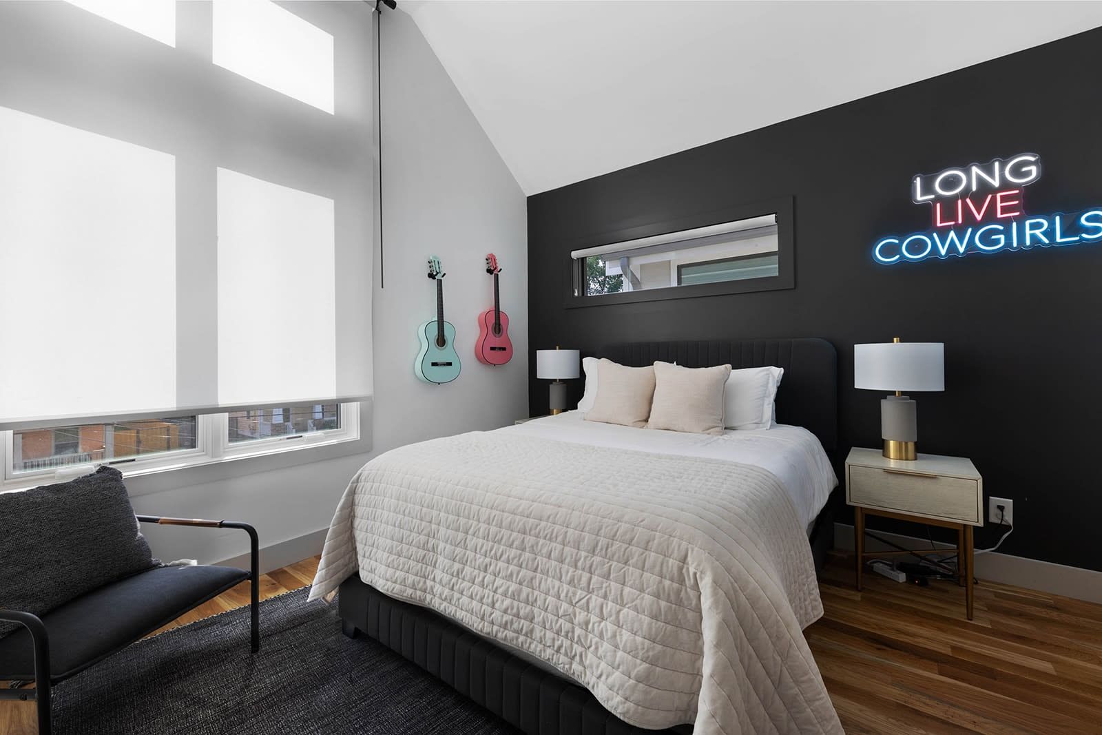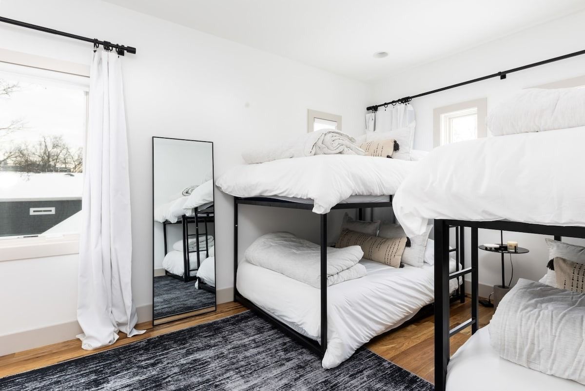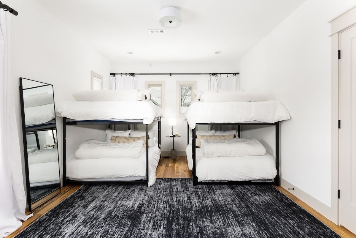 Planning a big group getaway to Nashville? This three-storey home makes it easy. The contemporary interiors and sense of space are impressive. But it’s the thoughtful extras that set this home apart from the rest. Expect a screened-in porch with a fire pit for late-night chats and a garden hot tub for soaking under the Tennessee stars. Do note, the last bedroom sleeps four guests on double bunk beds – great for close-knit friends and family, but it might not suit everyone. Location-wise, you’re just on the edge of Germantown, with Broadway’s legendary honky-tonks, speakeasies, and music halls just a five-minute drive (or Uber) away.