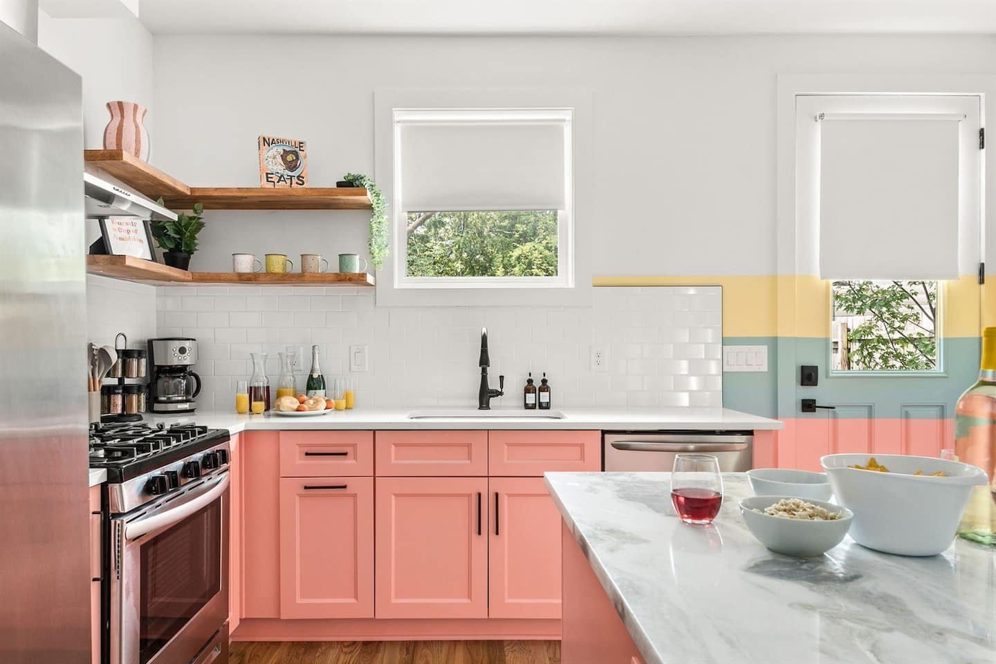 “What would Dolly do?” reads the neon writing in this homage to the Queen of Country. Well, she’d probably start with a glass of something bubbly on the rooftop champagne bar before heading into the heart of Nashville’s music and bar scene – Broadway – a ten-minute walk away. Just like Dolly herself, this home is brimming with character and charm. The living room in candyfloss pink has a huge sectional sofa for the group to gather on and the bright motif continues into the rainbow-walled kitchen. Bedrooms have been designed with groups of close friends in mind, with luxurious bunkbeds sitting alongside sprawling doubles. The Dolly Suite is a riot of mid-century chic touches and even the books in the bunkbed room have been arranged into a rainbow. The media room at the top of the home is the perfect spot for an evening screening of 9 to 5, and it leads out to the rooftop “champagne bar” – the terrace overlooking the neighbourhood roofs, furnished with a wine fridge and full wet bar. Sorry Dolly, it looks like you were wrong, turns out you don’t have to put up with the rain to get the rainbow.