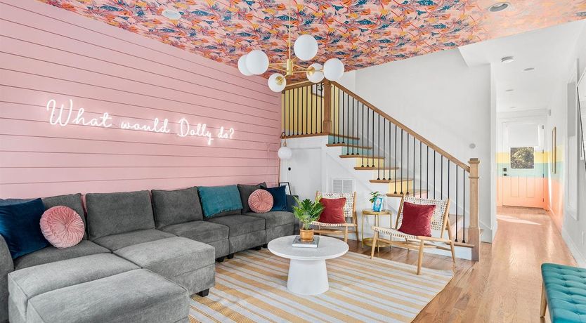 “What would Dolly do?” reads the neon writing in this homage to the Queen of Country. Well, she’d probably start with a glass of something bubbly on the rooftop champagne bar before heading into the heart of Nashville’s music and bar scene – Broadway – a ten-minute walk away. Just like Dolly herself, this home is brimming with character and charm. The living room in candyfloss pink has a huge sectional sofa for the group to gather on and the bright motif continues into the rainbow-walled kitchen. Bedrooms have been designed with groups of close friends in mind, with luxurious bunkbeds sitting alongside sprawling doubles. The Dolly Suite is a riot of mid-century chic touches and even the books in the bunkbed room have been arranged into a rainbow. The media room at the top of the home is the perfect spot for an evening screening of 9 to 5, and it leads out to the rooftop “champagne bar” – the terrace overlooking the neighbourhood roofs, furnished with a wine fridge and full wet bar. Sorry Dolly, it looks like you were wrong, turns out you don’t have to put up with the rain to get the rainbow.