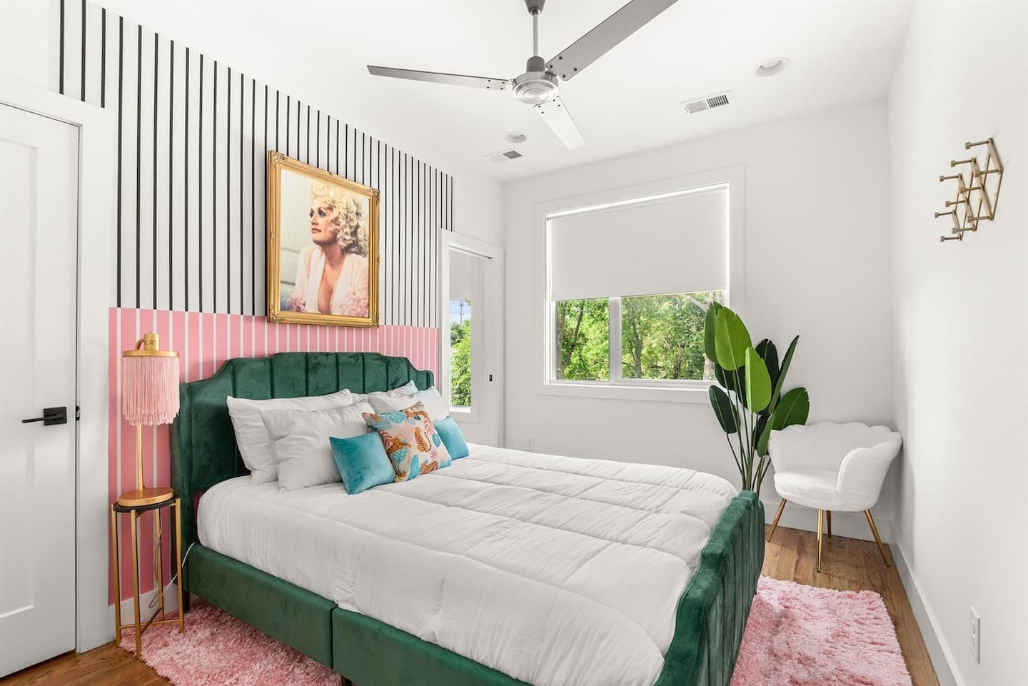 “What would Dolly do?” reads the neon writing in this homage to the Queen of Country. Well, she’d probably start with a glass of something bubbly on the rooftop champagne bar before heading into the heart of Nashville’s music and bar scene – Broadway – a ten-minute walk away. Just like Dolly herself, this home is brimming with character and charm. The living room in candyfloss pink has a huge sectional sofa for the group to gather on and the bright motif continues into the rainbow-walled kitchen. Bedrooms have been designed with groups of close friends in mind, with luxurious bunkbeds sitting alongside sprawling doubles. The Dolly Suite is a riot of mid-century chic touches and even the books in the bunkbed room have been arranged into a rainbow. The media room at the top of the home is the perfect spot for an evening screening of 9 to 5, and it leads out to the rooftop “champagne bar” – the terrace overlooking the neighbourhood roofs, furnished with a wine fridge and full wet bar. Sorry Dolly, it looks like you were wrong, turns out you don’t have to put up with the rain to get the rainbow.