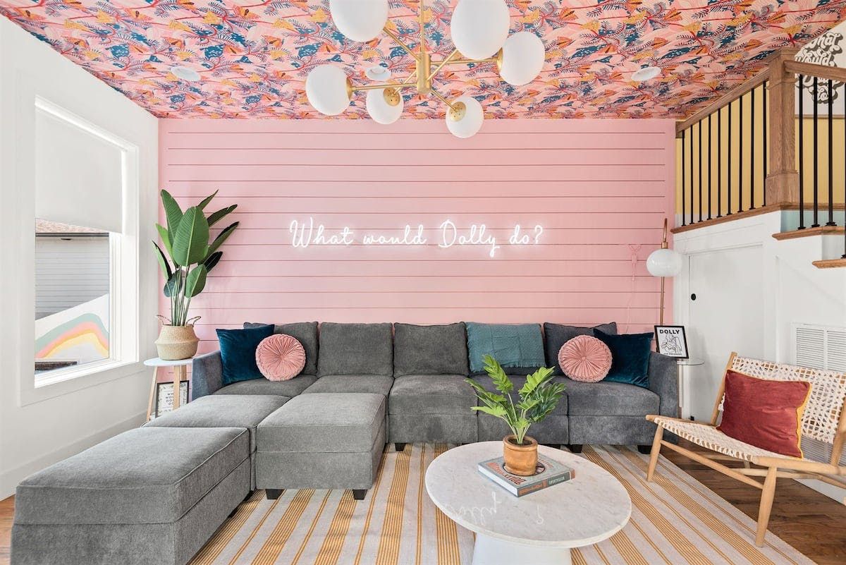 “What would Dolly do?” reads the neon writing in this homage to the Queen of Country. Well, she’d probably start with a glass of something bubbly on the rooftop champagne bar before heading into the heart of Nashville’s music and bar scene – Broadway – a ten-minute walk away. Just like Dolly herself, this home is brimming with character and charm. The living room in candyfloss pink has a huge sectional sofa for the group to gather on and the bright motif continues into the rainbow-walled kitchen. Bedrooms have been designed with groups of close friends in mind, with luxurious bunkbeds sitting alongside sprawling doubles. The Dolly Suite is a riot of mid-century chic touches and even the books in the bunkbed room have been arranged into a rainbow. The media room at the top of the home is the perfect spot for an evening screening of 9 to 5, and it leads out to the rooftop “champagne bar” – the terrace overlooking the neighbourhood roofs, furnished with a wine fridge and full wet bar. Sorry Dolly, it looks like you were wrong, turns out you don’t have to put up with the rain to get the rainbow.