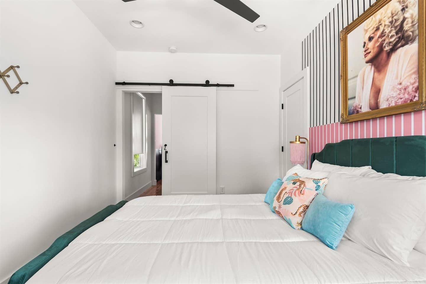 “What would Dolly do?” reads the neon writing in this homage to the Queen of Country. Well, she’d probably start with a glass of something bubbly on the rooftop champagne bar before heading into the heart of Nashville’s music and bar scene – Broadway – a ten-minute walk away. Just like Dolly herself, this home is brimming with character and charm. The living room in candyfloss pink has a huge sectional sofa for the group to gather on and the bright motif continues into the rainbow-walled kitchen. Bedrooms have been designed with groups of close friends in mind, with luxurious bunkbeds sitting alongside sprawling doubles. The Dolly Suite is a riot of mid-century chic touches and even the books in the bunkbed room have been arranged into a rainbow. The media room at the top of the home is the perfect spot for an evening screening of 9 to 5, and it leads out to the rooftop “champagne bar” – the terrace overlooking the neighbourhood roofs, furnished with a wine fridge and full wet bar. Sorry Dolly, it looks like you were wrong, turns out you don’t have to put up with the rain to get the rainbow.