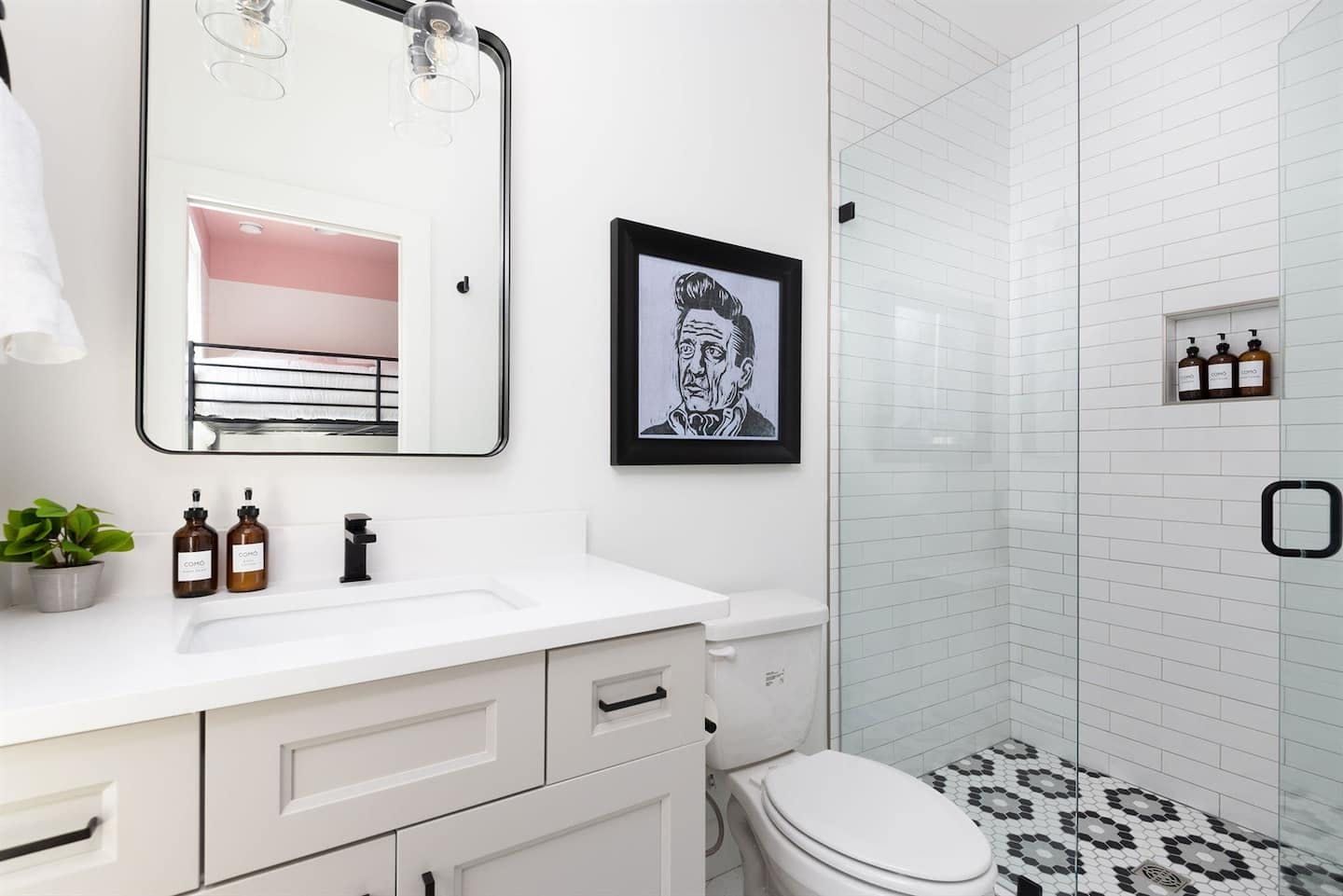 “What would Dolly do?” reads the neon writing in this homage to the Queen of Country. Well, she’d probably start with a glass of something bubbly on the rooftop champagne bar before heading into the heart of Nashville’s music and bar scene – Broadway – a ten-minute walk away. Just like Dolly herself, this home is brimming with character and charm. The living room in candyfloss pink has a huge sectional sofa for the group to gather on and the bright motif continues into the rainbow-walled kitchen. Bedrooms have been designed with groups of close friends in mind, with luxurious bunkbeds sitting alongside sprawling doubles. The Dolly Suite is a riot of mid-century chic touches and even the books in the bunkbed room have been arranged into a rainbow. The media room at the top of the home is the perfect spot for an evening screening of 9 to 5, and it leads out to the rooftop “champagne bar” – the terrace overlooking the neighbourhood roofs, furnished with a wine fridge and full wet bar. Sorry Dolly, it looks like you were wrong, turns out you don’t have to put up with the rain to get the rainbow.