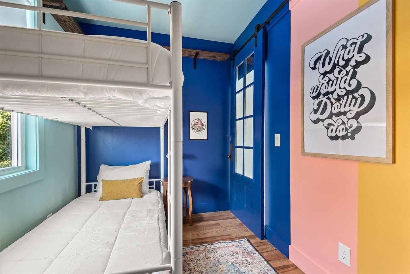 “What would Dolly do?” reads the neon writing in this homage to the Queen of Country. Well, she’d probably start with a glass of something bubbly on the rooftop champagne bar before heading into the heart of Nashville’s music and bar scene – Broadway – a ten-minute walk away. Just like Dolly herself, this home is brimming with character and charm. The living room in candyfloss pink has a huge sectional sofa for the group to gather on and the bright motif continues into the rainbow-walled kitchen. Bedrooms have been designed with groups of close friends in mind, with luxurious bunkbeds sitting alongside sprawling doubles. The Dolly Suite is a riot of mid-century chic touches and even the books in the bunkbed room have been arranged into a rainbow. The media room at the top of the home is the perfect spot for an evening screening of 9 to 5, and it leads out to the rooftop “champagne bar” – the terrace overlooking the neighbourhood roofs, furnished with a wine fridge and full wet bar. Sorry Dolly, it looks like you were wrong, turns out you don’t have to put up with the rain to get the rainbow.