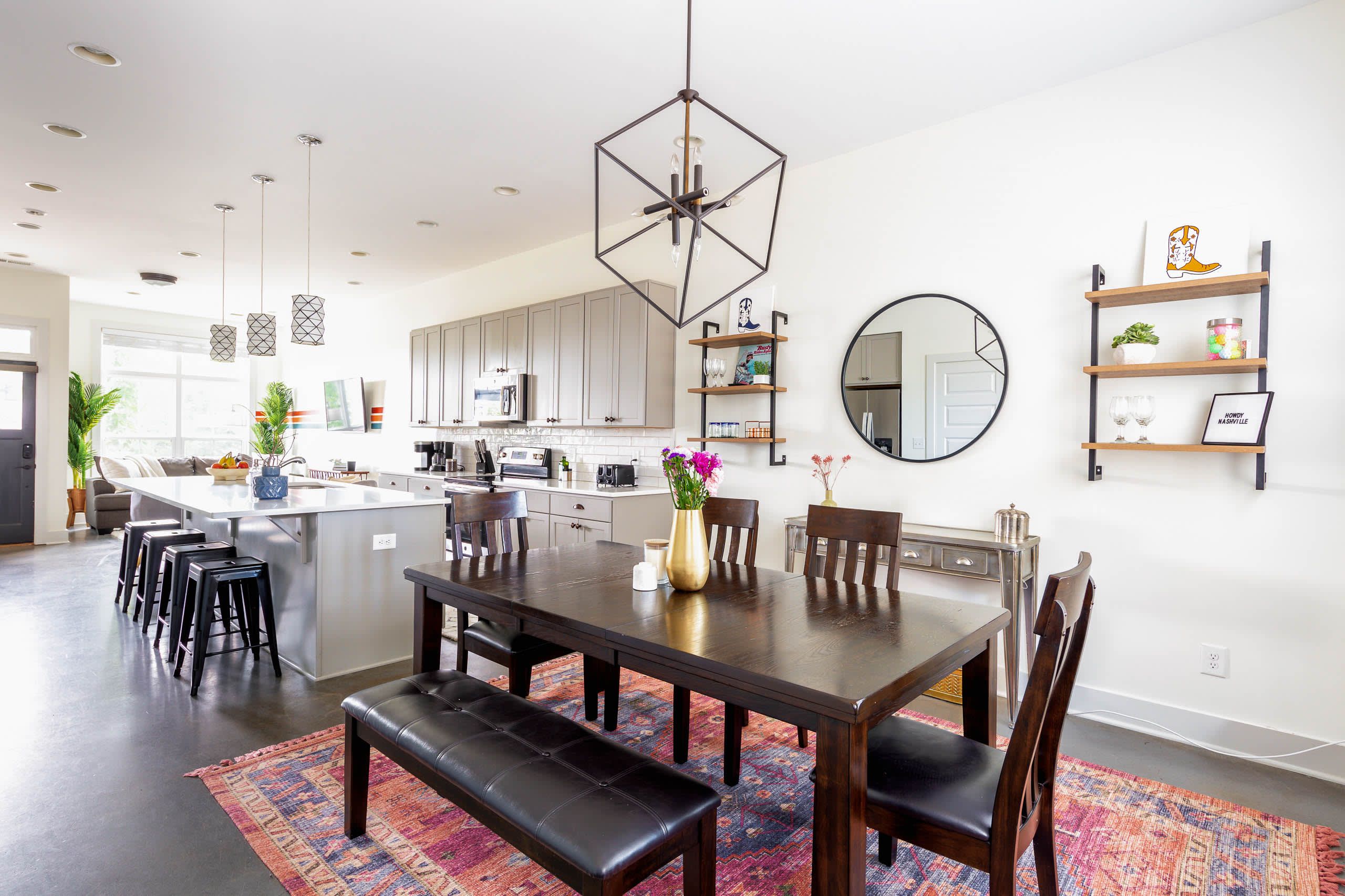 Discover urban vibes in our charming townhome, nestled in trendy East Nashville! Perfect for group trips, family vacations, or work-from-home getaways, this stylish home combines comfort and style. Each of the three spacious bedrooms offers a tranquil retreat after a day of exploring the city. Prepare delicious meals in the fully equipped kitchen while enjoying lively conversations around the dining table. Unwind on the plush couch in the tastefully decorated living space or head up to the rooftop patio for unforgettable sunsets over the city skyline. With abundant amenities and thoughtful touches throughout, we’ve ensured everything you need to feel at home during your stay. Immerse yourself in the vibrant energy of East Nashville while enjoying a peaceful and serene stay at our special hideaway.