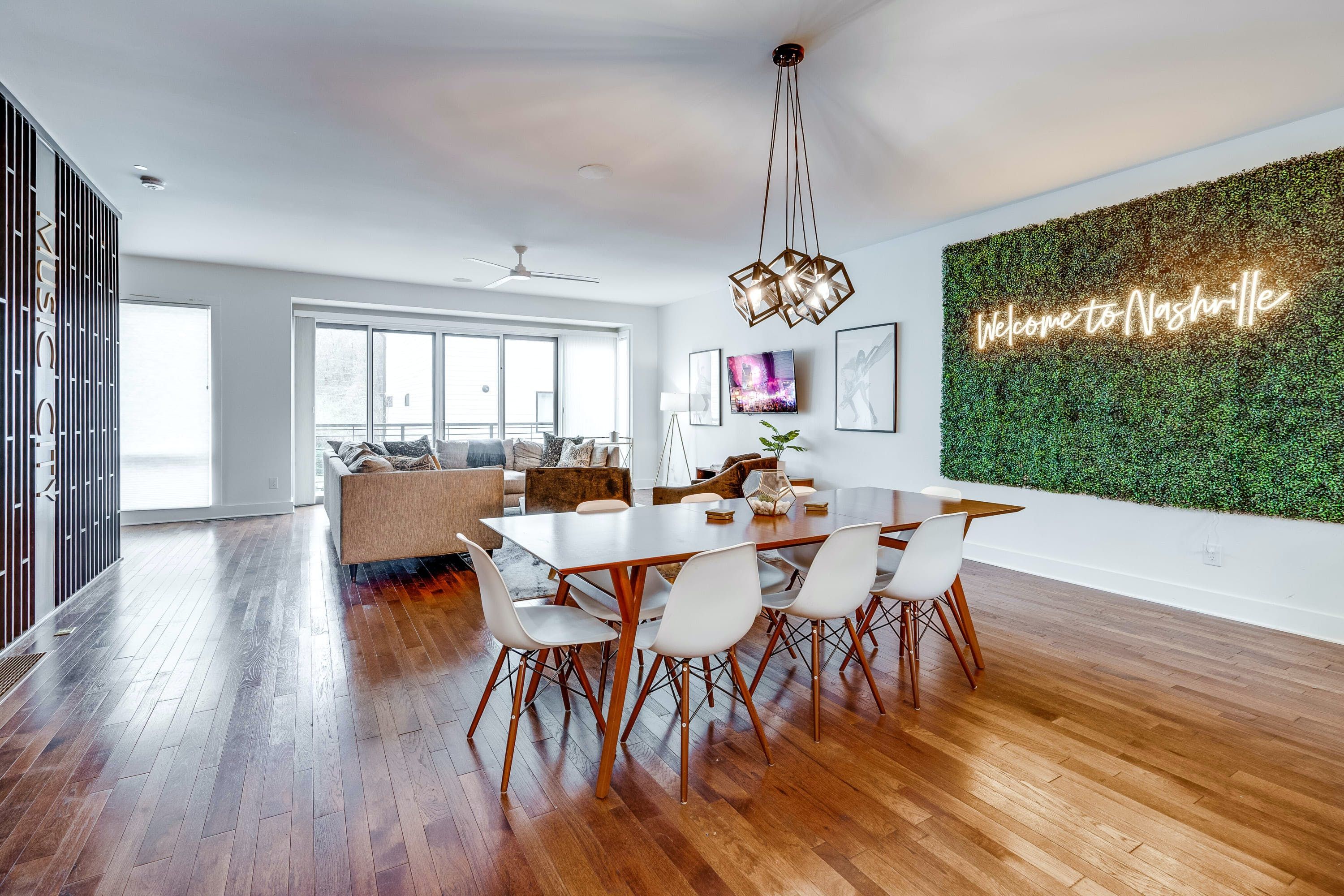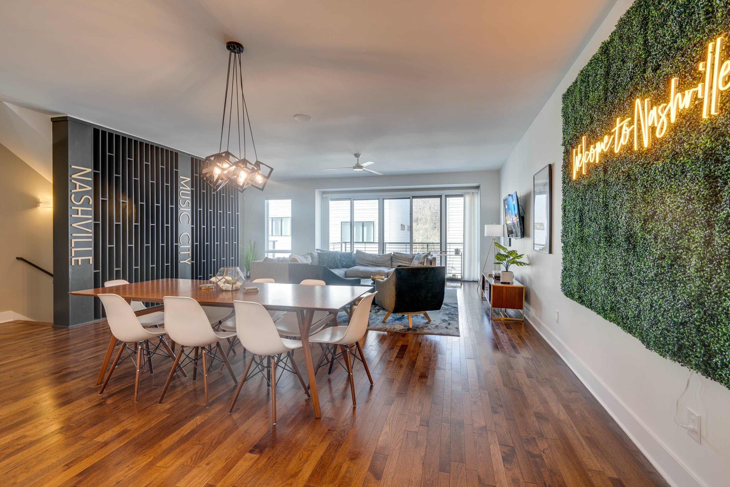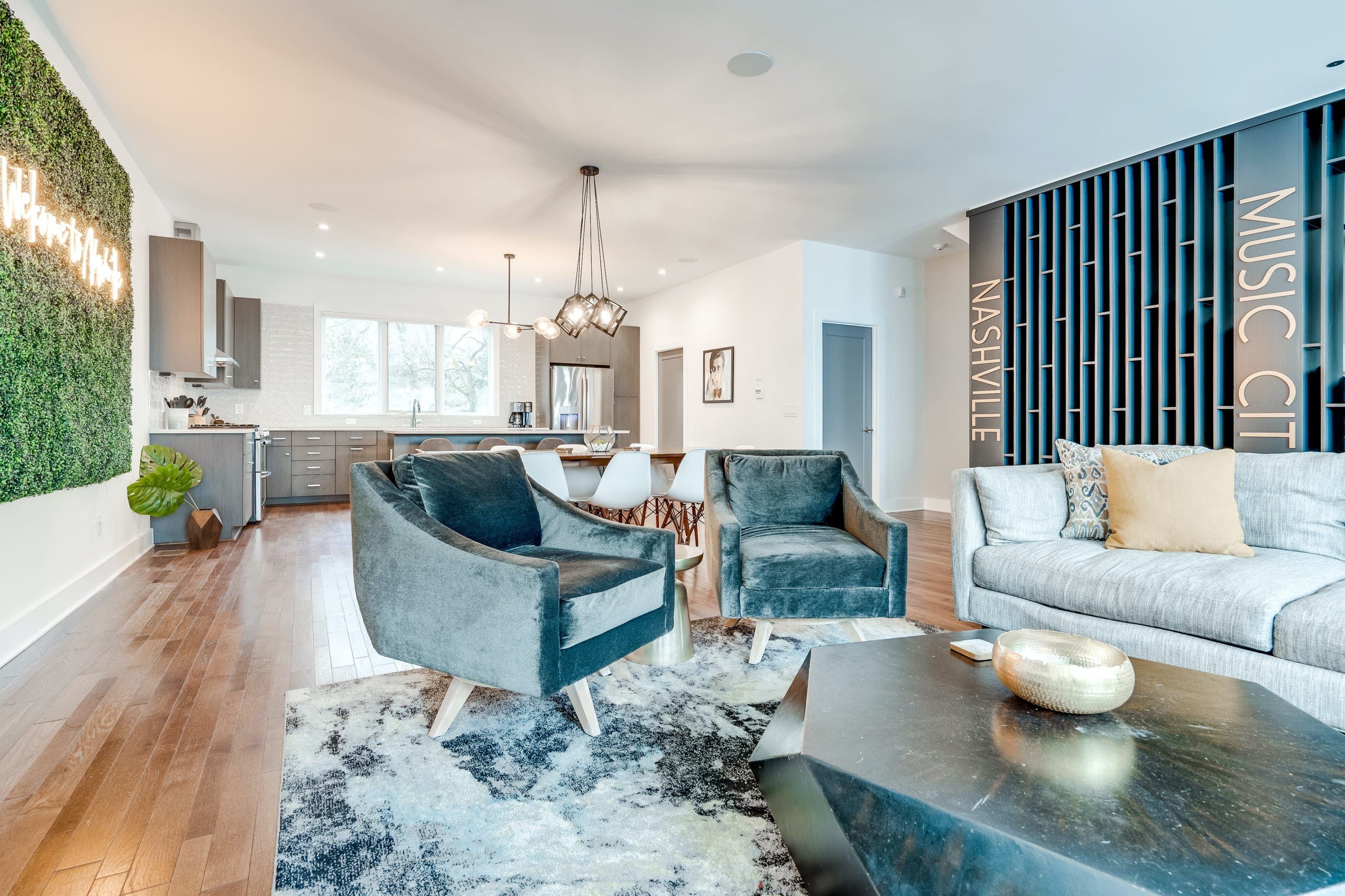 Moments from the vibrant heart of Downtown Nashville, this home makes it easy to enjoy the best of Music City. It’s just a short drive to iconic venues, museums, bars and restaurants. Plus, some of the city’s most loved spots in the Gulch are less than ten-minutes away. Wherever the day takes you, this home opens its doors to fun and relaxation. There’s a games room with ping pin for family competition. You can enjoy laidback movie nights in the open-plan living room and there’s a little balcony for sunset drinks.