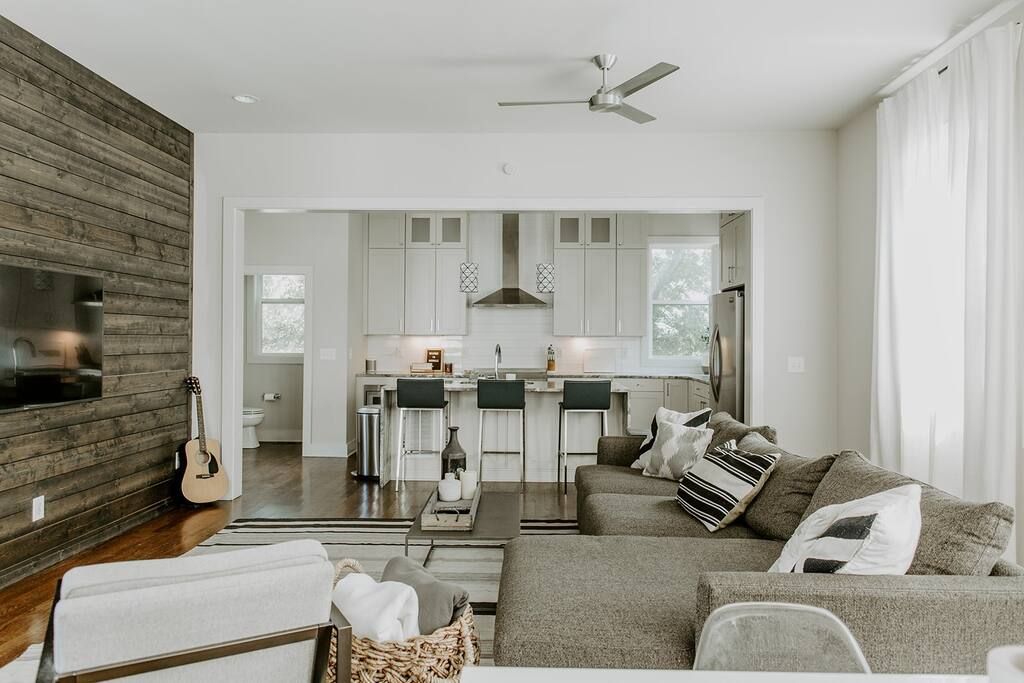 Connect with the musical spirit of Nashville with a stay in this home. Located between 12th South and Edgewood, you can stroll to fantastic restaurants, bars and stores. Iconic spots like Broadway are just a short drive away and you’ll find private parking is available on the drive. And when it comes to relaxation, this home welcomes you to enjoy magical sunset drinks on the rooftop patio. There’s a cosy seating area with a TV for movies under the stars and a ping pong table for family fun. Inside, the rooms set the tone for a laidback stay with all of the bedrooms featuring en-suite bathrooms.