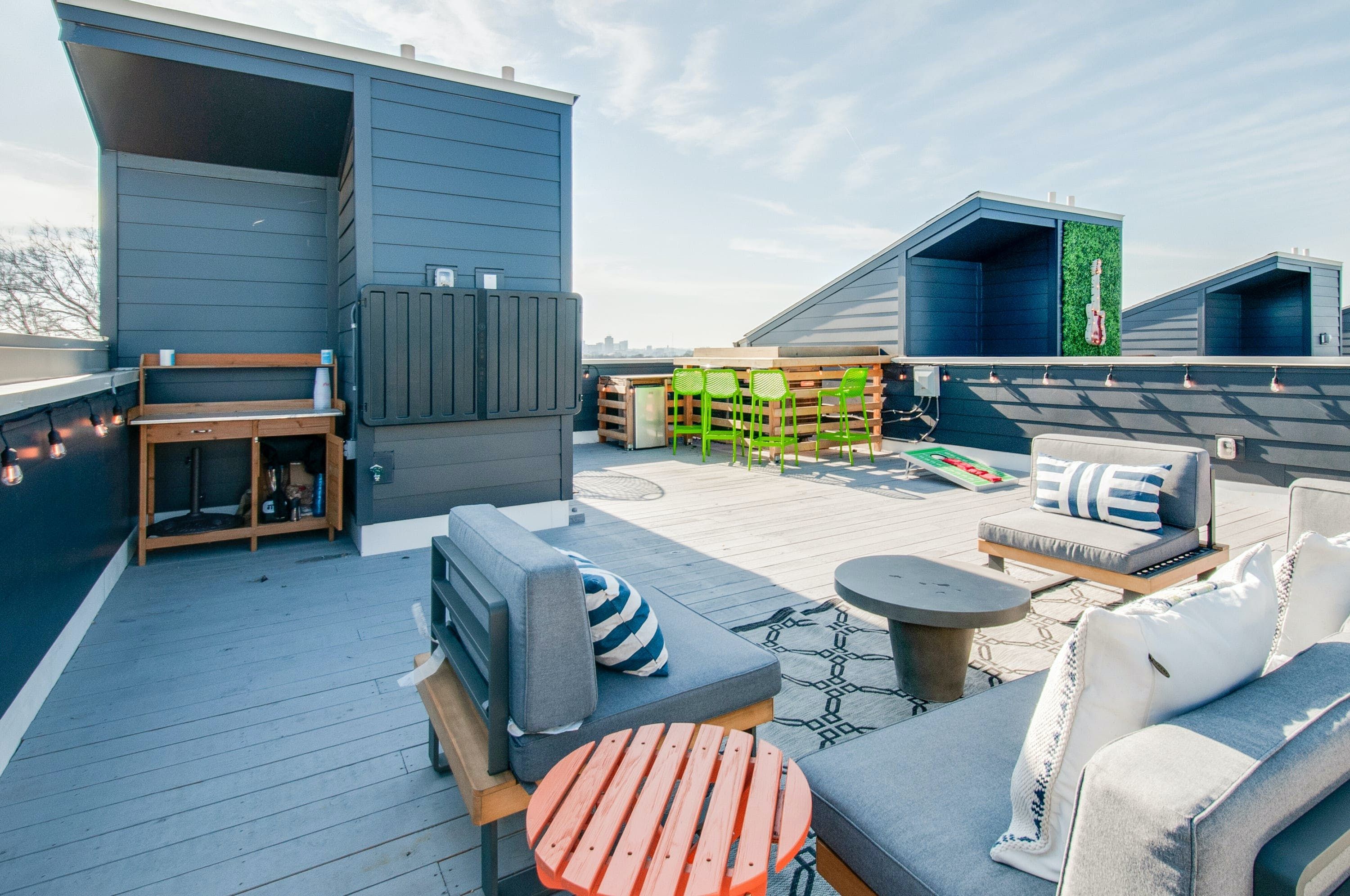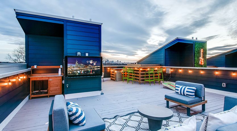 A stay in this home promises to bring you a healthy dose of fun. There’s an expansive rooftop deck with incredible skyline views and a bar for magical sunset drinks. Inside, you’ll have a games room for friendly competition and plenty of socialising space. Plus, all of the bedrooms come with en-suite bathrooms for optimum privacy. It’s also in the perfect spot to experience the best of Nashville. From here, it’s just four miles to Downtown where you’ll find iconic landmarks, while restaurants, coffee shops and stores can all be found within easy reach.