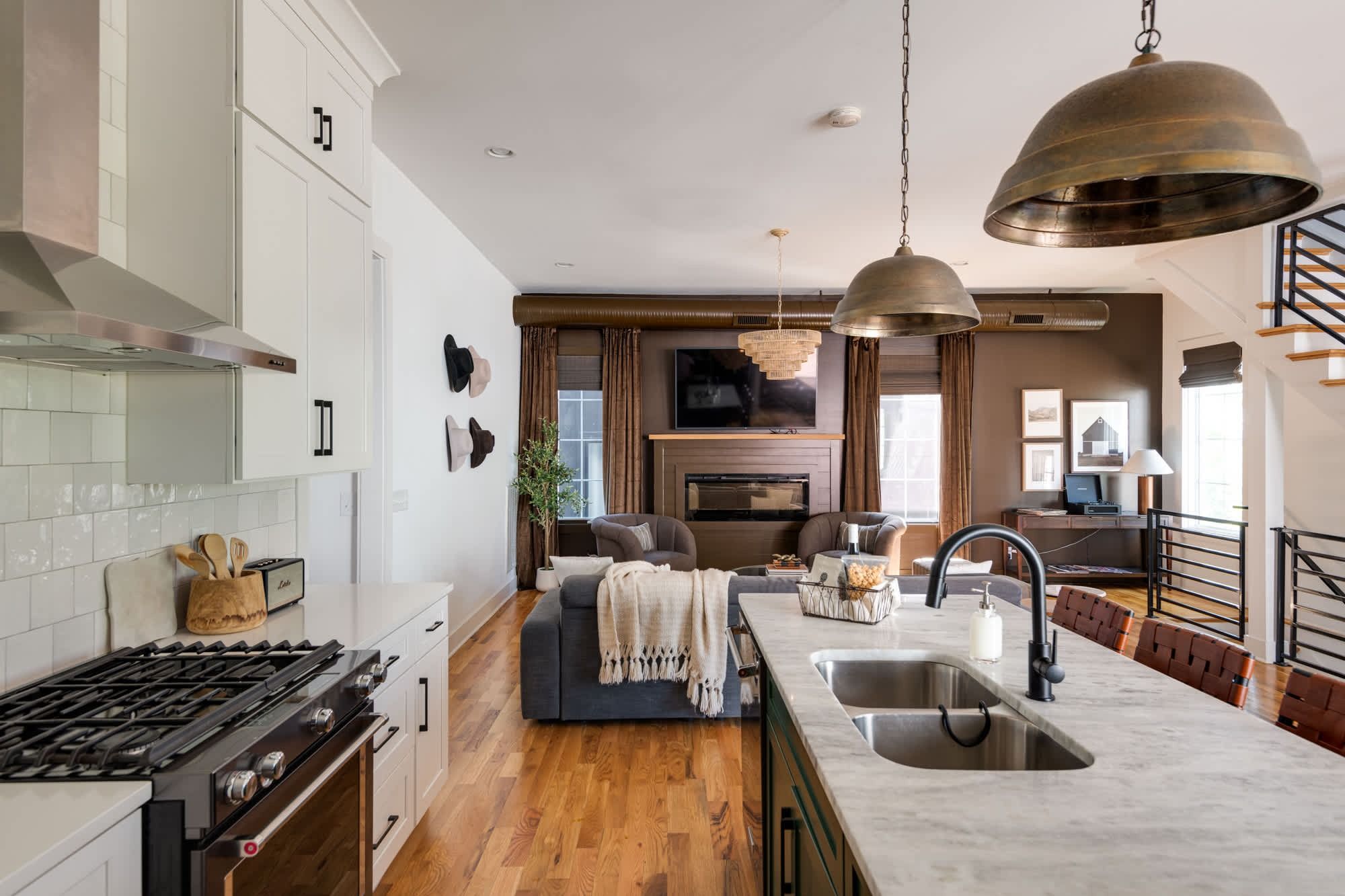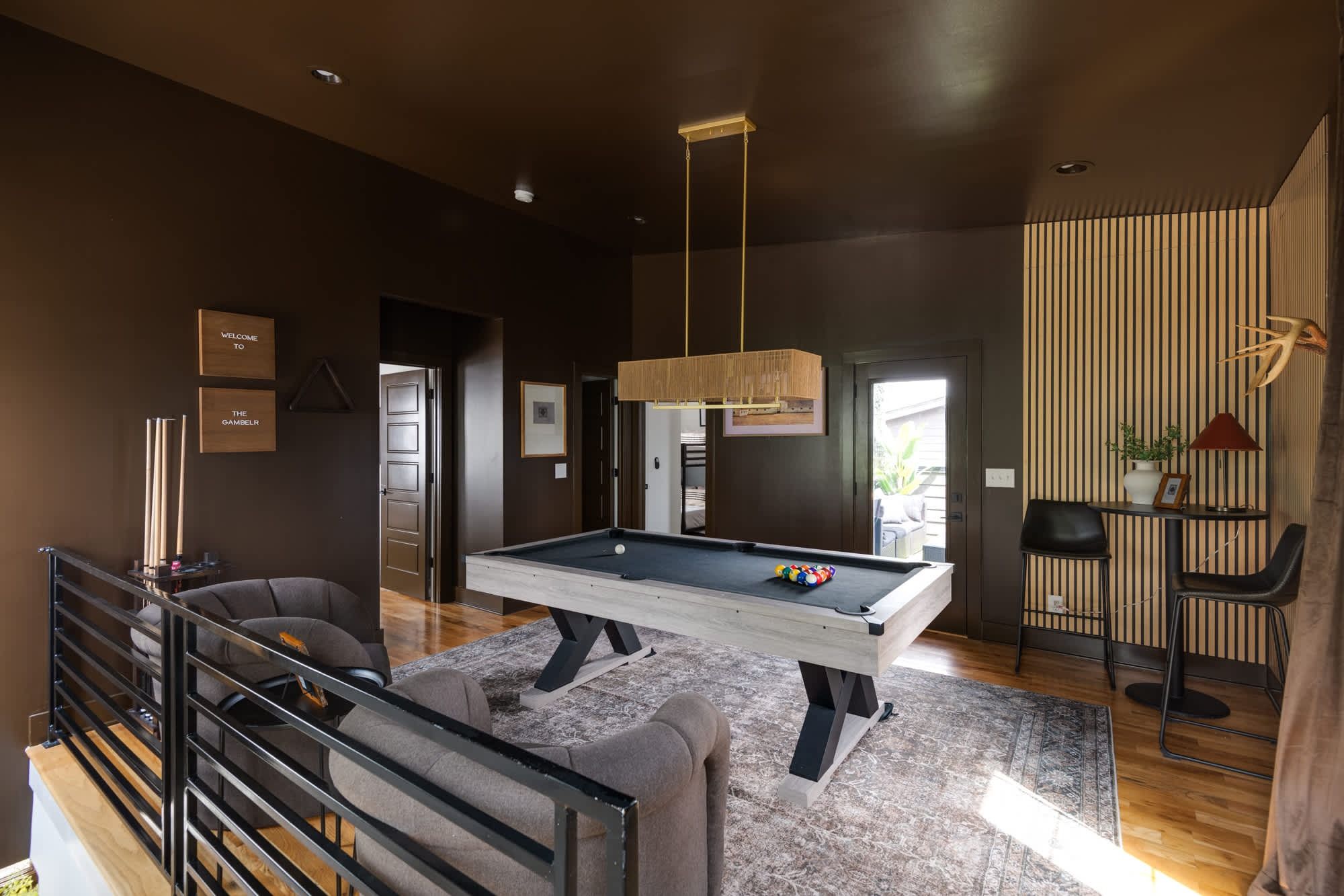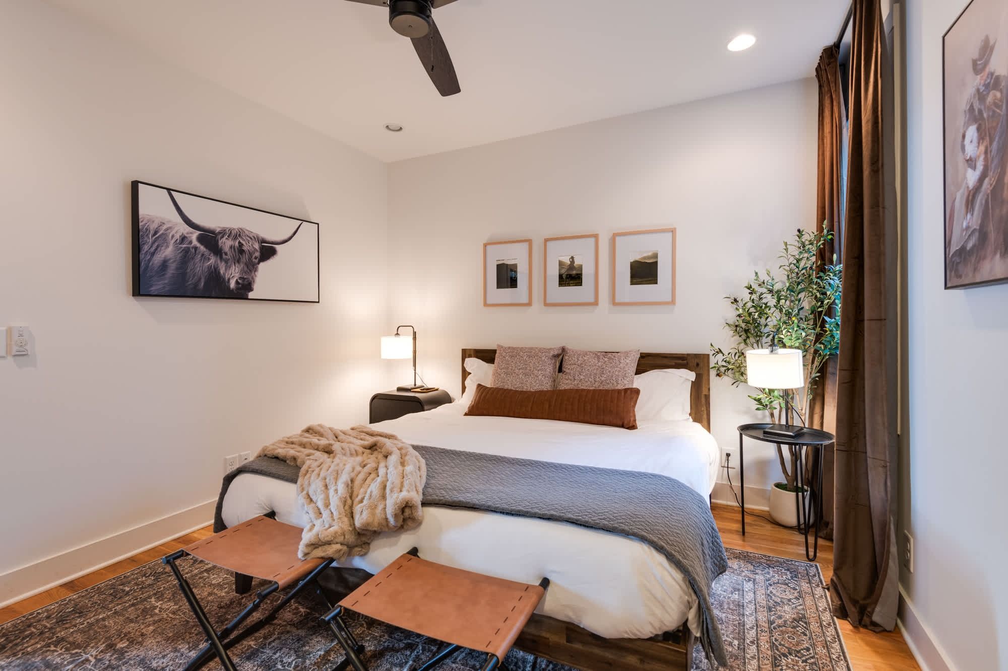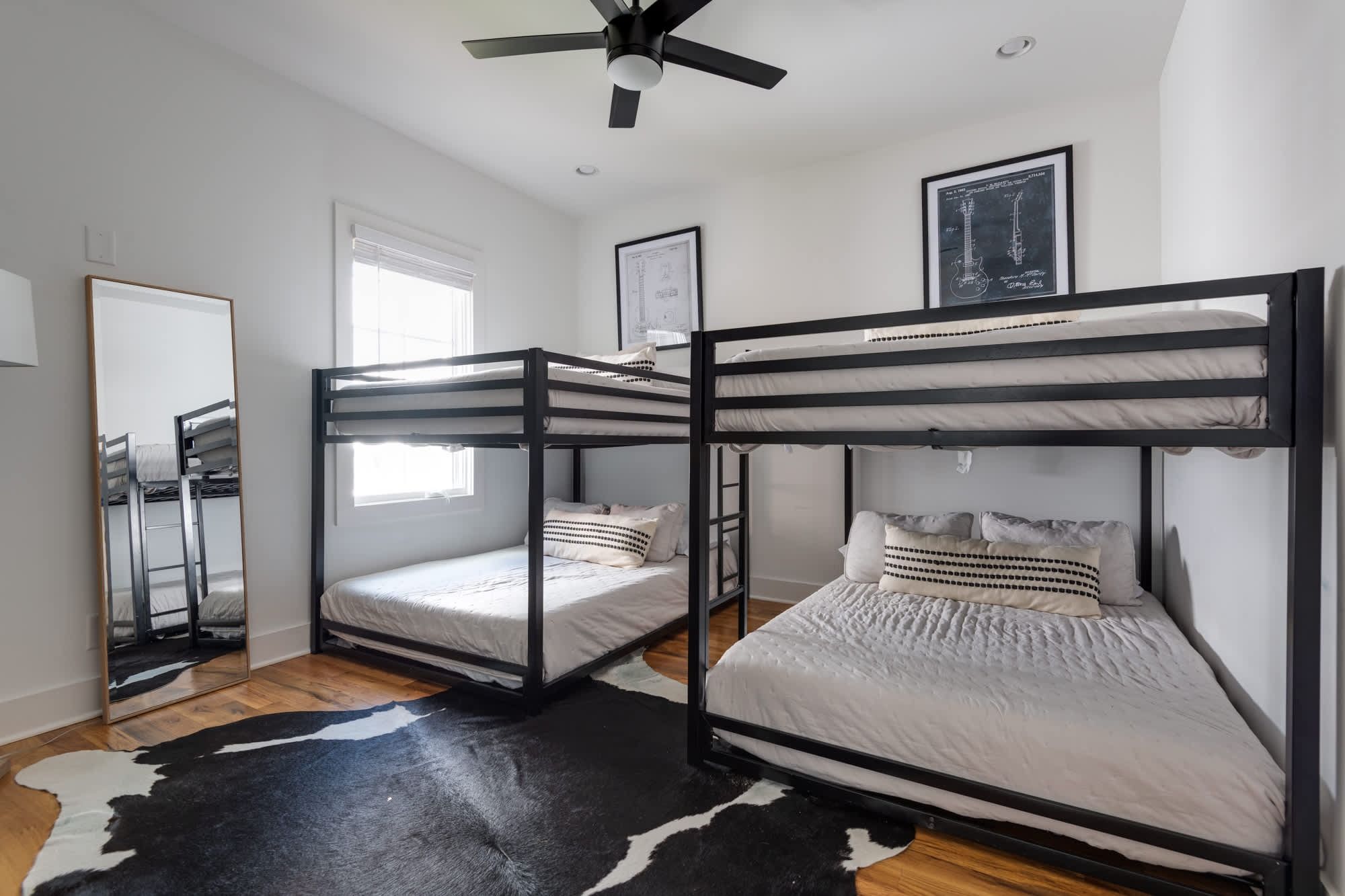 This Nashville home has got a big group getaway written all over it. Spanning three floors and tailored for socialising, you’ll love the free-flowing living and dining areas. And the cherry on top? A fire pit on a private terrace and a pool table area inside to keep the night flowing. While the bedroom set-up offers flexibility, it’s worth noting that four guests will be sharing double bunk beds, while two more will share a pull-out trundle bed. Great for kids and teens, but maybe not everyone’s dream. Still, for a spot this central, it feels like a fair tradeoff. The buzzy neighbourhoods of Edgehill and 12th South are both just a short stroll away.