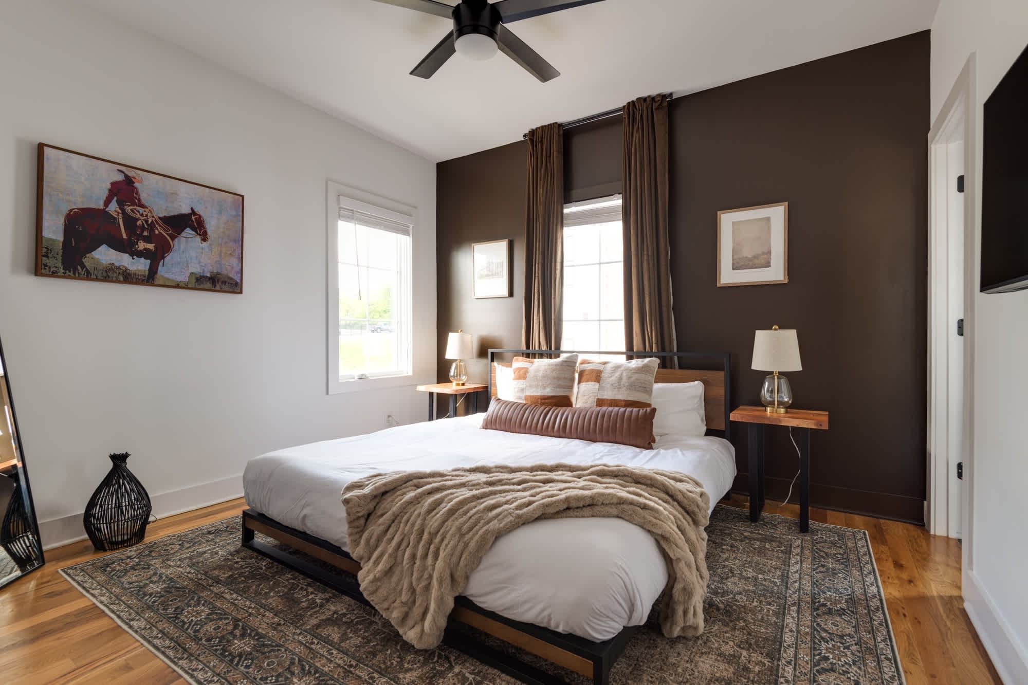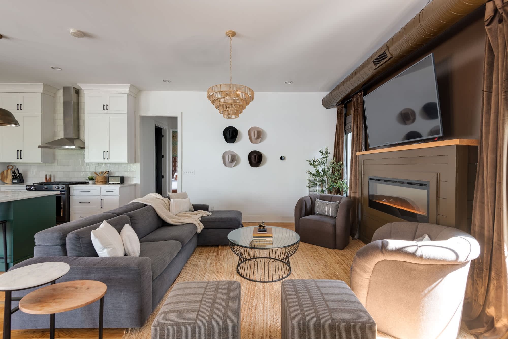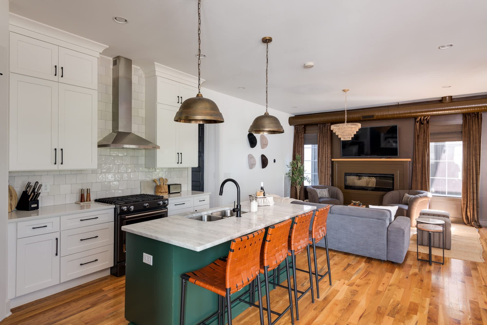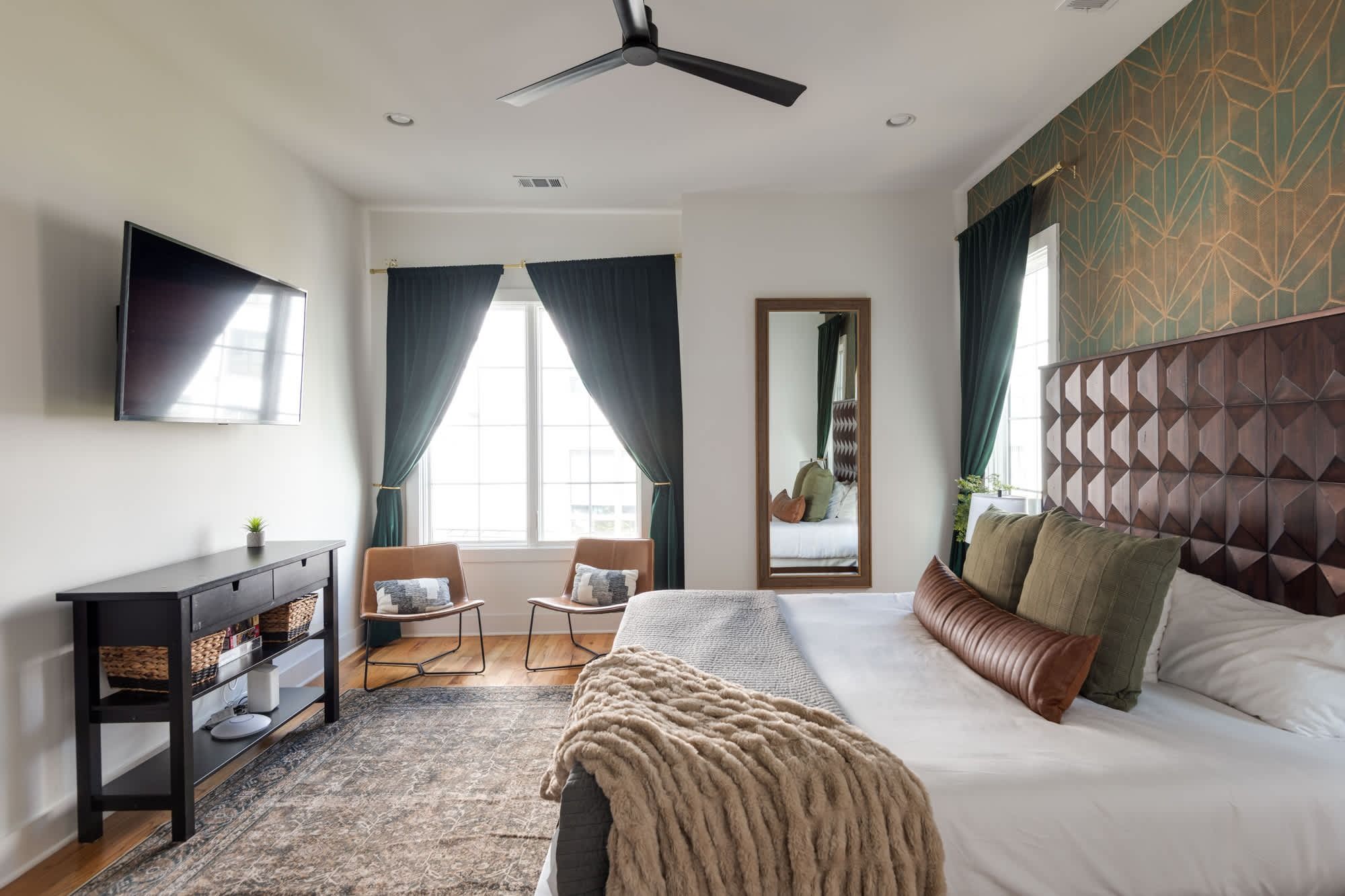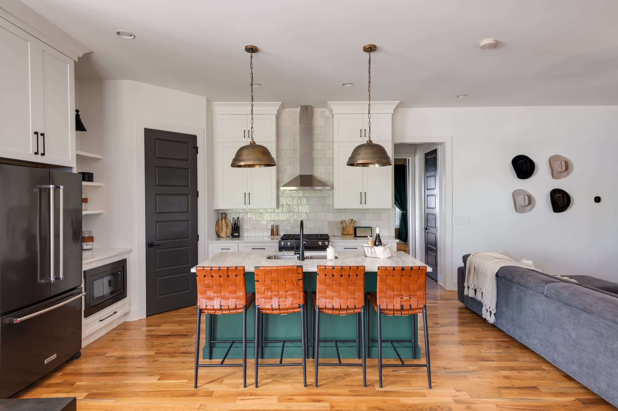 This Nashville home has got a big group getaway written all over it. Spanning three floors and tailored for socialising, you’ll love the free-flowing living and dining areas. And the cherry on top? A fire pit on a private terrace and a pool table area inside to keep the night flowing. While the bedroom set-up offers flexibility, it’s worth noting that four guests will be sharing double bunk beds, while two more will share a pull-out trundle bed. Great for kids and teens, but maybe not everyone’s dream. Still, for a spot this central, it feels like a fair tradeoff. The buzzy neighbourhoods of Edgehill and 12th South are both just a short stroll away.