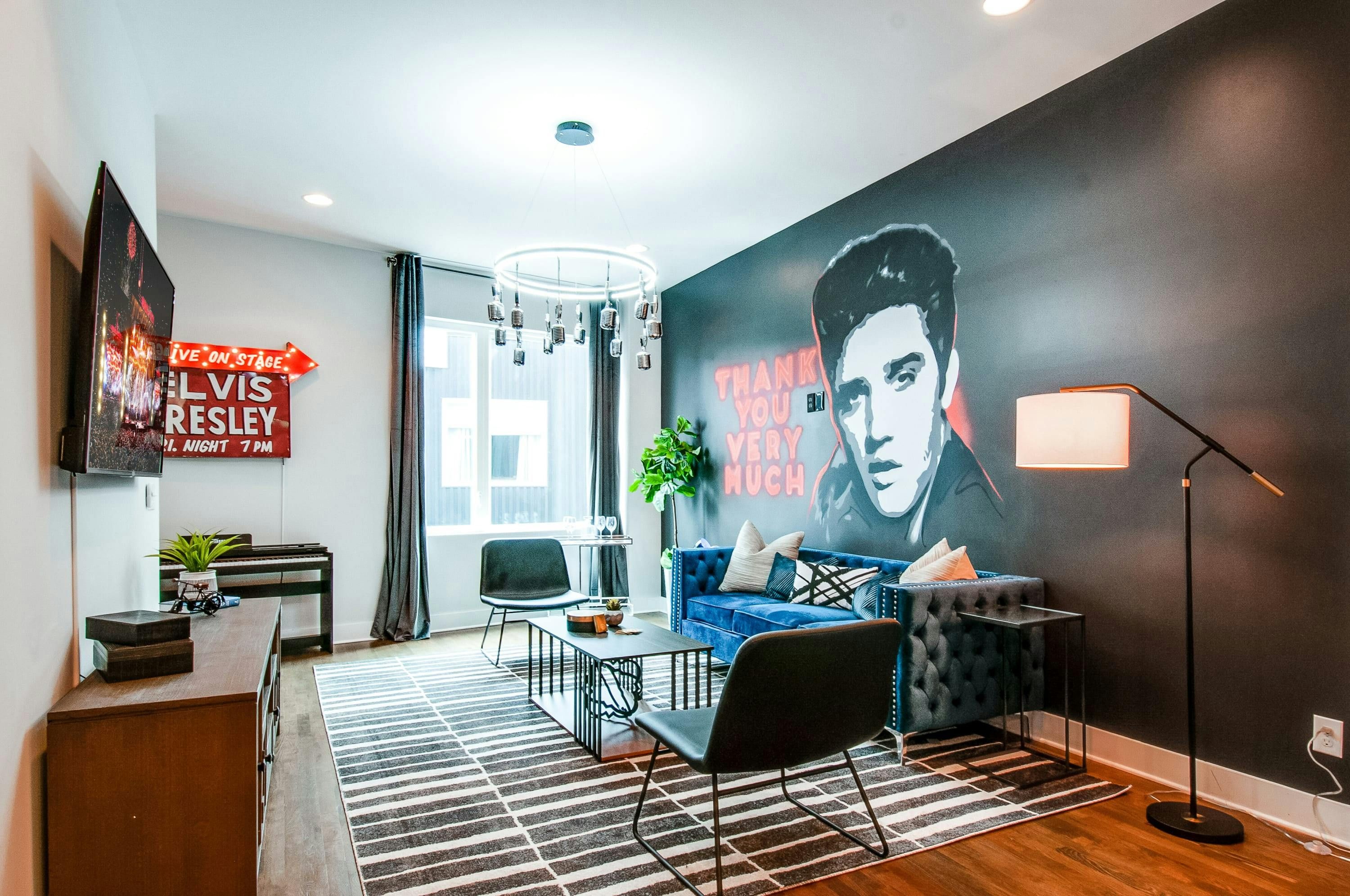 Enter an oasis rich with musical allure. Situated close to the heart of Nashville, this unique dwelling offers a symphony of features. Its crowning glory, a rooftop offering spectacular city vistas, serves as the perfect spot to serenade sunsets. Accommodating up to 26 guests across numerous snug beds offers an enchanting retreat that both large groups and families will appreciate. Enjoy the melodious call of Nashville from your very own karaoke room - a fun addition that sets this property apart. Excellent amenities harmonize with your needs, providing convenience and comfort during your stay. Managed by Misfit Homes, they ensure well-tuned communication around the clock for guests, ensuring a smooth and resonant experience. This is Nashville living amplified - visual echoes of Music City await!