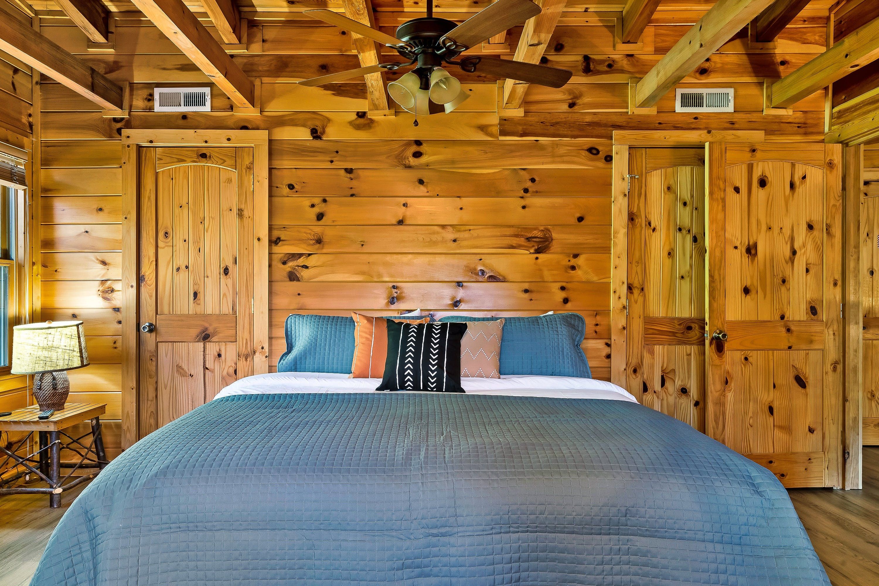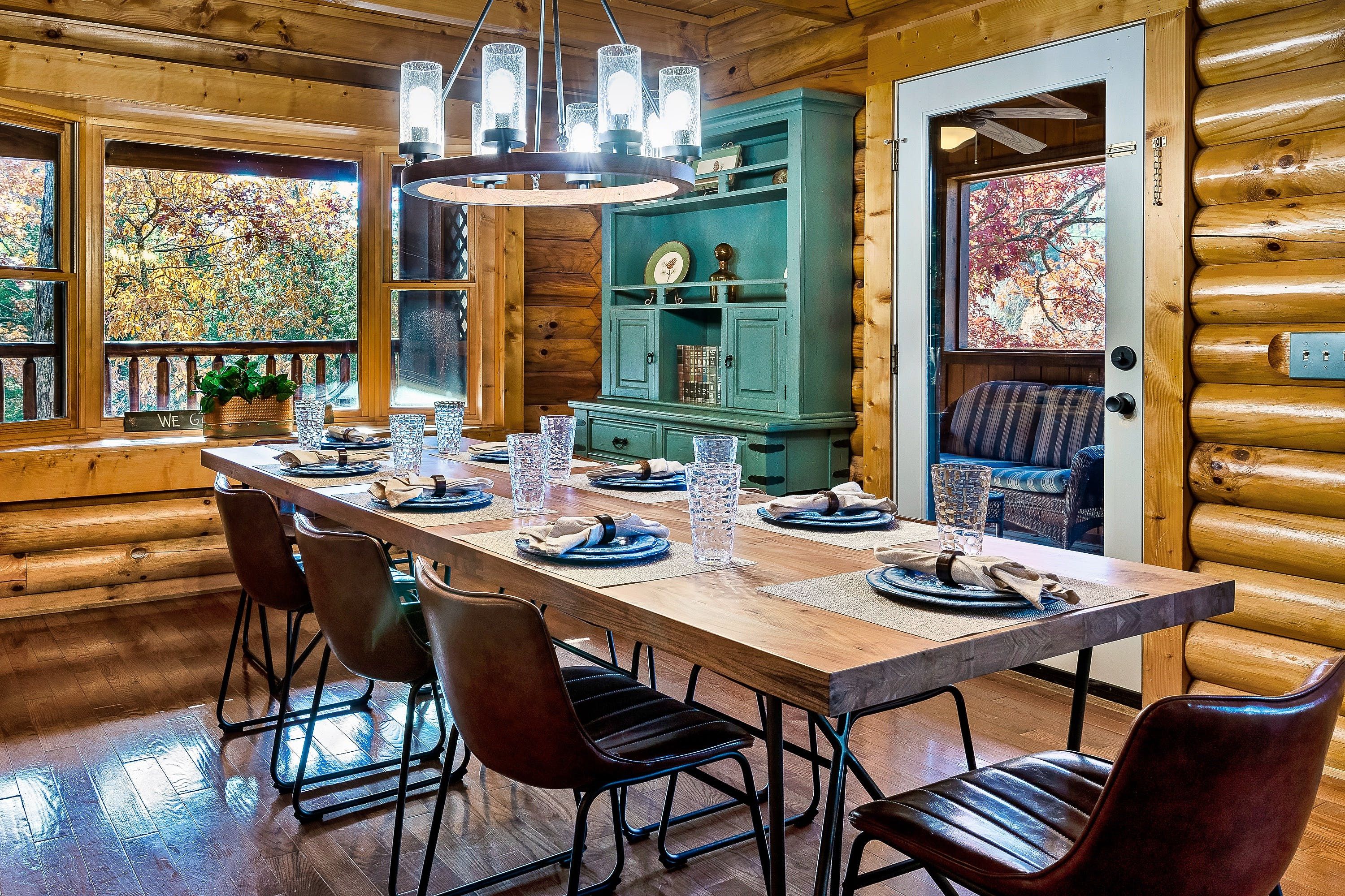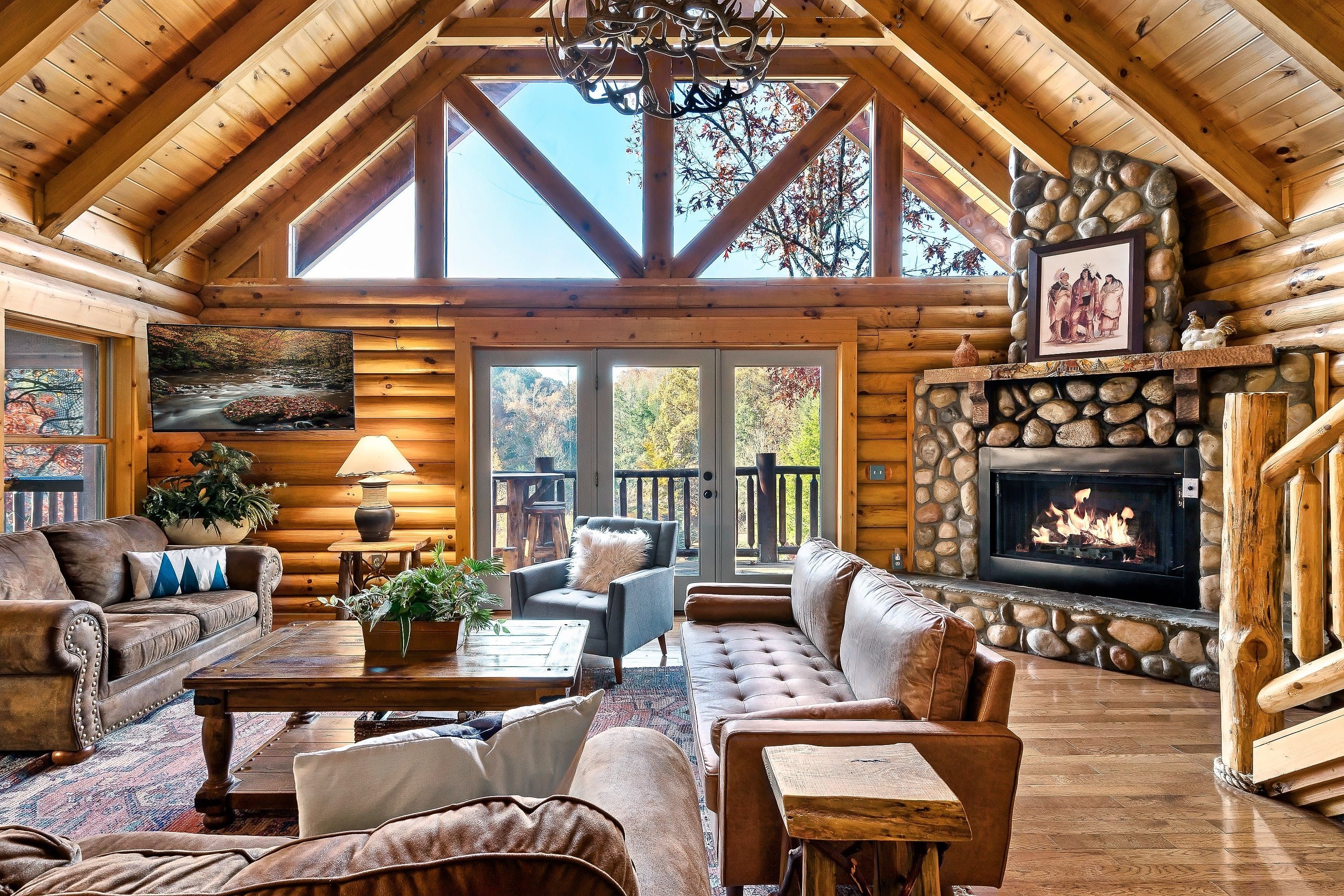 Tucked away in the idyllic Great Smoky Mountains, a fifteen-minute drive from Pigeon Forge, this cabin is ideal for family getaways. Holidaymakers who take a more active approach will love the private pool, games room and communal basketball court and playground. If you enjoy things a little more laid-back, cue the private cinema, hot tub and communal fire pit. The home is spacious and cosy, and the outdoor area has beautiful mountain views. It's worth noting kids will need supervision around the balcony railings and stairs. Location-wise Dollywood Theme Park is twenty-five minutes away. There are also several hiking trails nearby and the closest shop is a seven-minute drive.