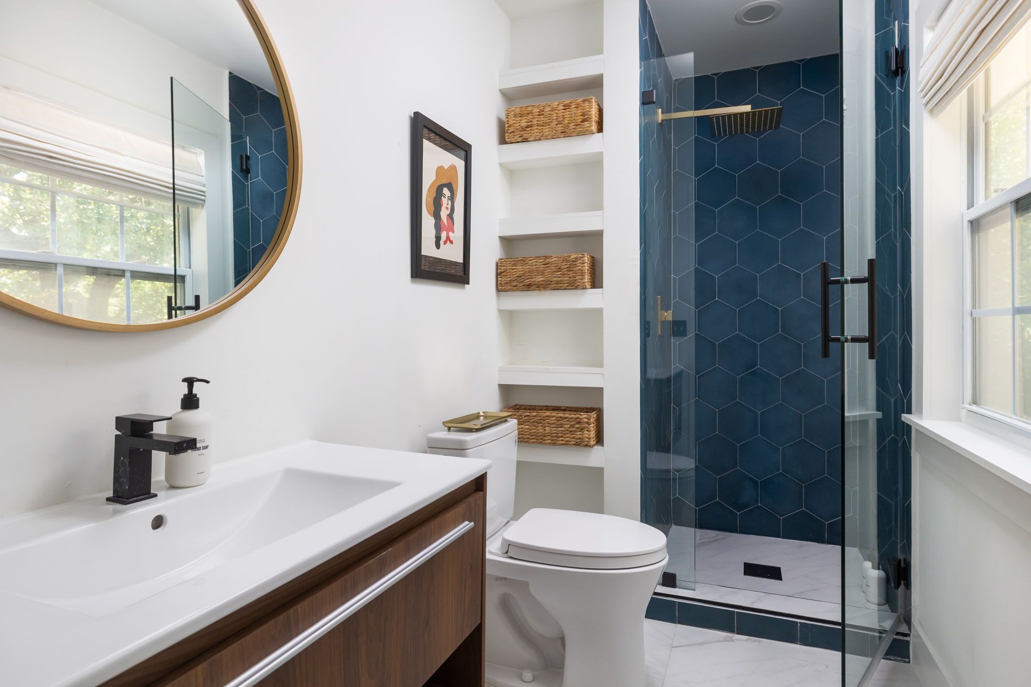 *There's only one shower here, and it's en-suite to the main bedroom. The second bathroom has a tub with a handheld shower – it's great for long soaks, but not so much for showering.