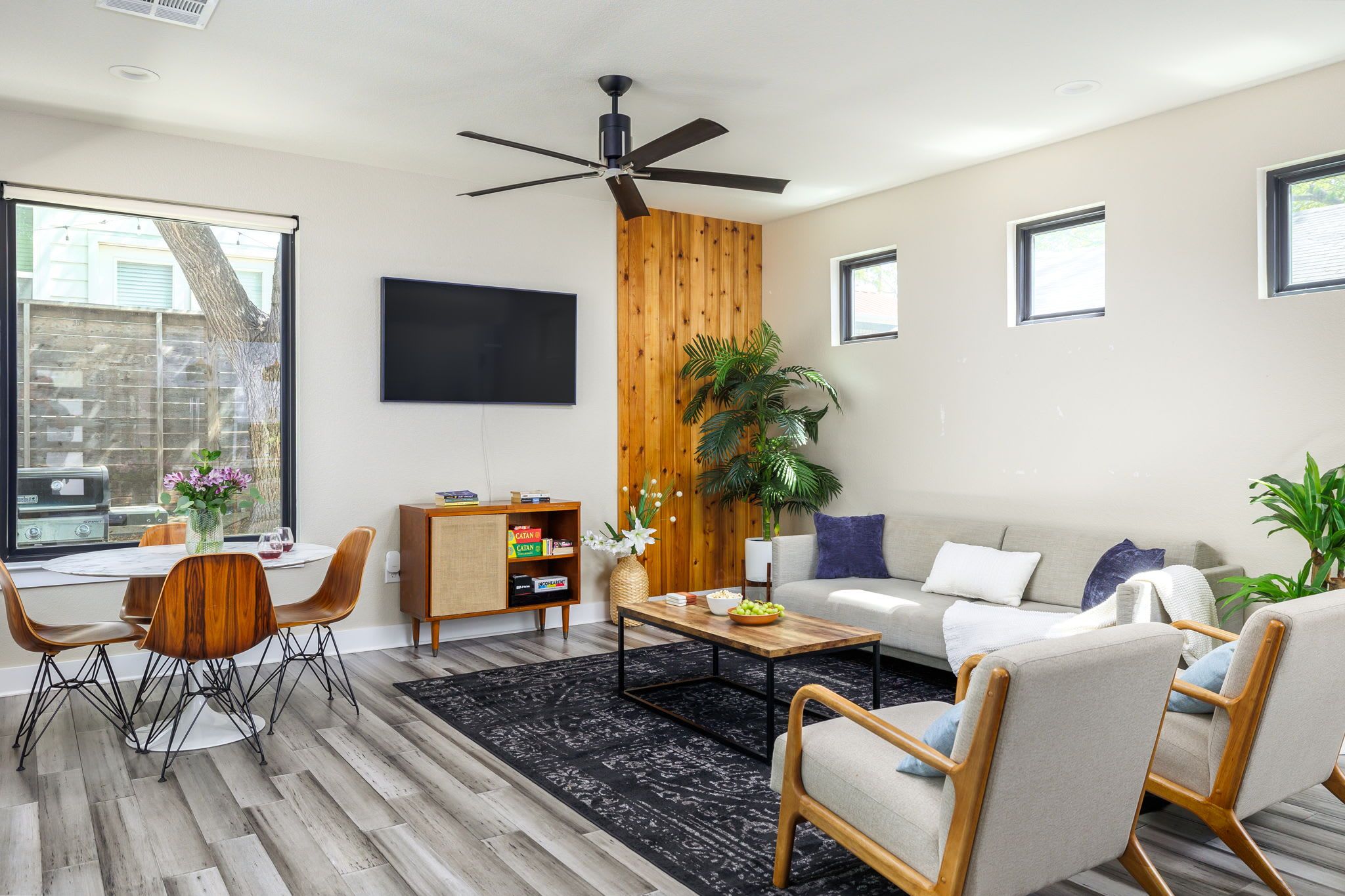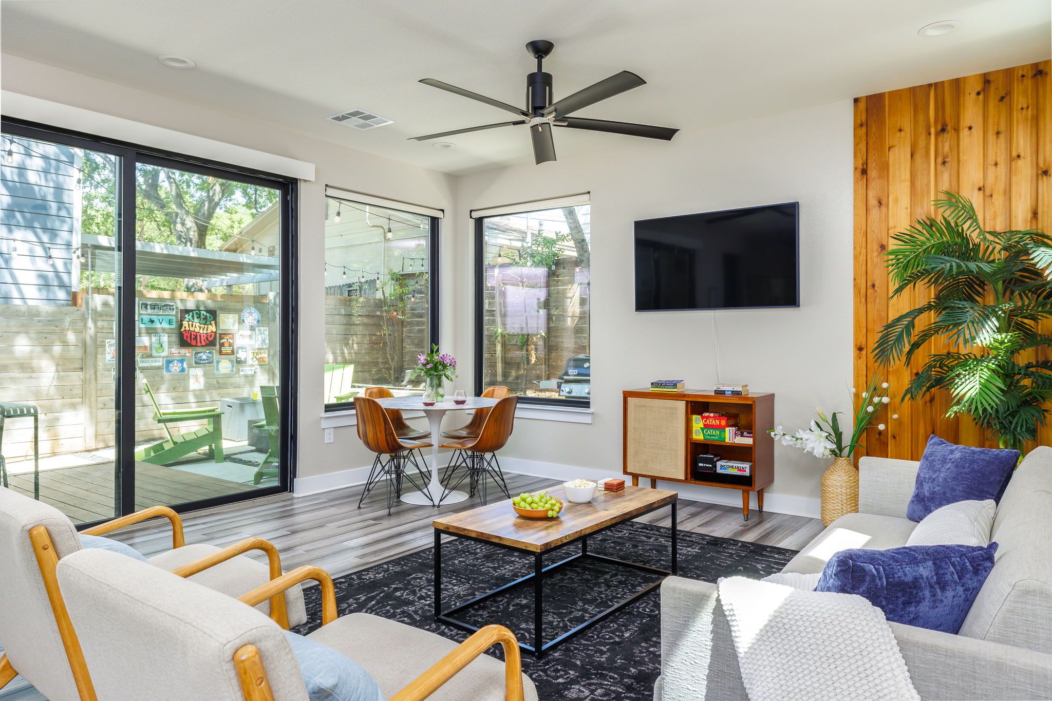 Whether you’re craving a fun-filled stay or a slow-paced city break, this home makes it easy to enjoy it all. Nestled in the vibrant heart of East Austin, you can wander to local restaurants, bars and shops. It’s just a mile to Downtown and some of the city’s best music venues are within easy reach. You don’t need a car to get around in this location and it’s easy to rent scooters and bikes. And when it comes to relaxation, head to the private yard for drinks by the fire-pit. There’s plenty of socialising space inside and you’ll have a private gym for workouts as well as two offices if you need to catch up on work.