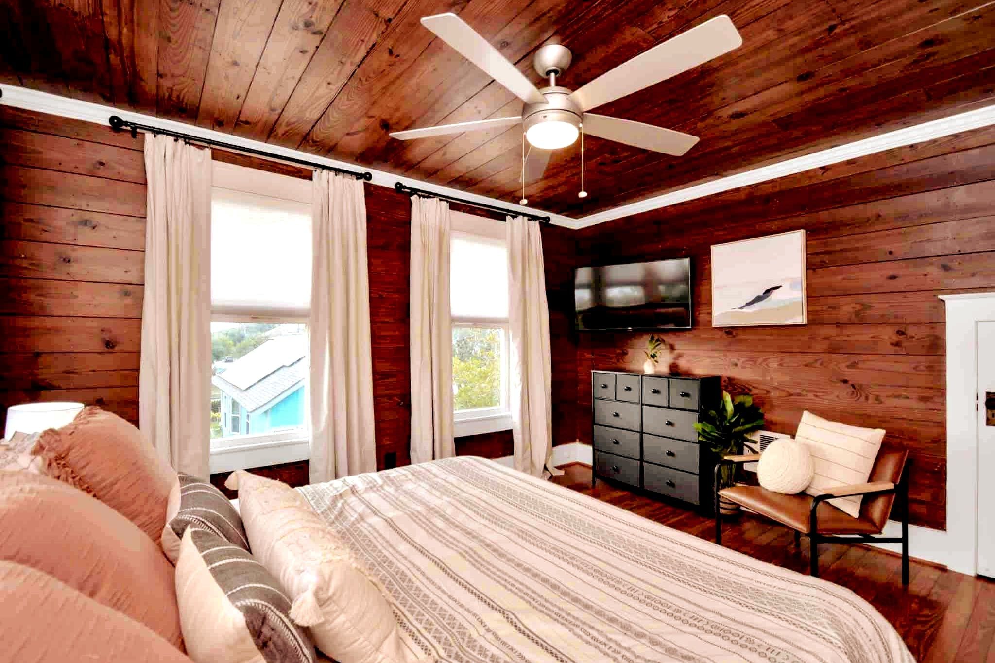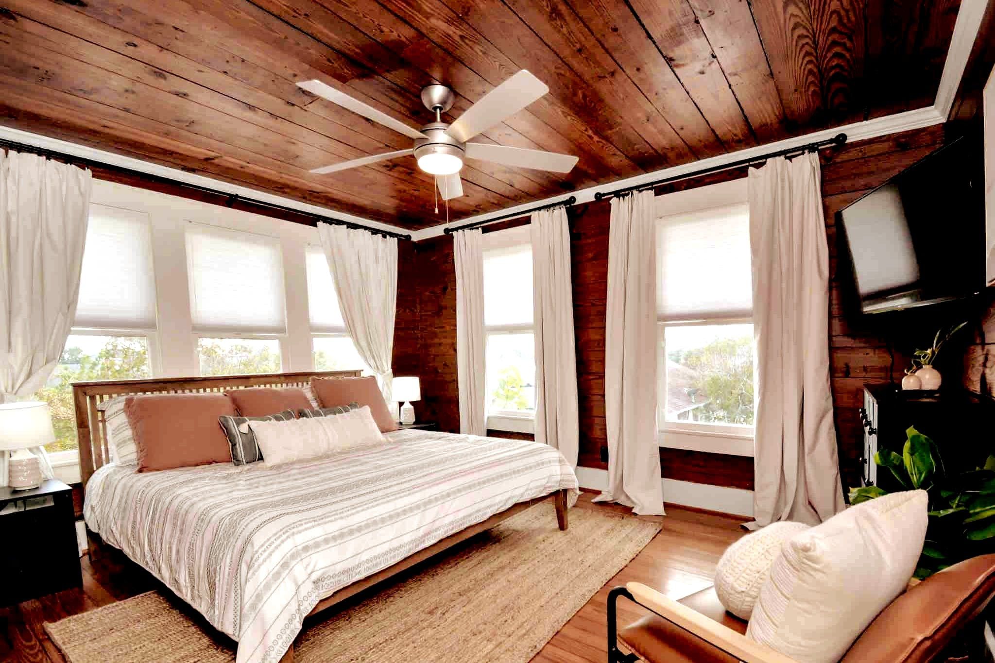 Like to be beside the seaside? Look no further than this Texan home. Located in Galveston, you’ll be within a five-minute walk of the beach and its famous Pleasure Pier. There’s plenty of space to spread out and relax, though one of the bedrooms sleeps six people in total which will appeal to a group of kids who want to feel like they’re having a sleepover each night. Recently restored, plenty of historic details remain around the home, but you’ll have all of the modern amenities you could wish for, like a stylish American kitchen.