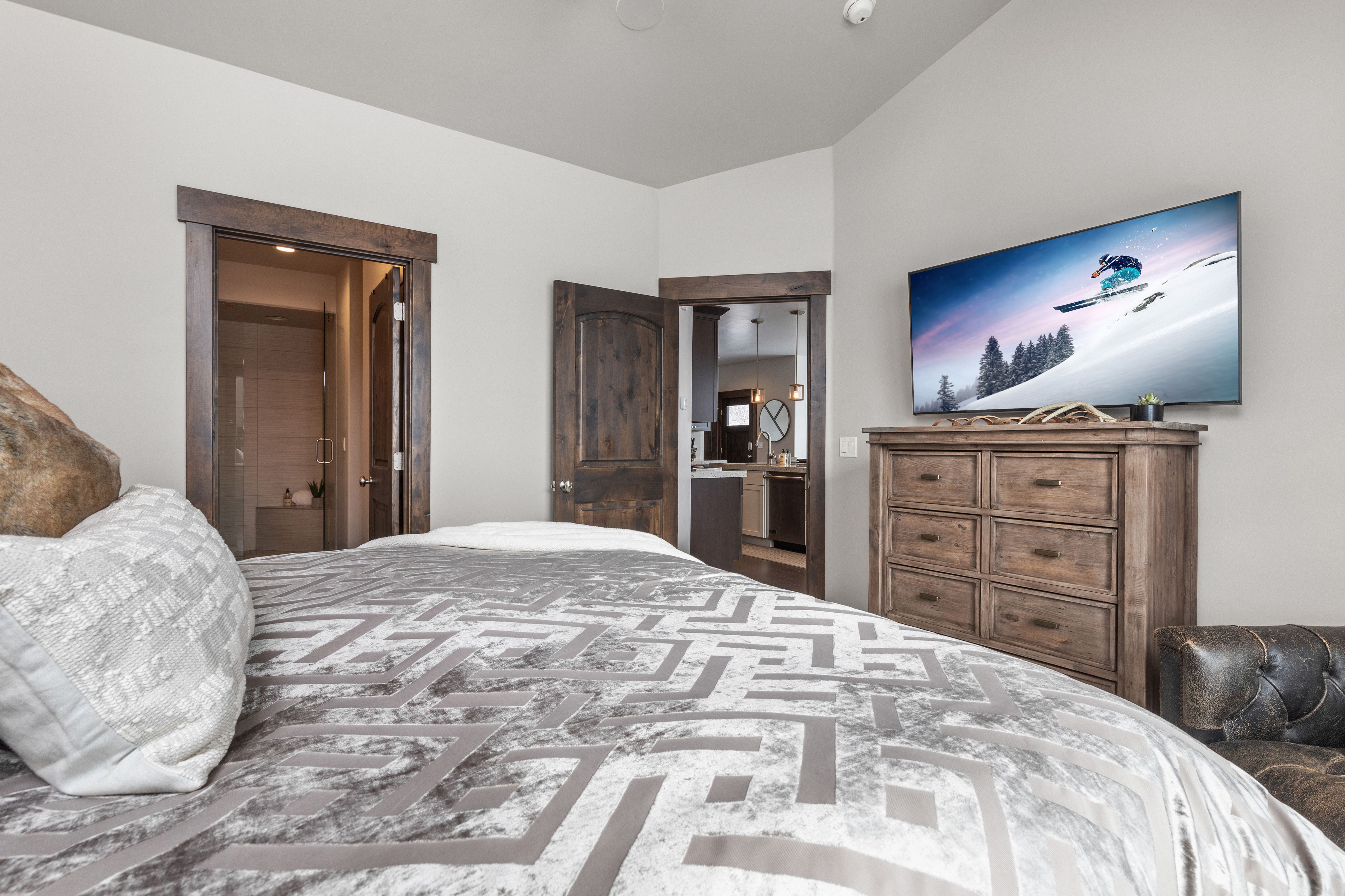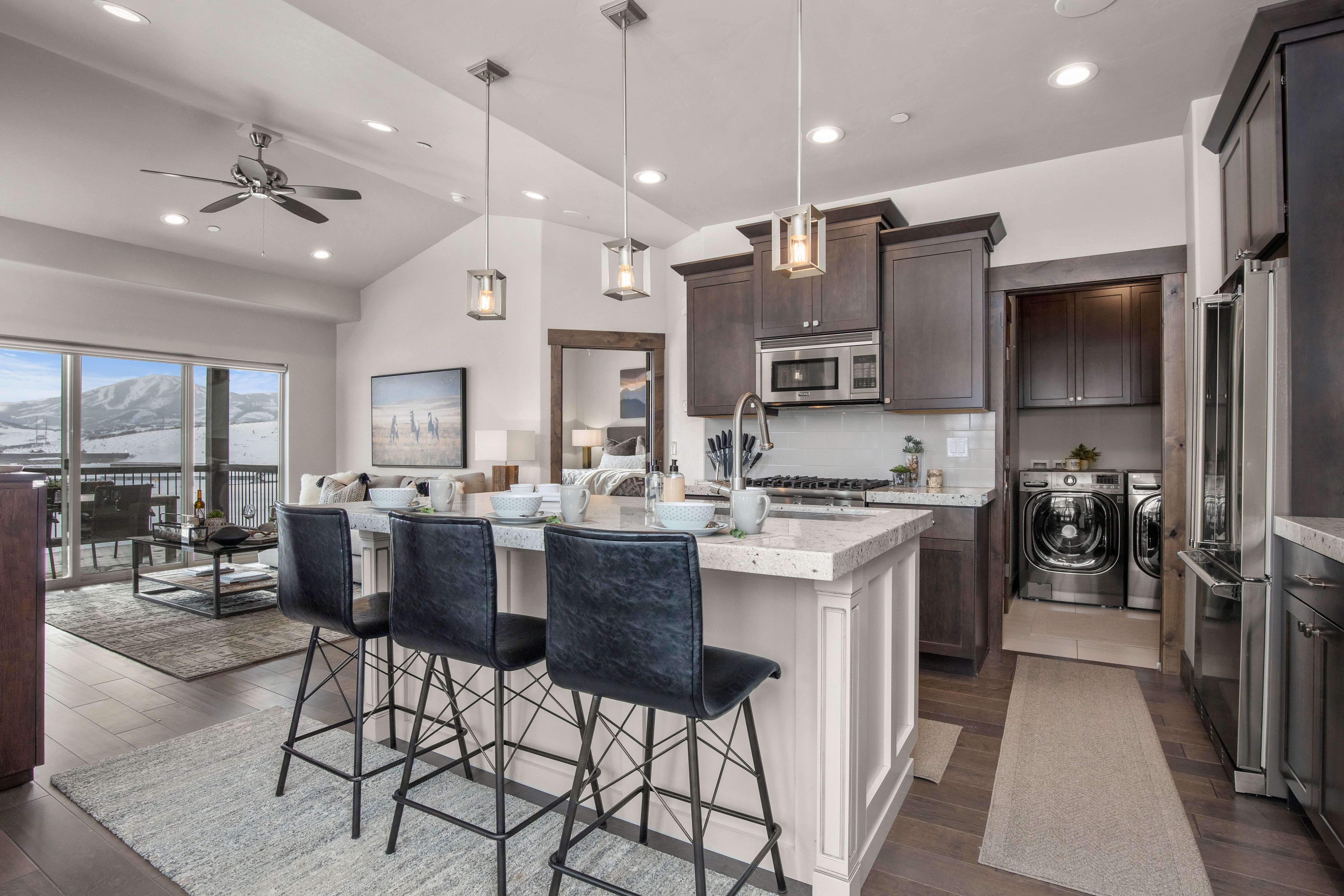 Step inside this home and you’ll be treated to beautiful mountain views. Outside, there’s a deck with a hot tub for optimum relaxation. You can get cosy by the fire in the living room and there’s a bonus family room as well as a games room with a projector for movie nights. Plus, it’s the perfect base for a mountain adventure with Main Street and the Jordanelle Reservoir just a ten-minute drive away. You’ll also be spoiled for choice when it comes to world-classing skiing, hiking and cycle trails.