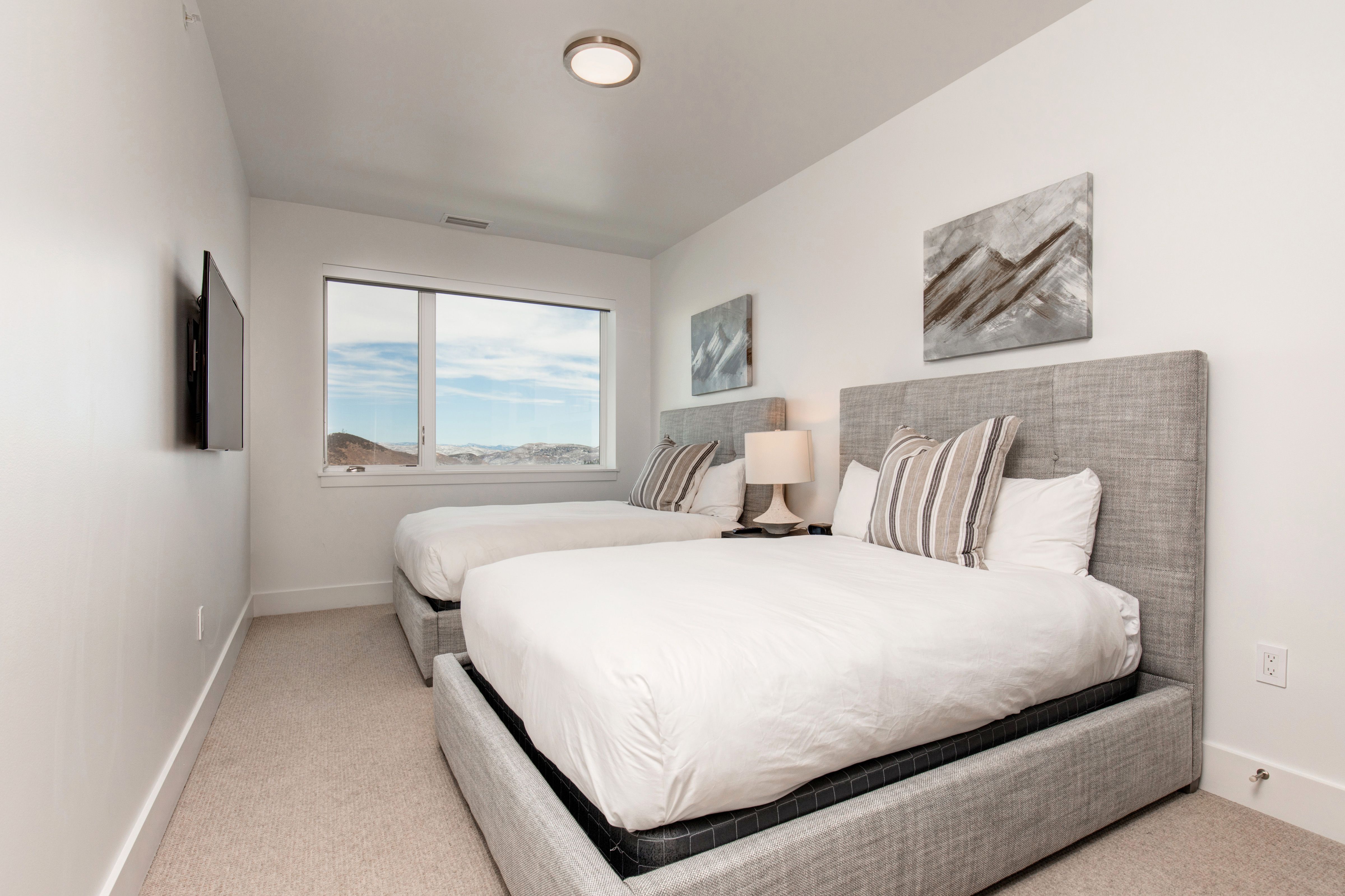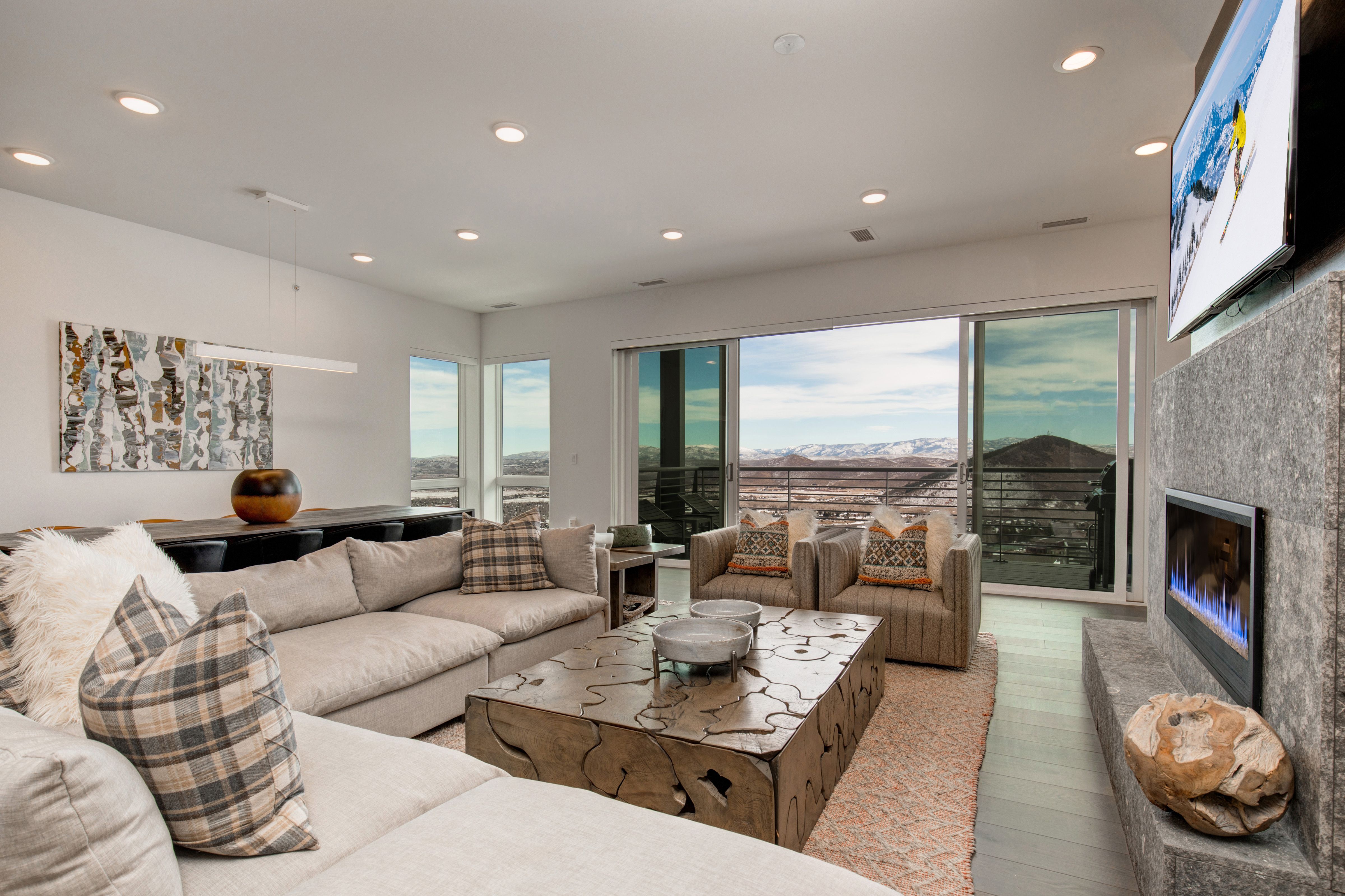 Looking for easy access to Park City's slopes? This condo fits the bill. It's just a five-minute walk (or an even quicker ski) to Canyon Village, where you'll find shops, restaurants, and lifts up the mountain. Back home, the balcony offers views across the snow-dusted peaks. You'll also be able to enjoy the panoramas indoors – the perfect backdrop while enjoying a mug of cocoa in front of the fire. Topping it all off is access to communal amenities, including a heated swimming pool, games room, and a fitness centre with a gym and sauna.