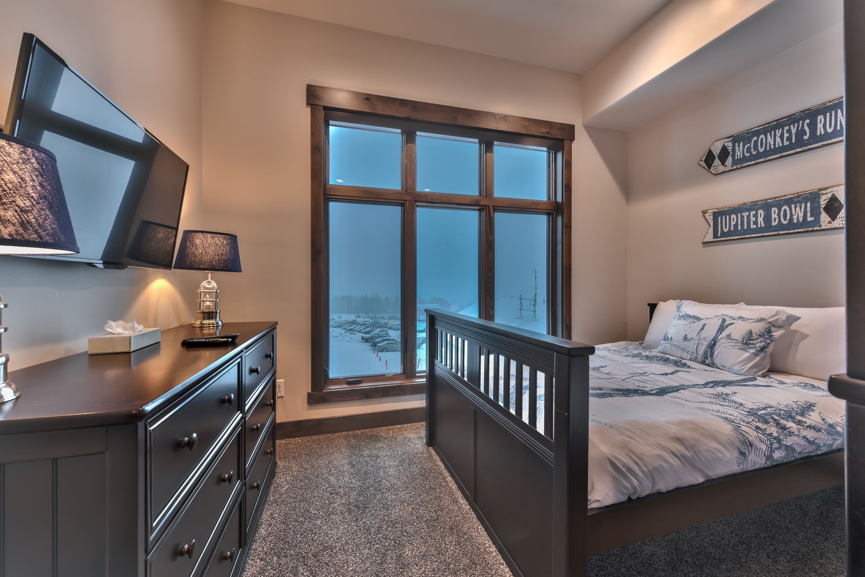 This contemporary apartment ticks all the boxes for a Park City stay. For starters, the location in Canyons Village is excellent. The Cabriolet ski lift is just a short walk away, so you won't have to venture far to hit the slopes. After your mountain adventure, unwind in the living space – we suggest turning on the fire to make it extra cosy. Kids will appreciate the bunk beds in the second bedroom, while grown-ups can enjoy some peace and quiet in the main bedroom. You'll also have access to a shared pool, hot tub, and gym, and a free shuttle is nearby for easy trips to Main Street.
