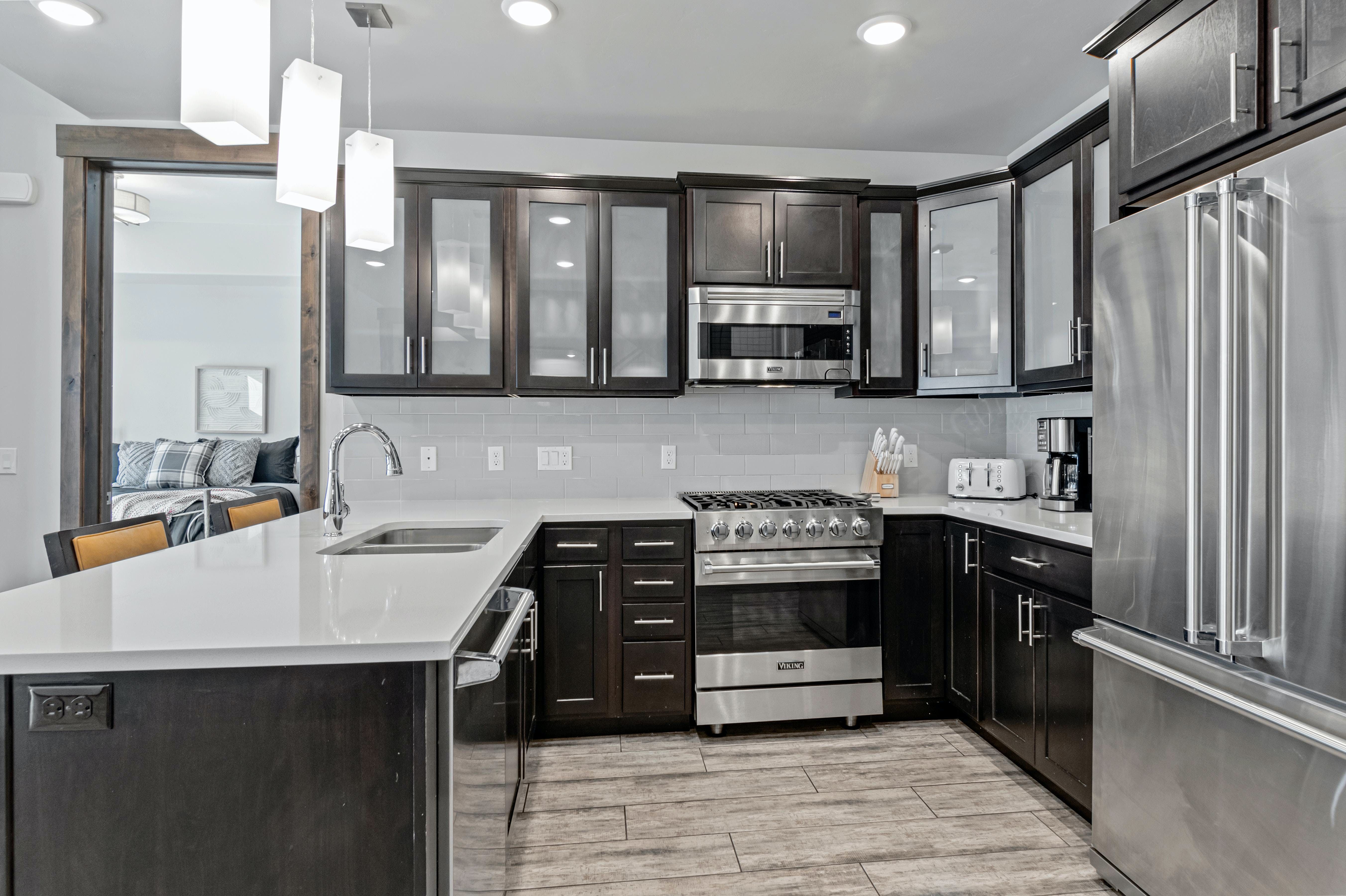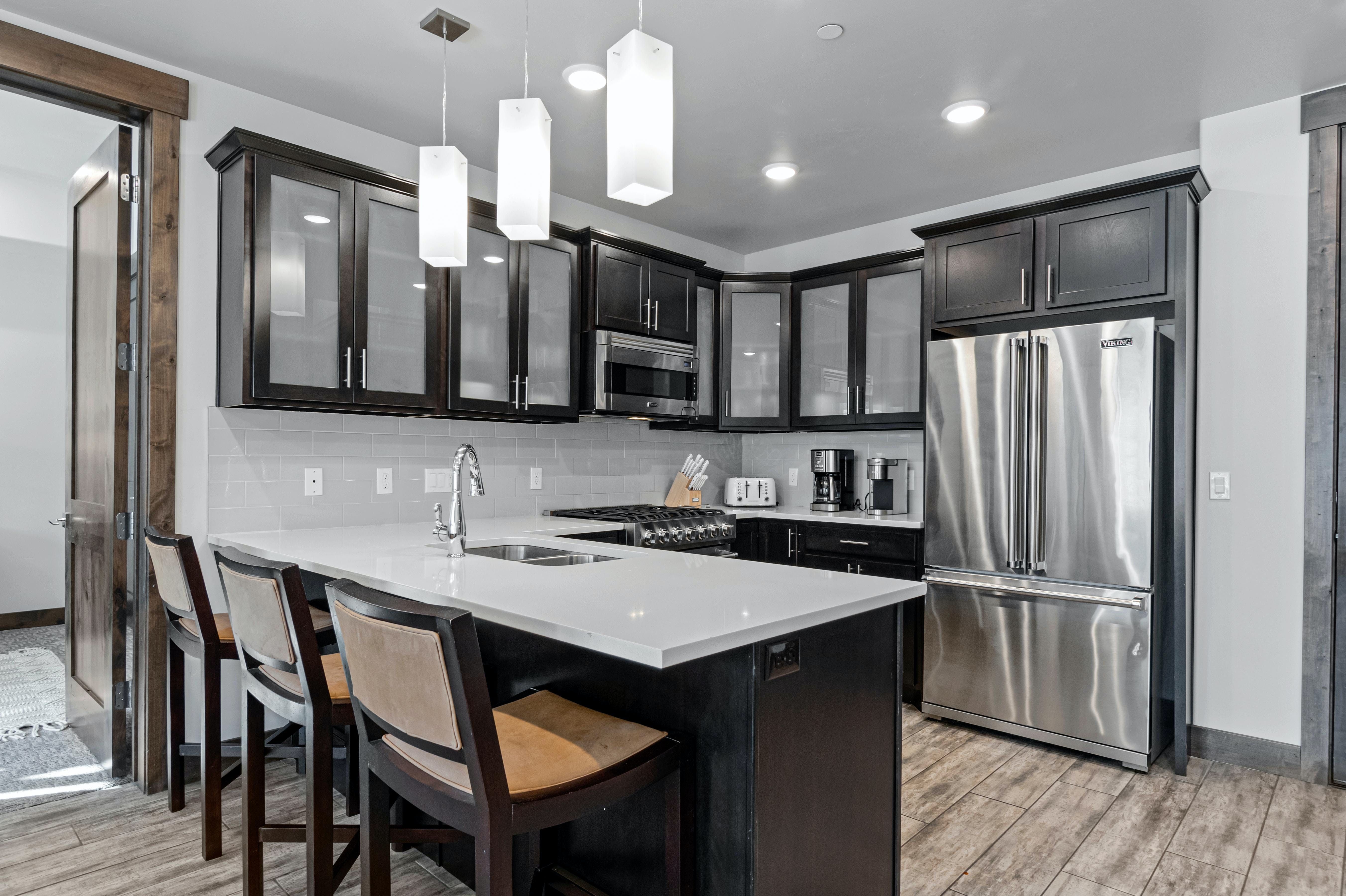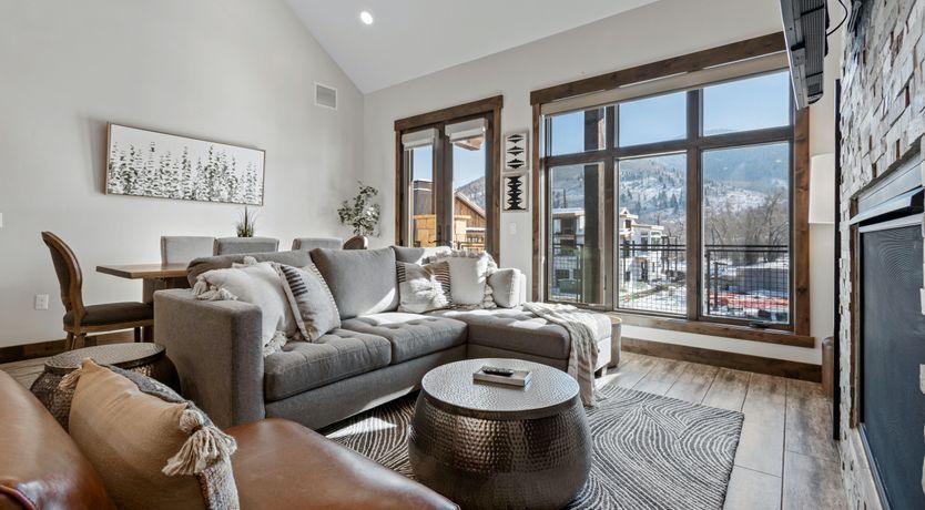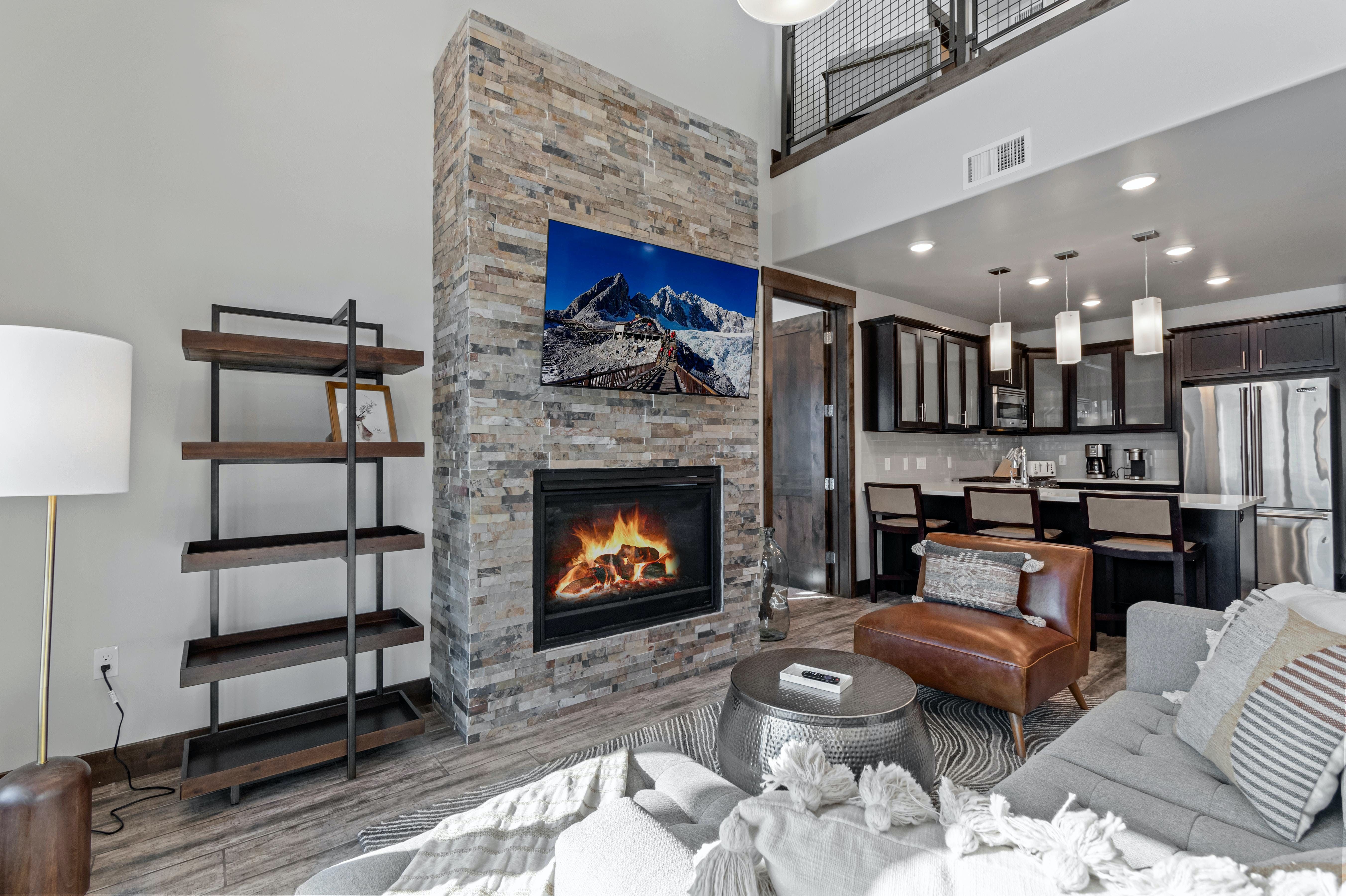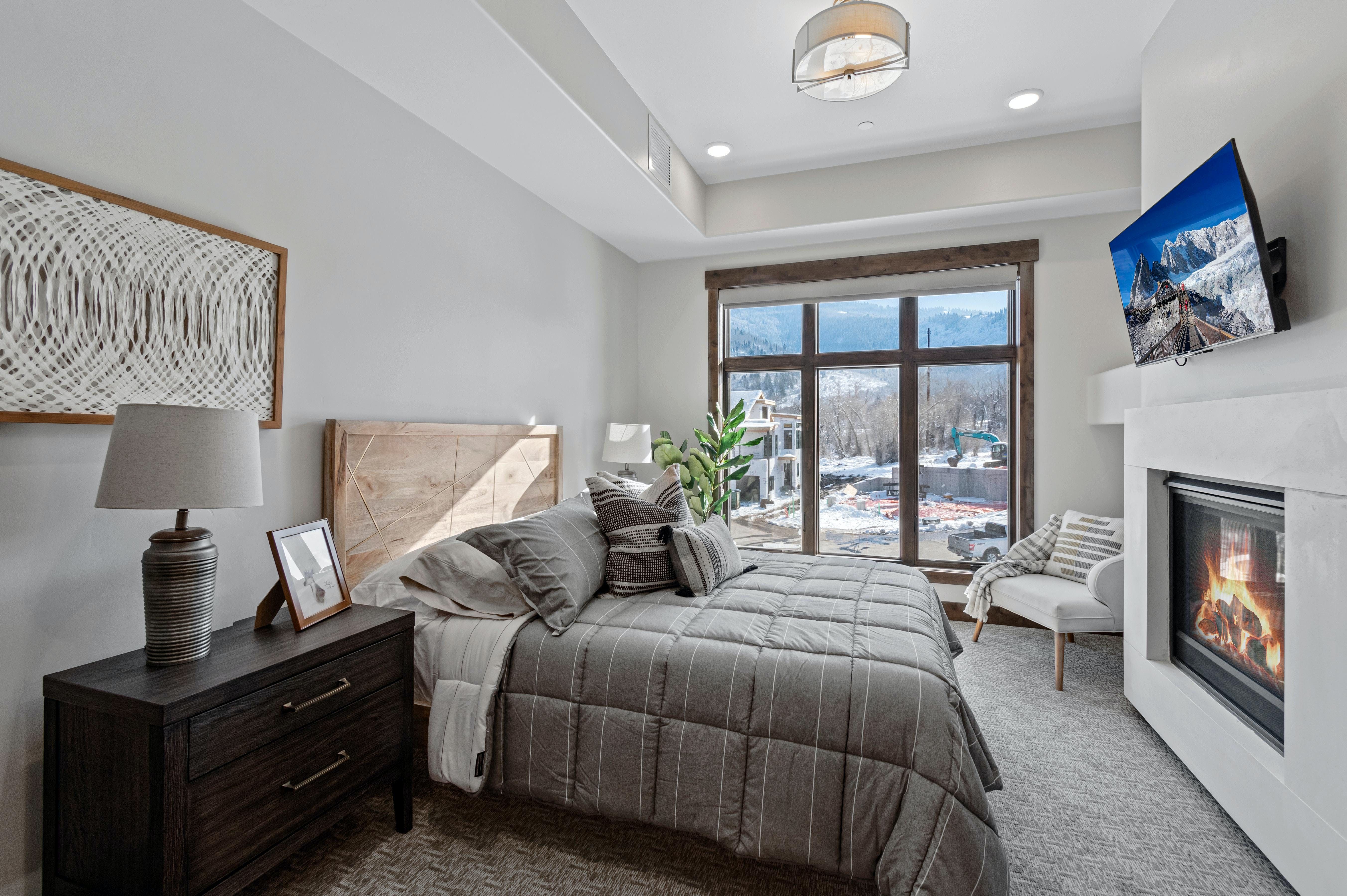 Part of a new community to the north of Park City, this impressive apartment offers luxurious comfort and mountainside convenience. With vaulted ceilings and large windows letting in plenty of natural light, the living room, kitchen and dining area make for a perfect indoor social hub, especially with the fireplace roaring during colder months. All three bedrooms come with en-suites, though one is found on the mezzanine and has less of a view than the others. You'll have access to the resort's amenities during your stay, with the gym and communal pool set against mountain backdrops, while the Cabriolet ski-lift is a ten minute walk away and can bring you right to the slopes of Park City Mountain.