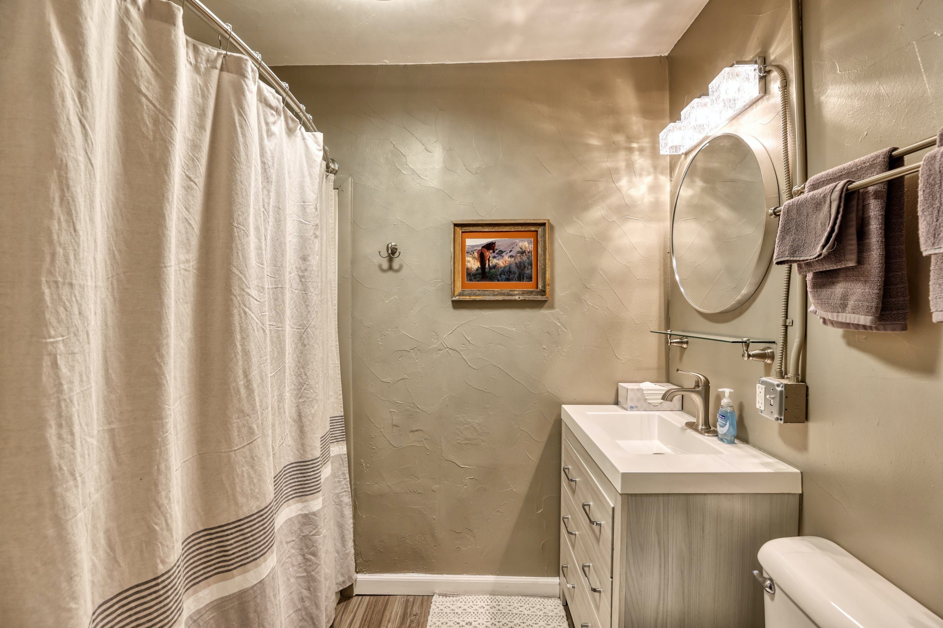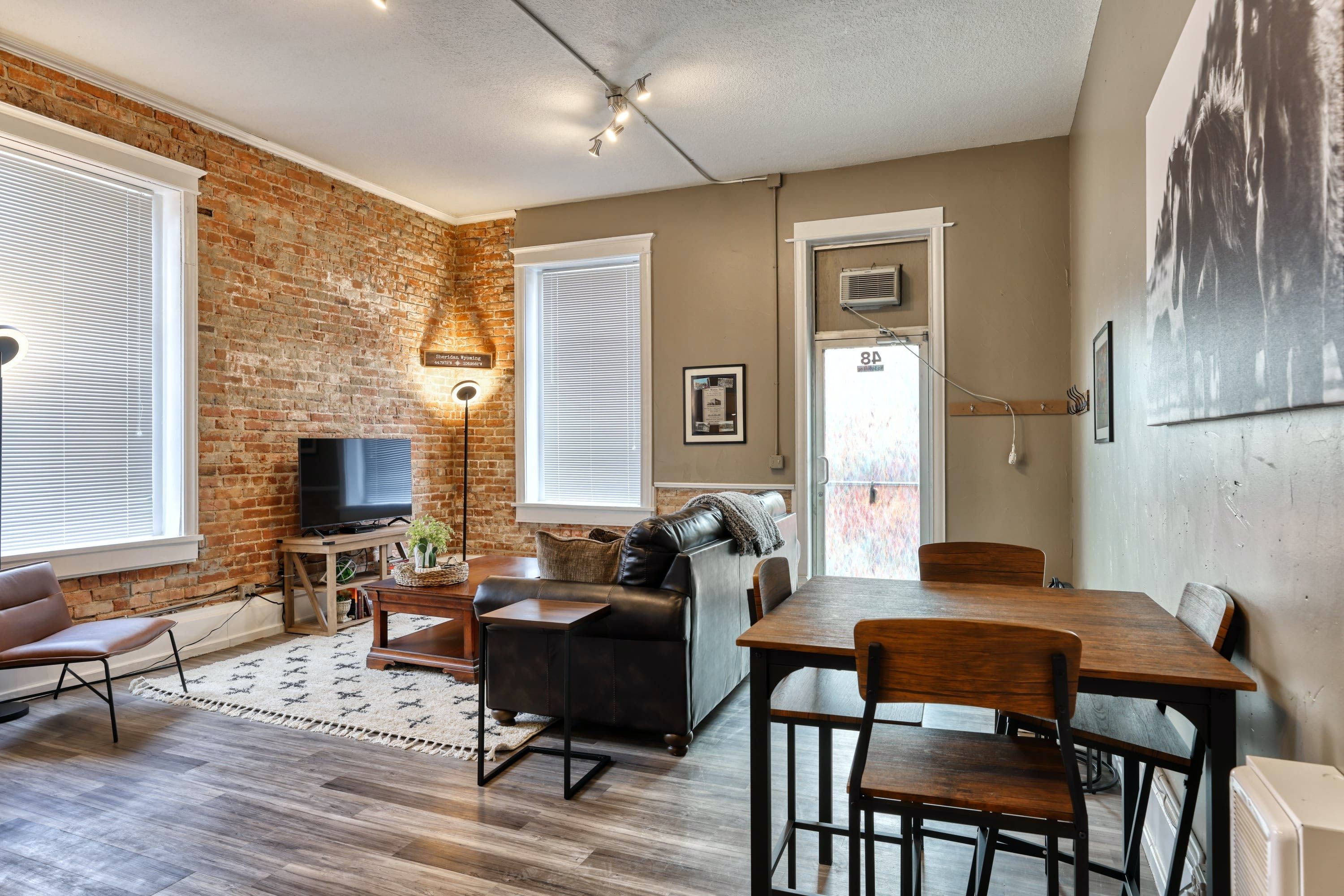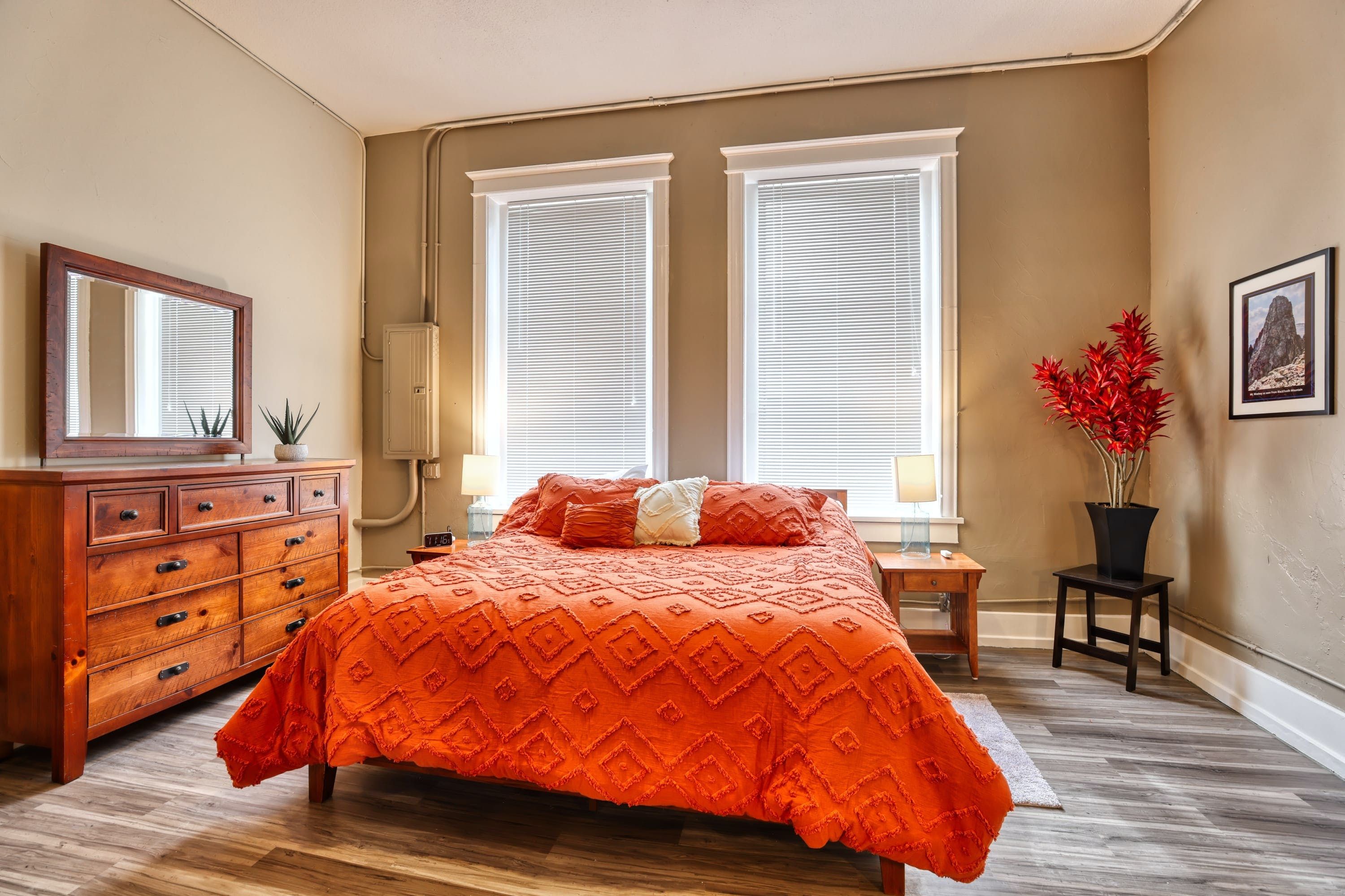 Welcome to Wyoming! Come experience a perfectly located downtown apartment! This cozy one-bedroom modern industrial apartment is the ideal retreat for those seeking an urban respite. Conveniently situated in the heart of downtown, you'll find yourself steps away from all the action. Immerse yourself in the welcoming atmosphere of this fully furnished stay. The thoughtfully designed space boasts a well-appointed kitchen, open layouts to the dining and living room area, a plush king bed for ultimate comfort, and a stunning bathroom to unwind in. Enjoy the unbeatable location that allows you to explore the vibrant city on foot or simply relax in the comfort of your urban haven. Escape to serenity at the Urban Rustic Retreat.
