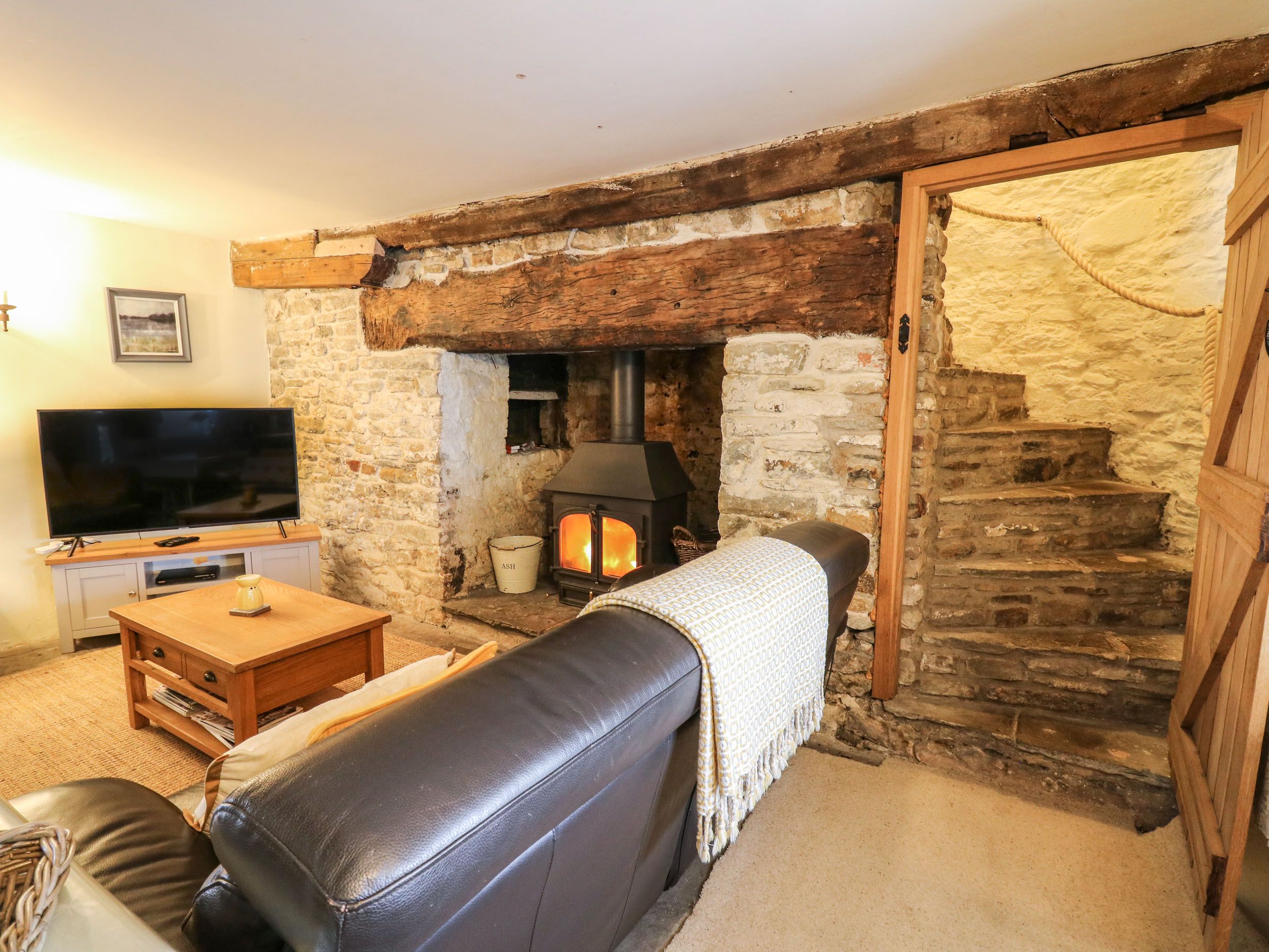 Amenities Biomass underfloor heating. Gas oven, gas hob, microwave, fridge/freezer, washing machine. Smart TV with Netflix. WiFi (can be intermittent through bad weather). Fuel, power, and starter pack for woodburning stove inc. in rent. Bed linen and towels inc. in rent. Off-road parking for 2 cars. Enclosed front garden with lawn and furniture. Sorry, no pets and no smoking. Sorry, no children or babe in arms. Shop 1 mile, pub 0.9 miles, Llynfi River 0.5 miles. The bedroom is accessed via a spiral, stone staircase; please take care. There are steps throughout the ground floor. Electric Vehicles: This property does not have a charge point for electric vehicles and charging from within the property is prohibited. Check-in from 4pm, check-out by 10am