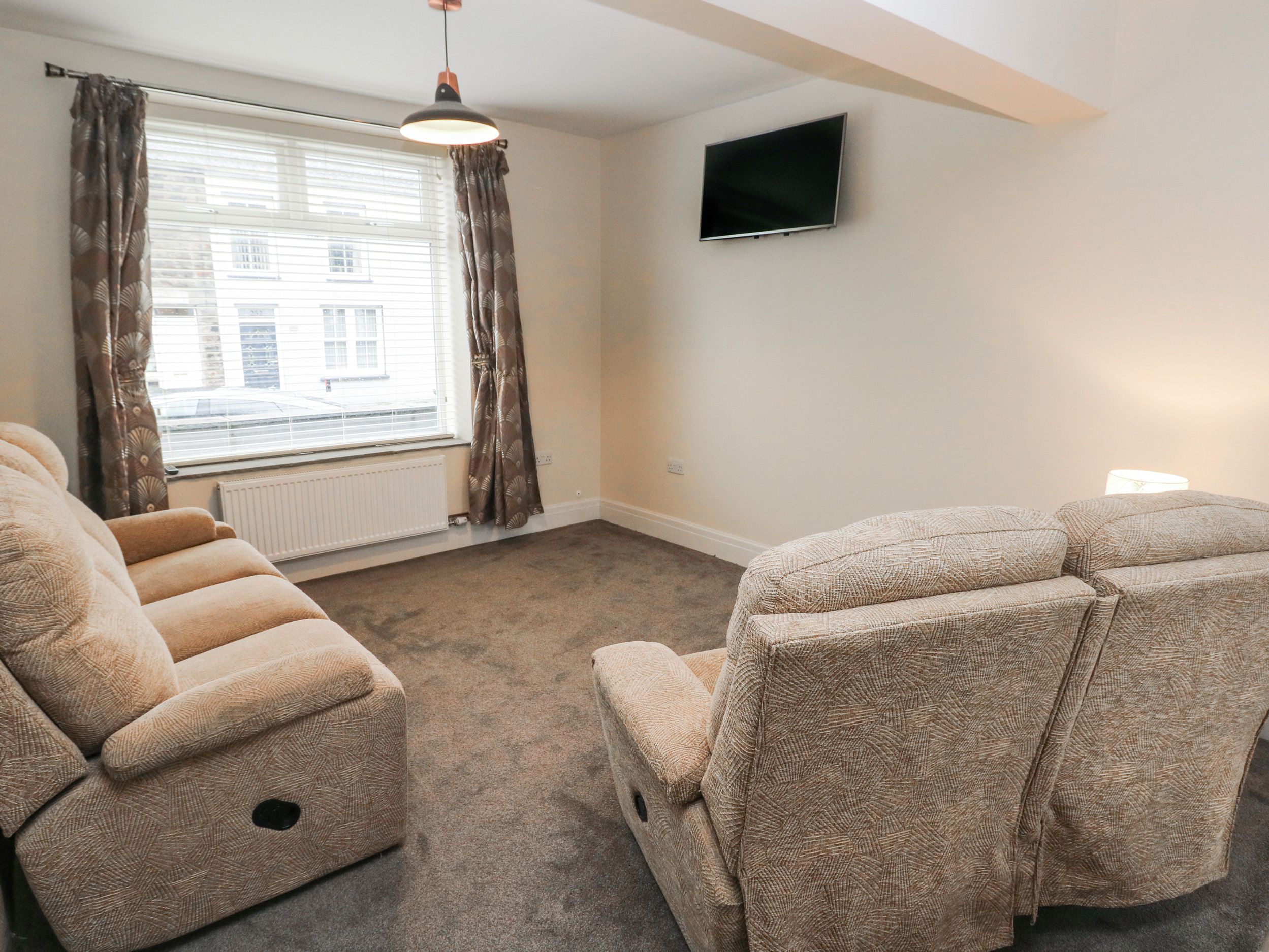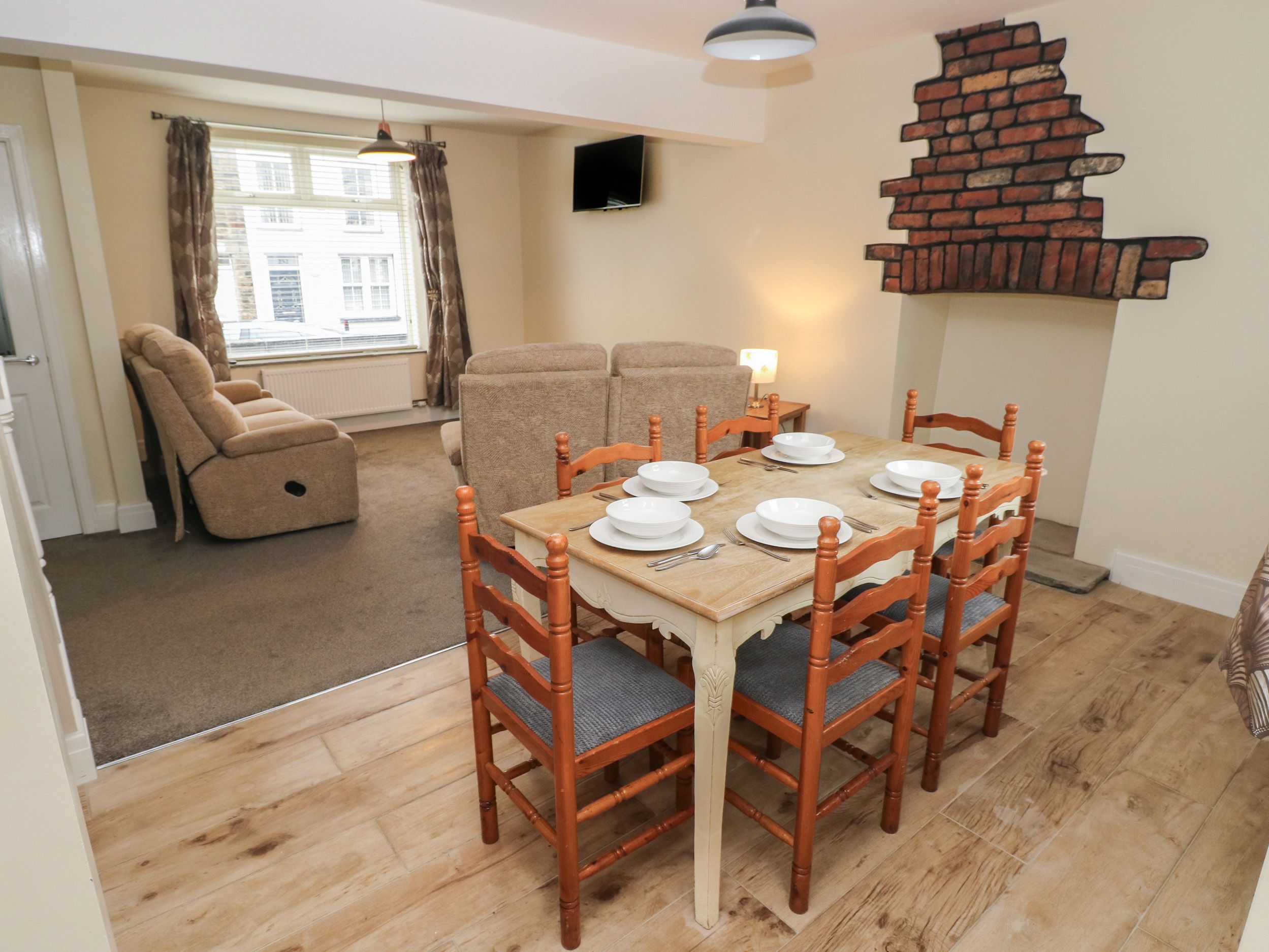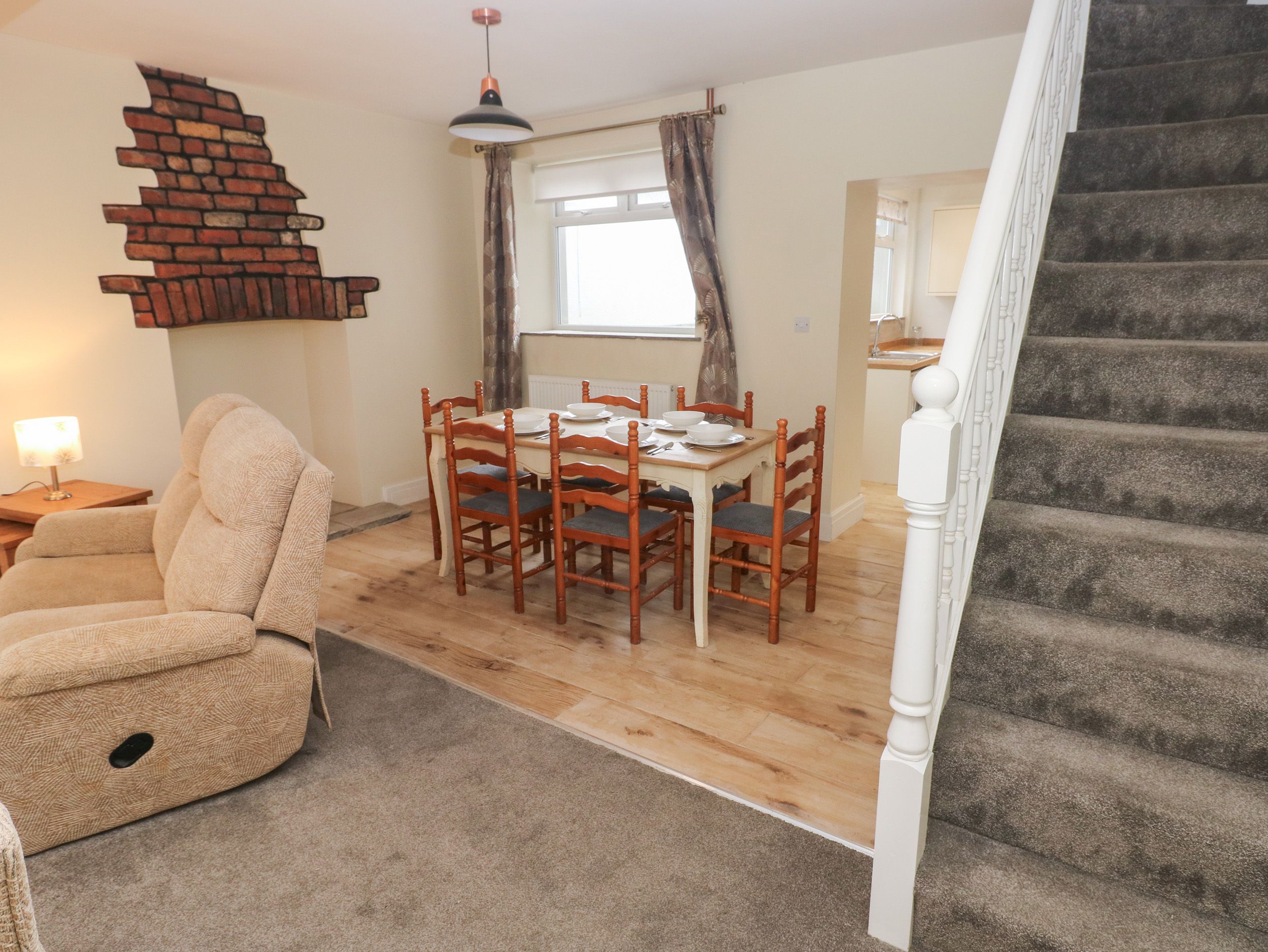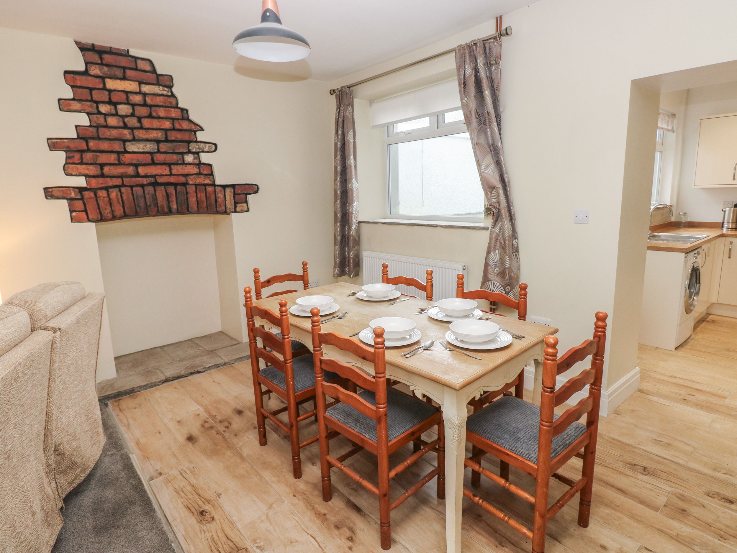 Amenities Gas central heating. Electric oven and hob, fridge/freezer, washing machine, tumble dryer. TV, WiFi. Fuel and power inc. in rent. Bed linen and towels inc. in rent. Highchair and travel cot available. Off-road parking for 2 cars. Small front courtyard. Enclosed rear garden with lawn and patio. Two well behaved pets welcome but sorry, no smoking. Shop 0.1 mile, pub 0.5 miles. Note: Parking is located at the rear of the property. Note: Check-in from 4pm, check-out by 10am. Note: There is a Good Housekeeping Bond of £150. Note: Pets are allowed downstairs only.
