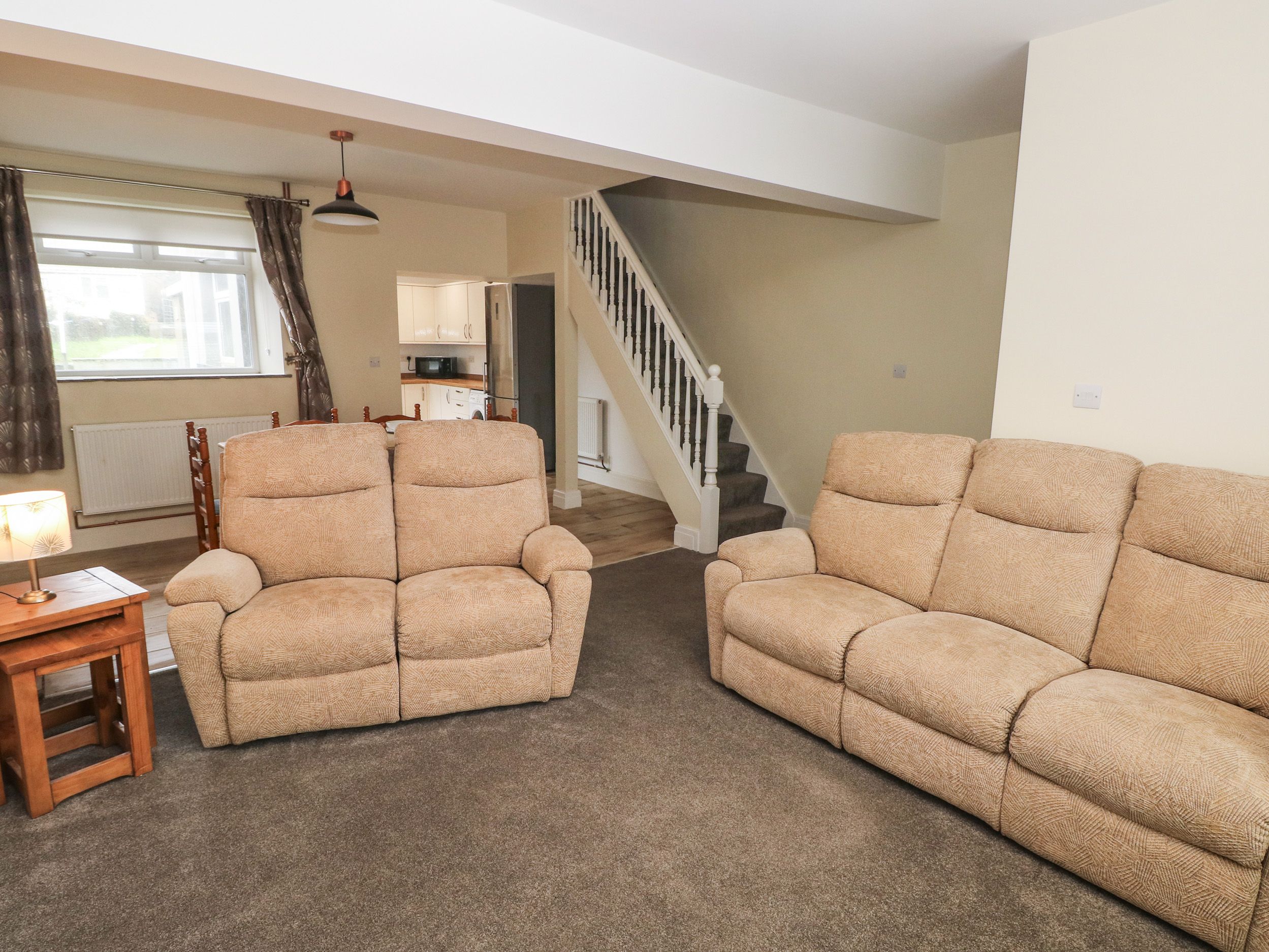 Accomodation Details Three bedrooms: 2 x double, 1 x single. Bathroom with bath, walk-in shower, basin, WC. Open-plan living space with kitchen, dining area and sitting area