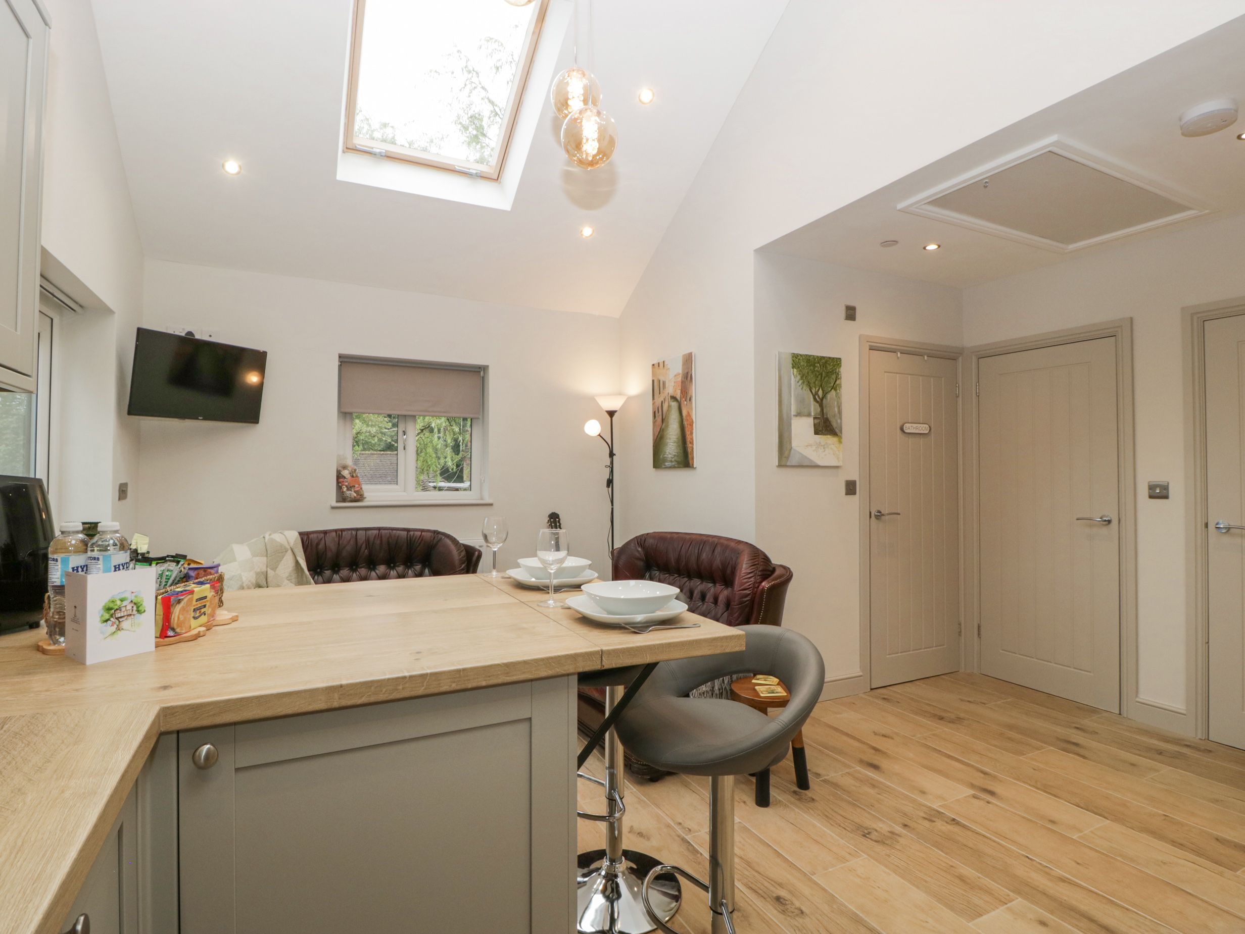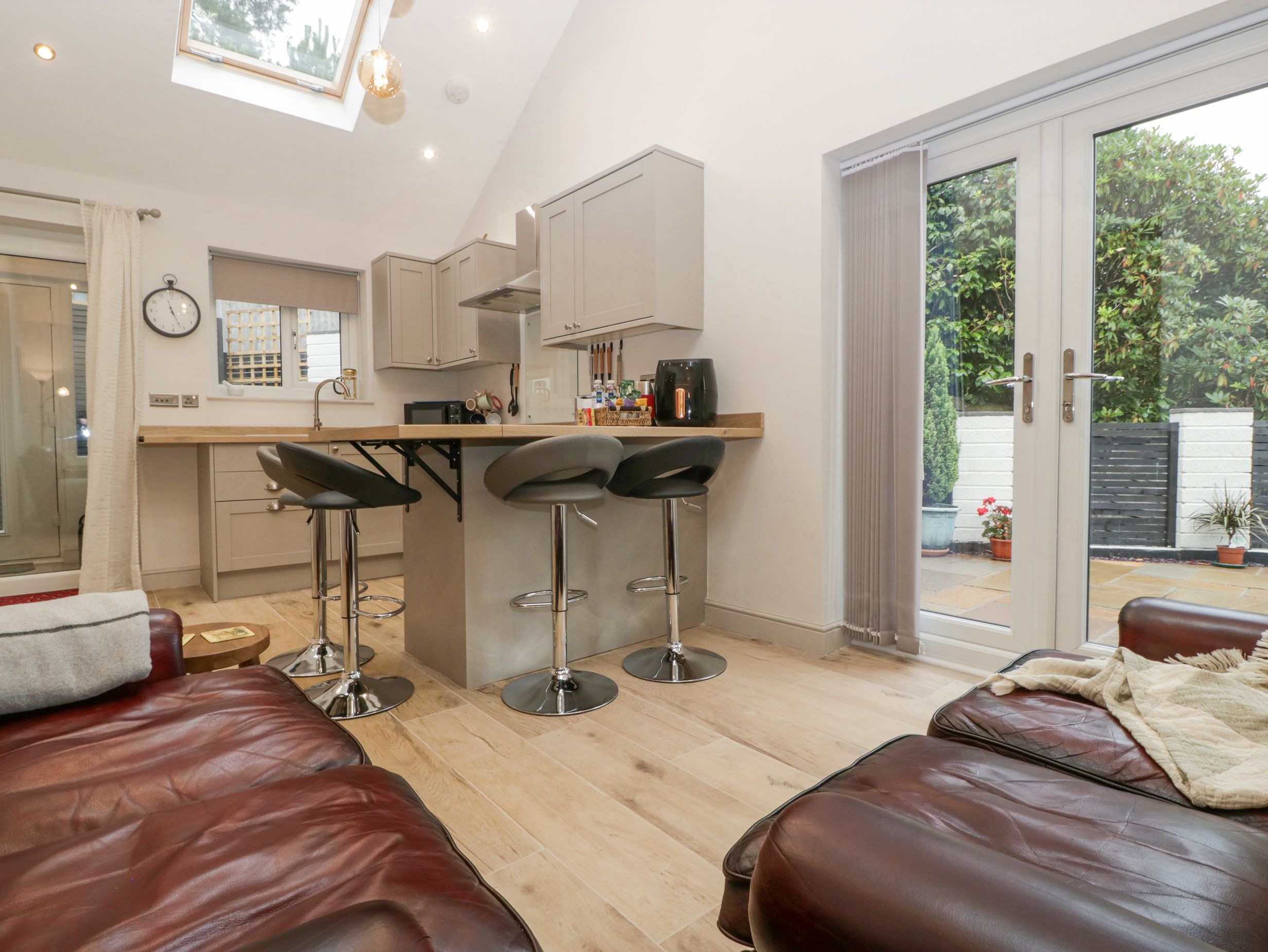 Accomodation Details Single-storey. Two bedrooms: 1 x double with en-suite walk-in shower, basin, heated towel rail, and WC, 1 x double. Shower room with walk-in shower, basin, and WC. Open-plan living space with kitchen, dining area, and sitting area