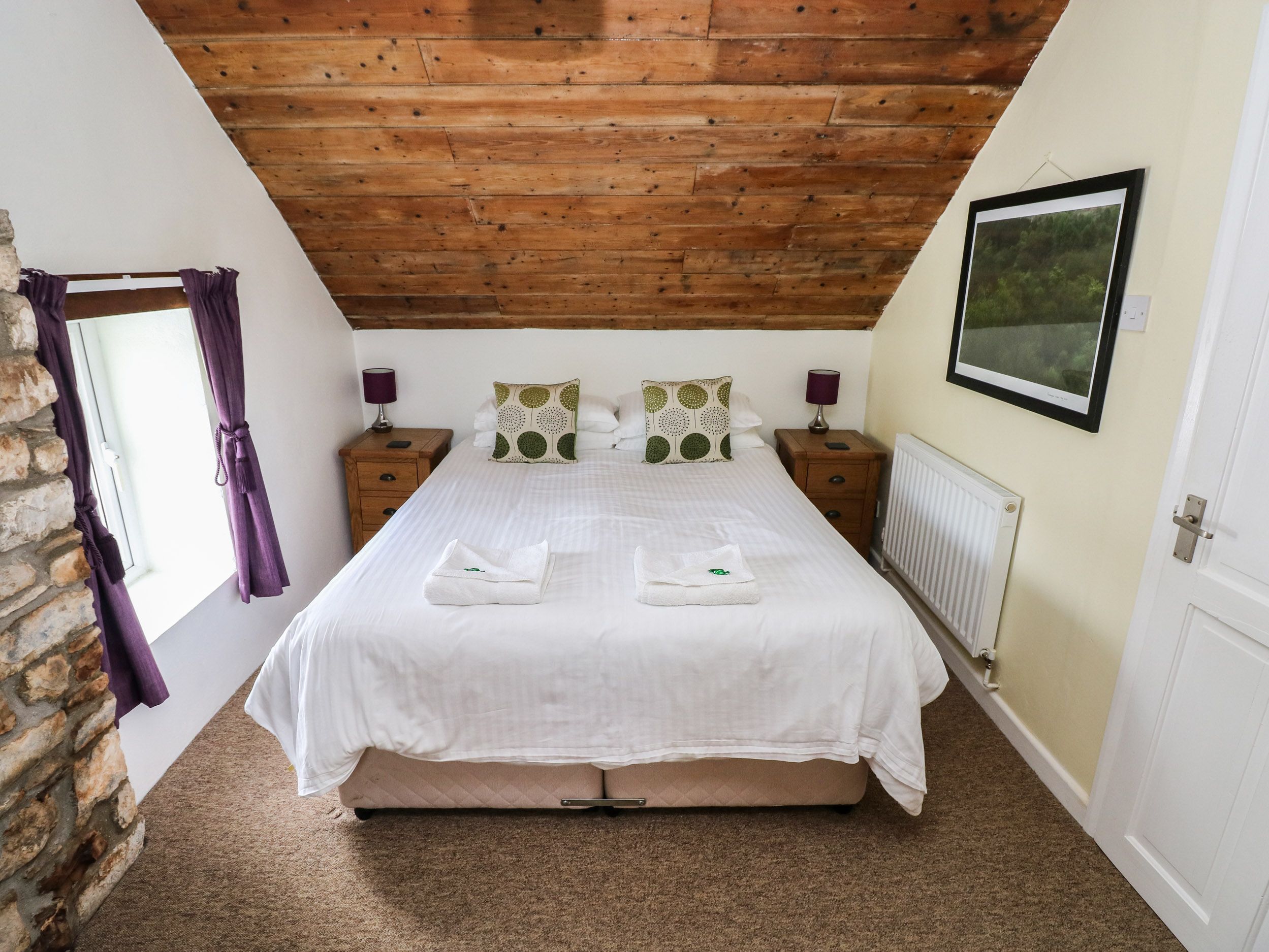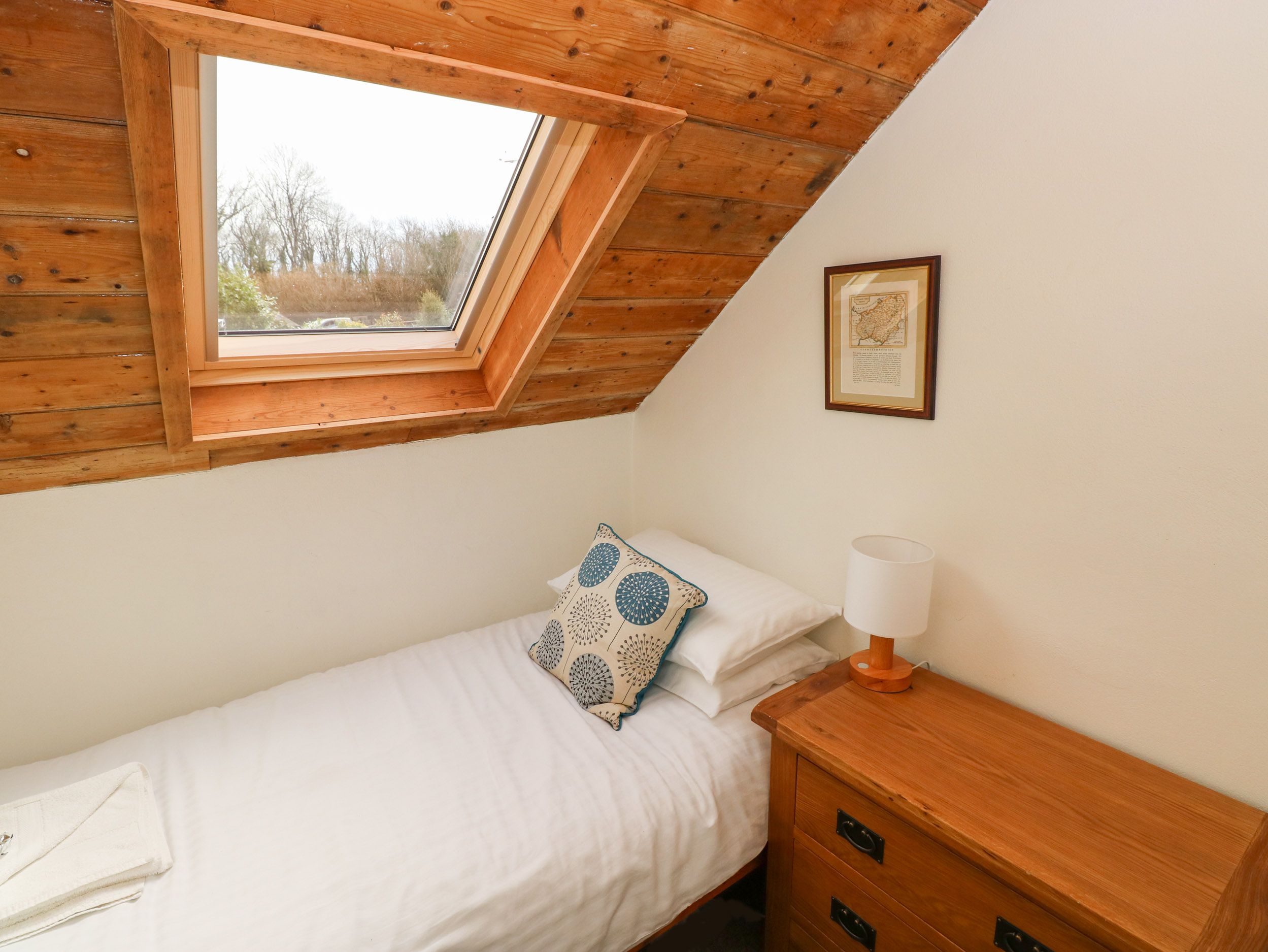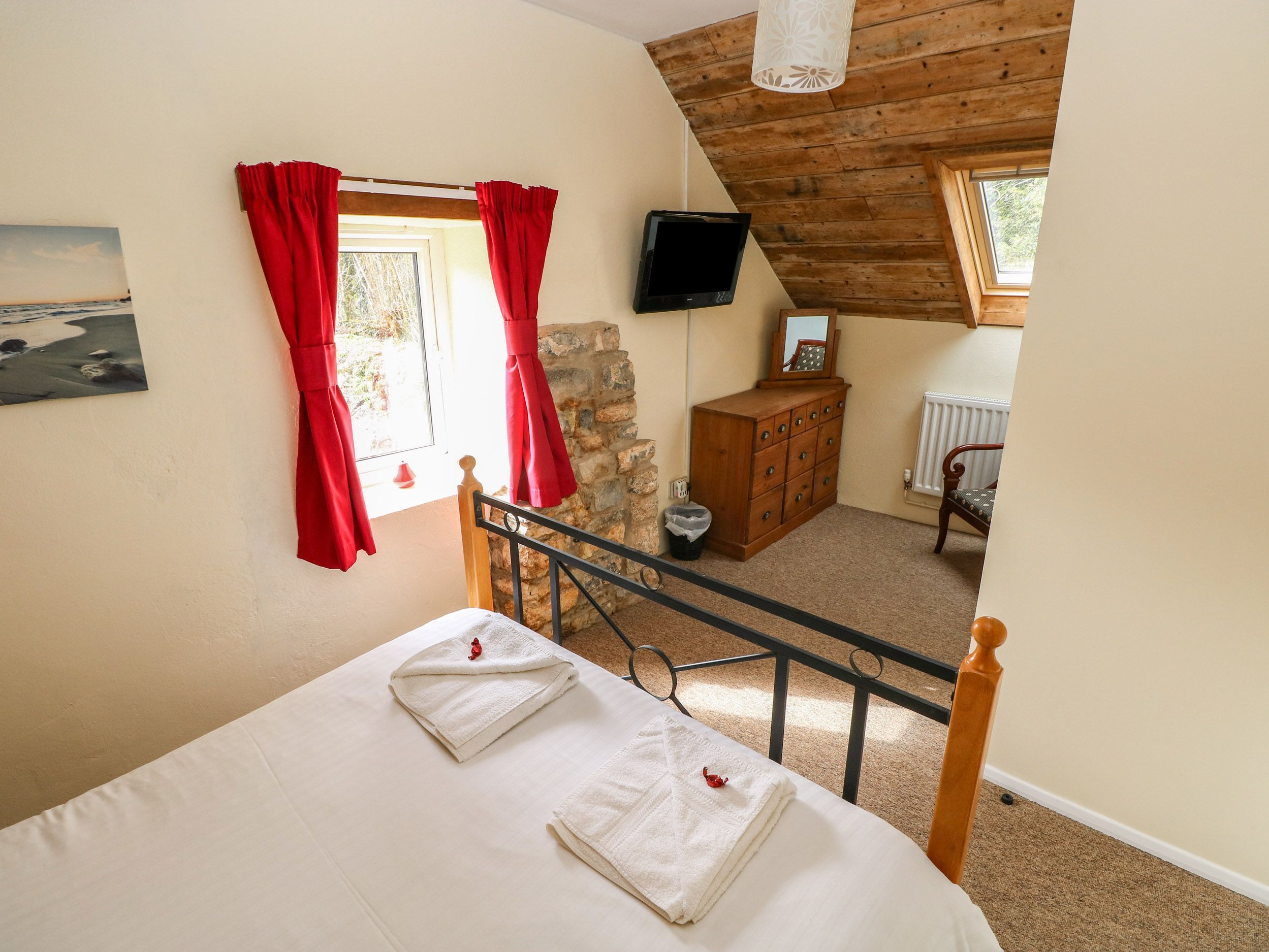 Amenities Automated eco-friendly biomass central heating with 2 x woodburning stoves. Electric oven and ceramic hob, microwave, fridge, fridge/freezer, washing machine, tumble dryer, dishwasher, 3 x TVs, DVD players, CD players, WiFi, table tennis, table football, selection of games, books and DVDs. Fuel, power and starter pack for woodburning stoves included in rent. Bed linen and towels inc. in rent (please bring own beach towels). Cot and highchair. Off-road parking for four cars. Large lawned gardens with furniture. One well-behaved dog welcome. Sorry, no smoking. Shop and pub 3 miles. Note: Friday arrival only for short breaks. Note: Property accessed down narrow stone/tarmac farm lane of about 0.4 miles, with passing places, so please take care. Note: This property has narrow cottage stairs. Note: Please contact us before your stay if you would like the double bed in the family room converted to two singles. Note: The children’s single bed is only suitable for children under 10 as the mattress is only 6 feet long (3 inches shorter than standard). Note: Access to the laundry area is via the games room only, which is attached to but separate from the cottage with its own front door. Note: This property can be booked with nearby Little Trees, Ref 981301 and together these two Marros cottages accommodate 8 (6+2) people. Please note: The garden is not completely enclosed please bear this in mind when bringing a dog to the property. Please note: This property can only accept one booking per week